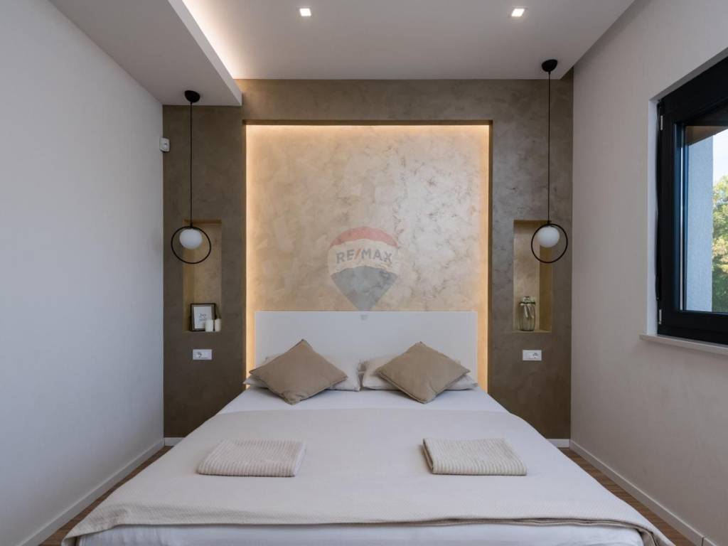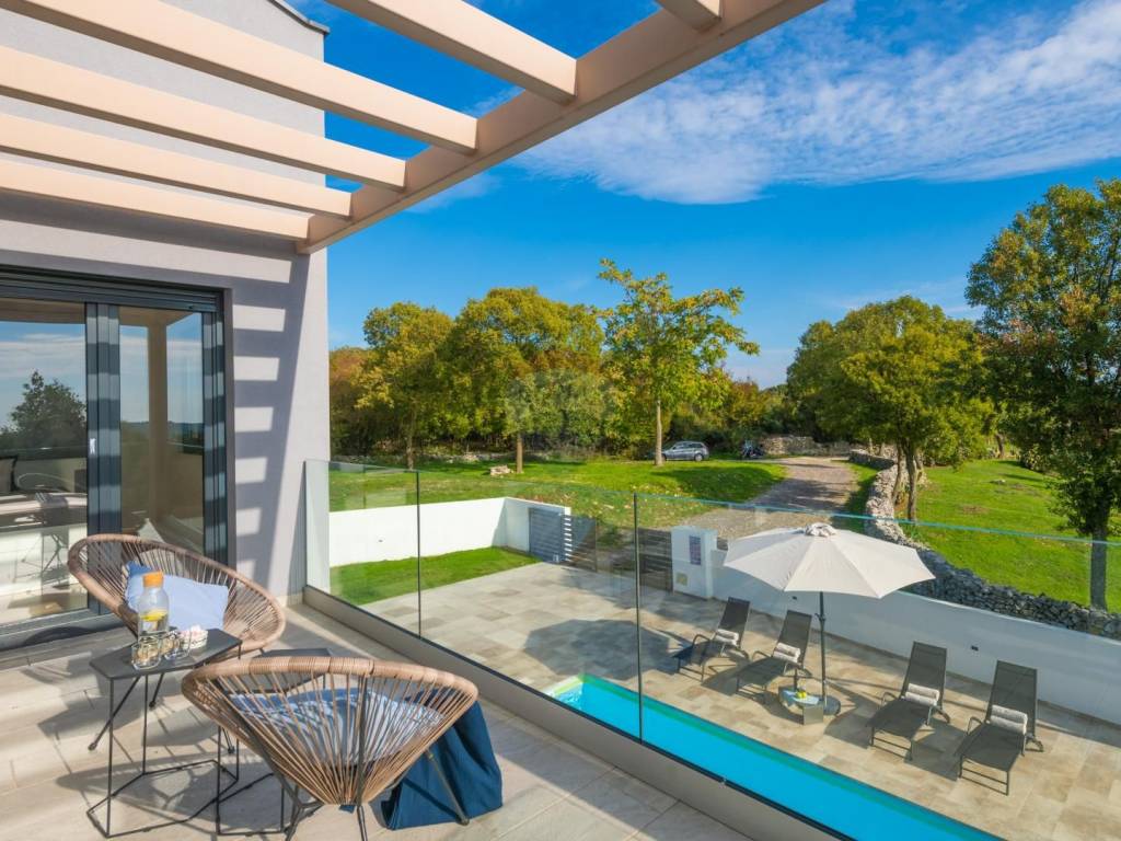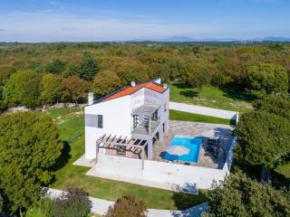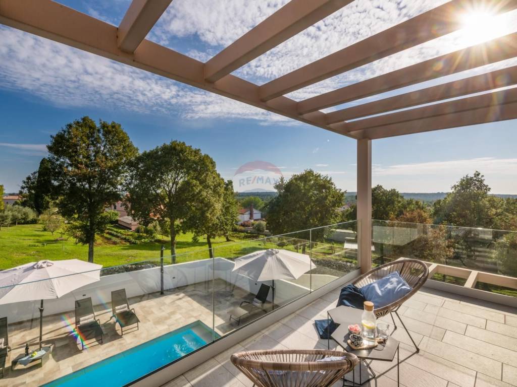 The property is situated on elevated terrain, offering views of the sea and the island of Cres on one side, and the picturesque town of Bale on the other.