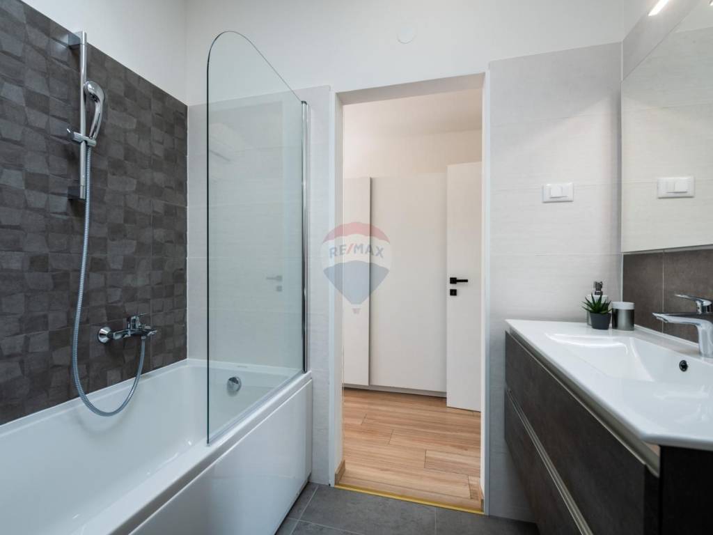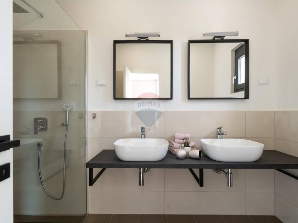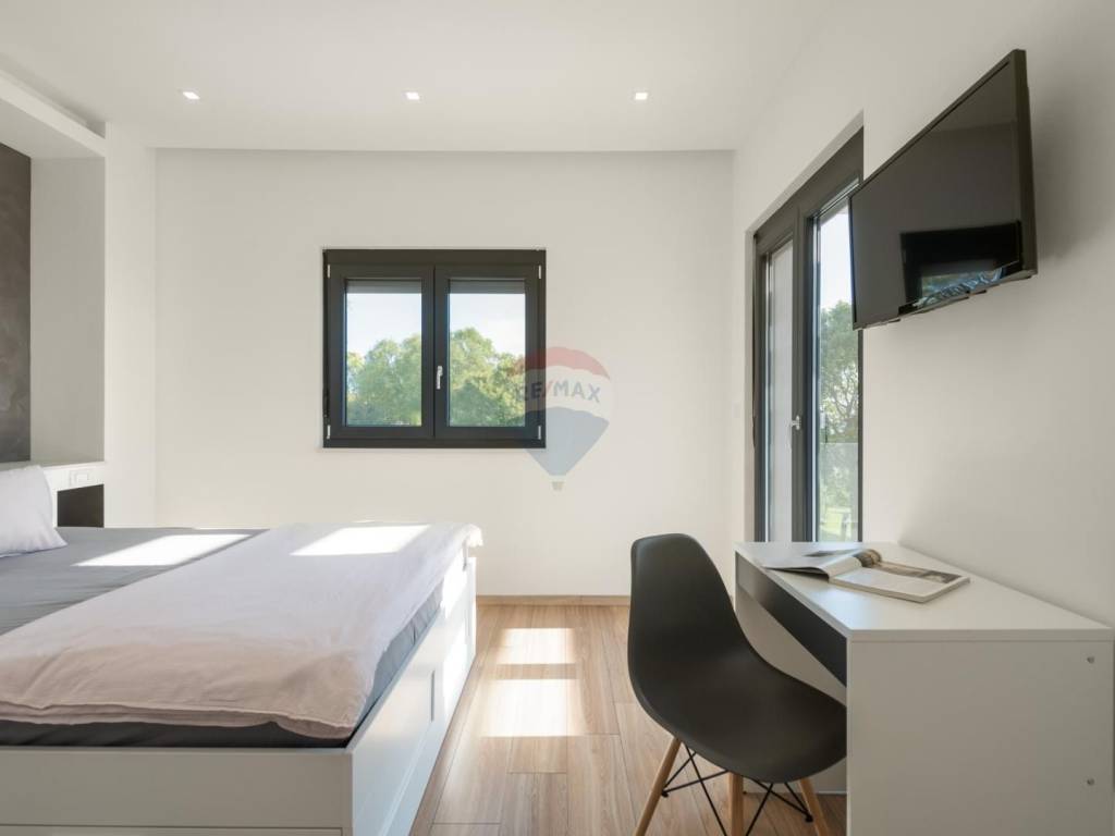 The exterior joinery is PVC with automatic aluminum shutters.