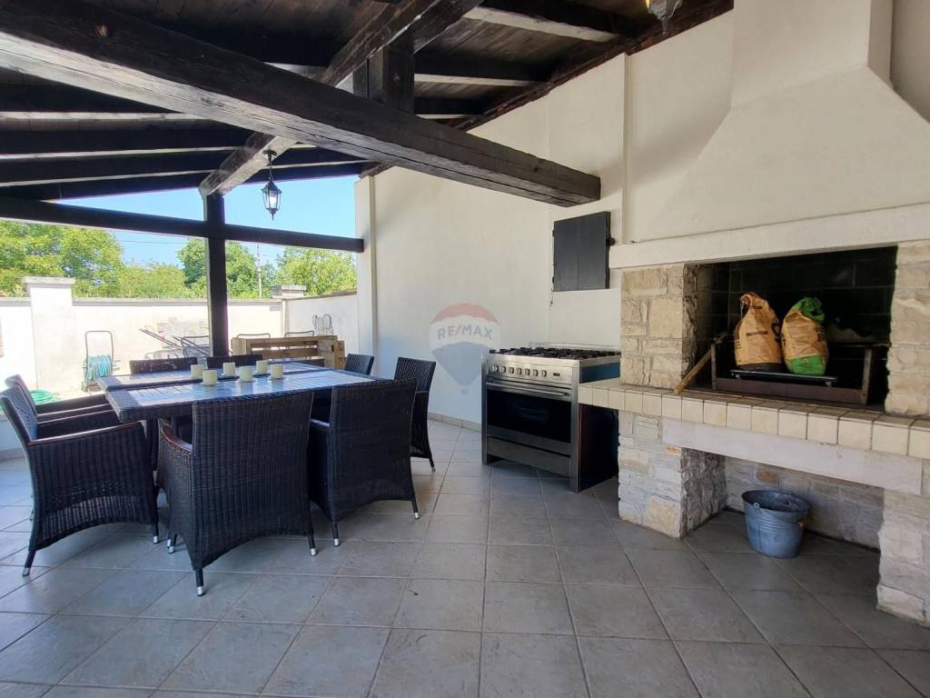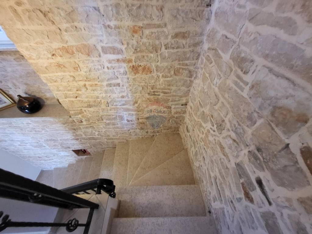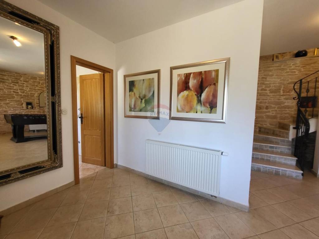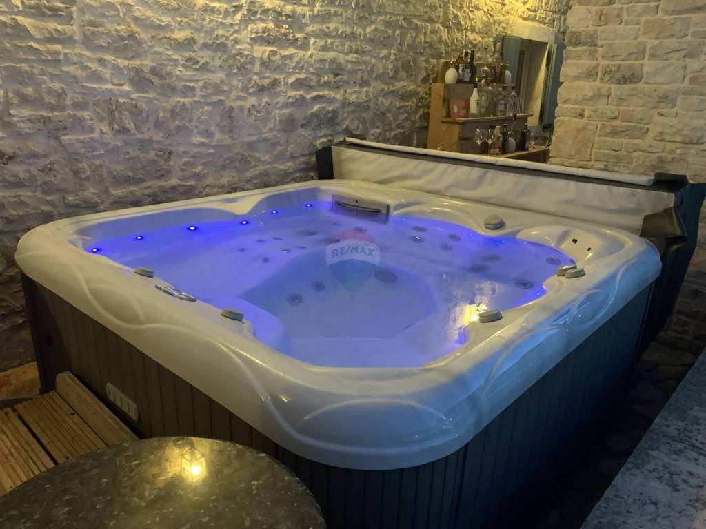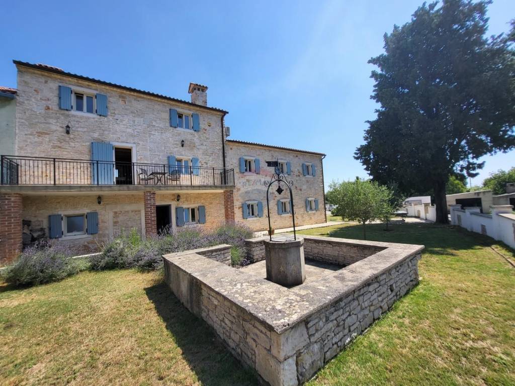 For sale is a beautiful originally Istrian stone house, completely renovated and remodeled a few years ago. The house is located in a small Istrian village, and it is located on the edge of the village on a larger plot of about 1900m2. So the back part, where the swimming pool, sunbathing area, barbecue, terrace and socializing area are located, is completely hidden and offers peace and privacy. The house has been extremely beautifully and qualitatively renovated, attention was paid to the details of which it is full. On the ground floor there is an entrance hall and 3 bedrooms with bathrooms. There is also an exit to the back of the yard and the pool. Stairs lead to the first floor, where there is a large living room with a functional wood-burning fireplace. There is also a large dining room and kitchen, pantry and bathroom. On the last floor there is a large master bedroom, with its own open space living room and bathroom. In the yard there is a large swimming pool, sunbathing area, garden house, barbecue and jacuzzi.
