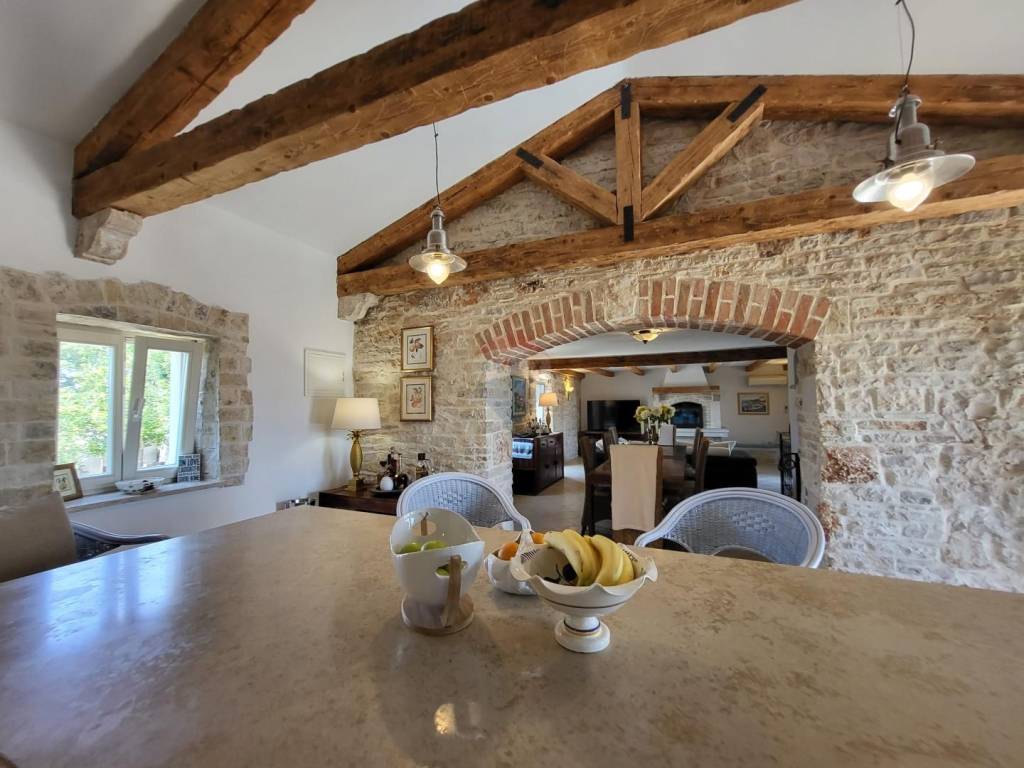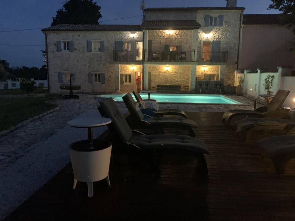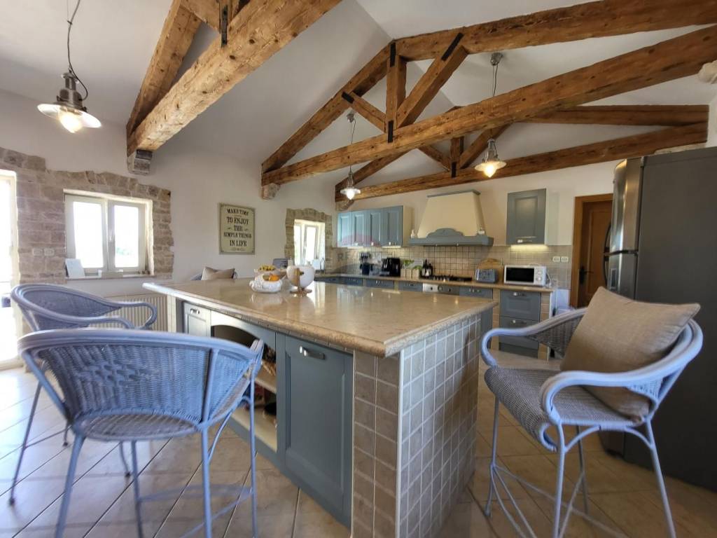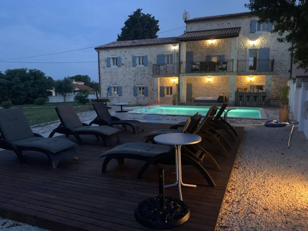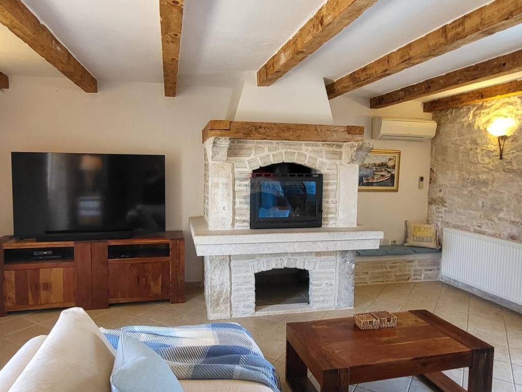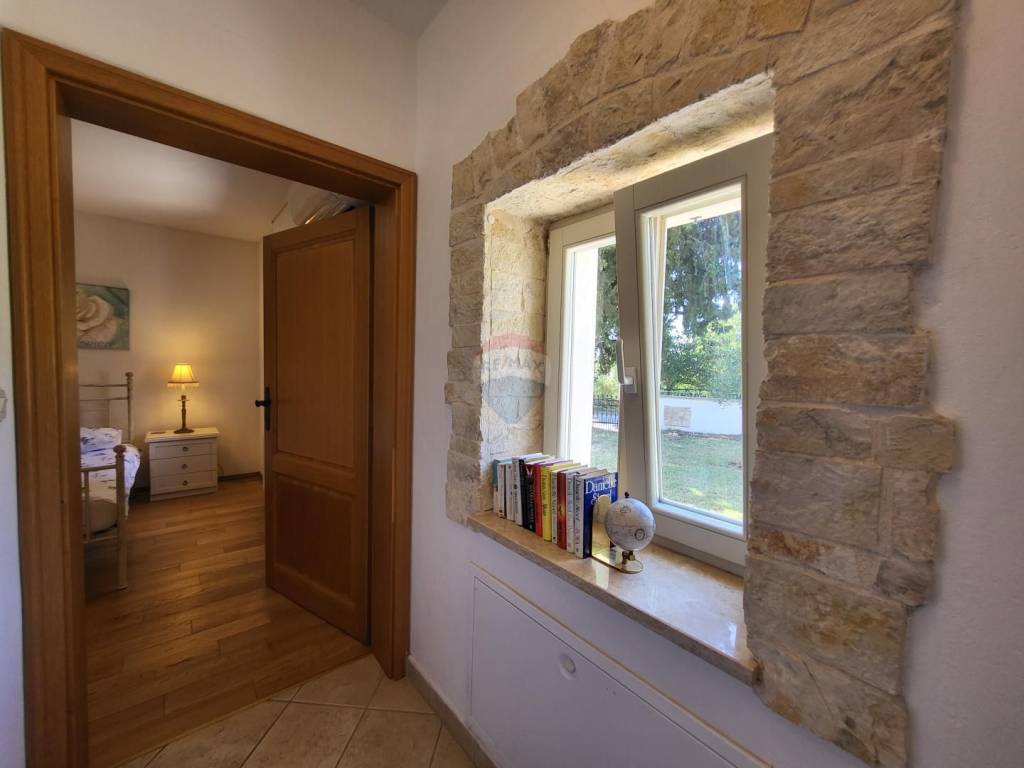 For sale is a beautiful originally Istrian stone house, completely renovated and remodeled a few years ago. The house is located in a small Istrian village, and it is located on the edge of the village on a larger plot of about 1900m2. So the back part, where the swimming pool, sunbathing area, barbecue, terrace and socializing area are located, is completely hidden and offers peace and privacy. The house has been extremely beautifully and qualitatively renovated, attention was paid to the details of which it is full. On the ground floor there is an entrance hall and 3 bedrooms with bathrooms. There is also an exit to the back of the yard and the pool. Stairs lead to the first floor, where there is a large living room with a functional wood-burning fireplace. There is also a large dining room and kitchen, pantry and bathroom. On the last floor there is a large master bedroom, with its own open space living room and bathroom. In the yard there is a large swimming pool, sunbathing area, garden house, barbecue and jacuzzi.