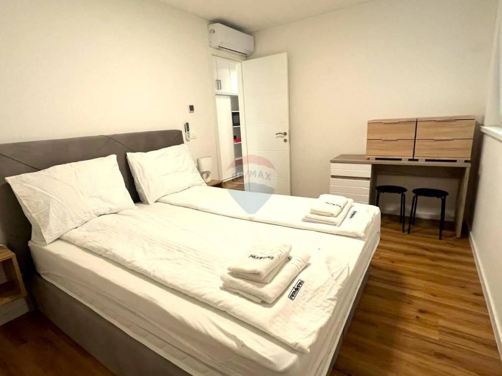This modern apartment has everything you need for a comfortable life. The floors have underfloor heating, and each room has its own air conditioning unit, ensuring the perfect temperature at all times.