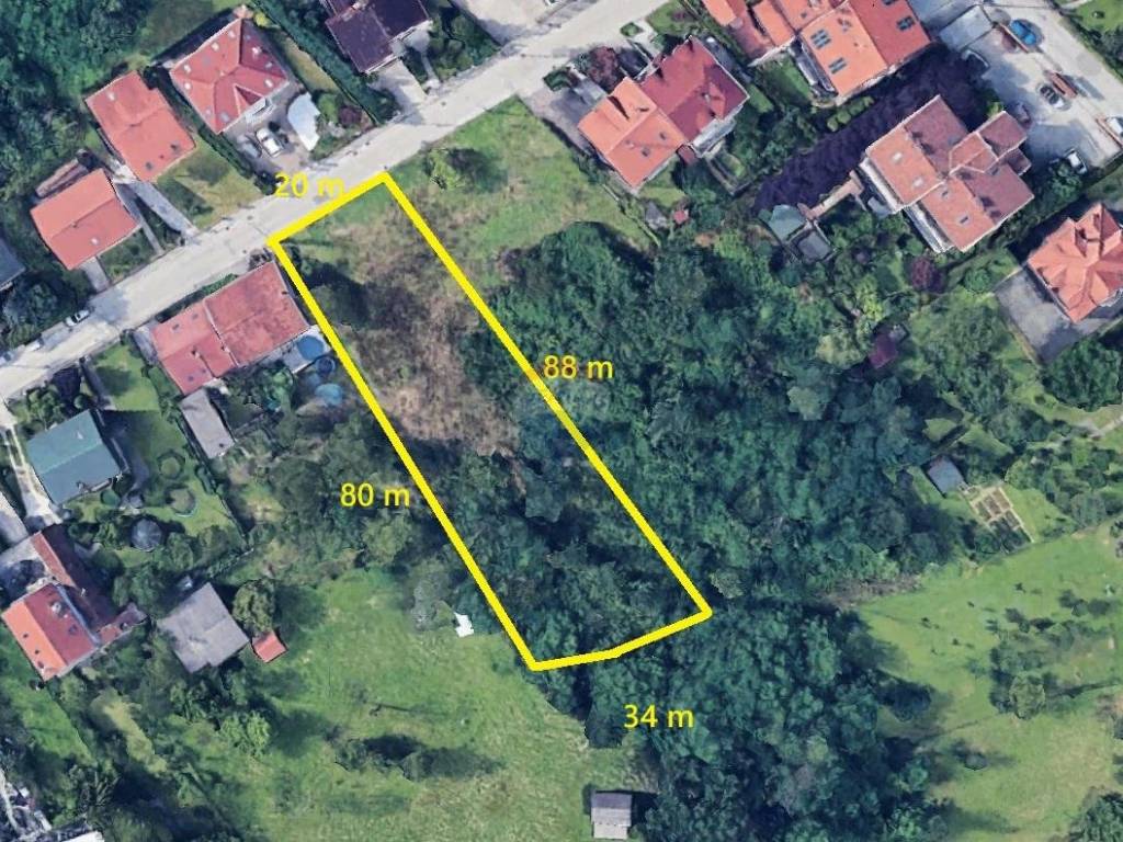 Predmetno zemljište pravilnog je oblika i nalazi se u građevinskoj zoni stambene namjene, urbana pravila 2.2. Građevinski dio: 1200 m2 Negrađevinski dio: 1142 m2 Širina uz asfaltiranu cestu je 20 m, a dubina 88 m odnosno 80 m na suprotnoj strani. Mogućnost gradnje je 400 GBP za slobodnostojeće, a 300 GBP za poluugrađene građevine. Infrastruktura na cesti je voda, struja, plin, kanalizacija. Sama pozicija zemljišta je odlična za obiteljski život radi mirne mikrolokacije, a u urbanom dijelu s blizinom svih bitnih sadržaja posebice sportskog centra, Park-šume Dotrščina i sl.