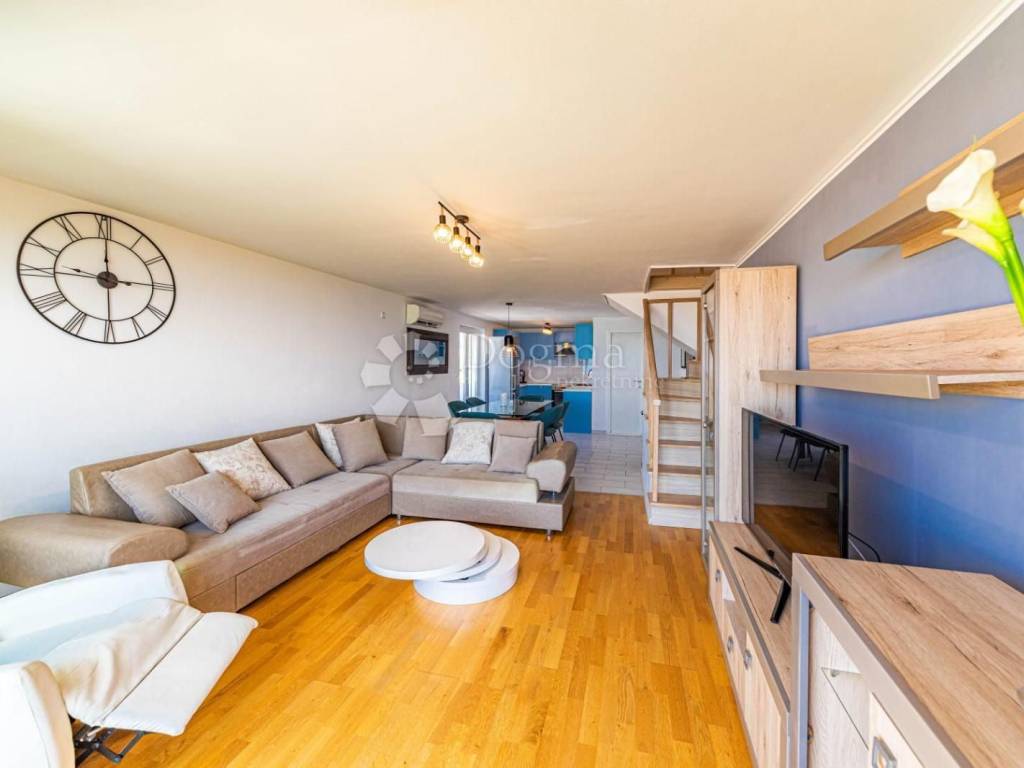 Located in the attractive area of Žnjan, this three-bedroom duplex penthouse with a total living area of 107 m offers a beautiful, open sea view.