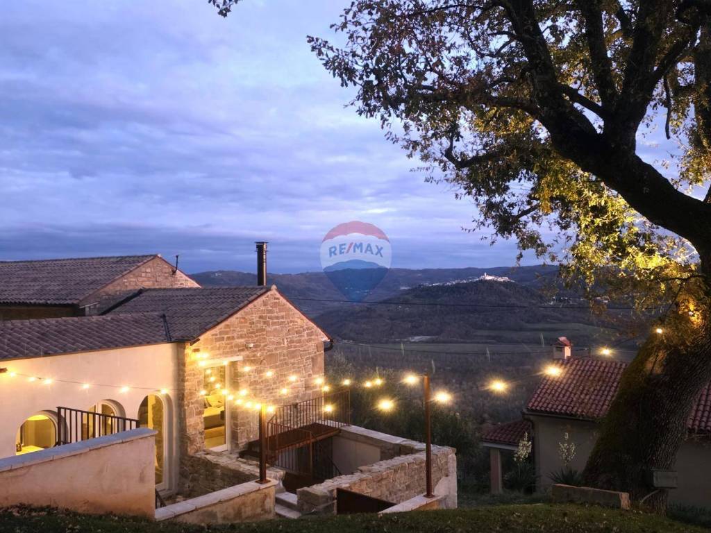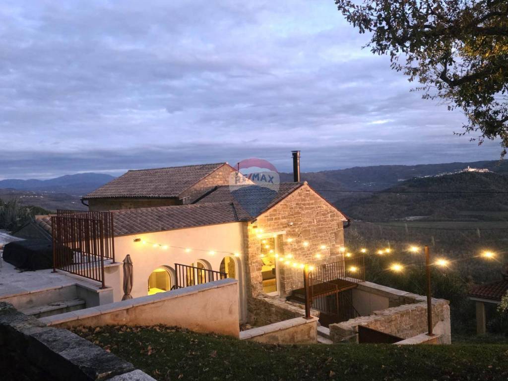 Available through RE/MAX Centar nekretnina is an exclusive complex of fully renovated stone houses located near Oprtalj, positioned on one of the most beautiful locations in the Istrian hinterland. The property offers a fantastic panoramic view of Motovun, the Mirna River valley, all the way to the distant sea horizon. The estate was completed in August 2025 after a thorough and comprehensive renovation and extension, using top-quality materials and design solutions.