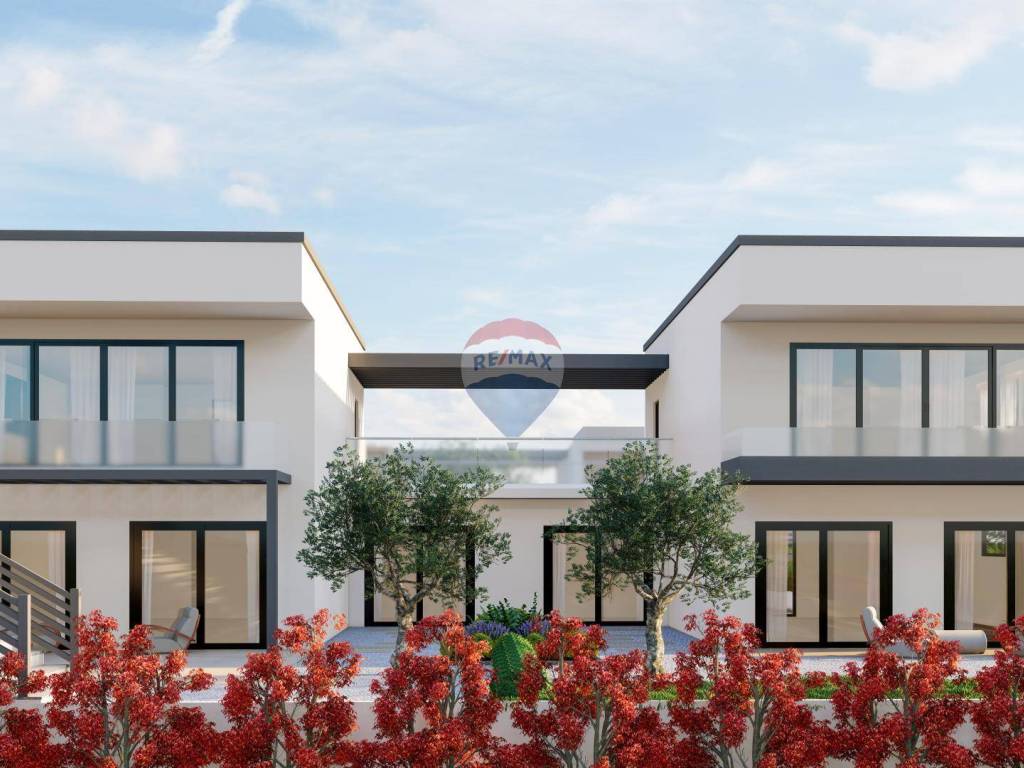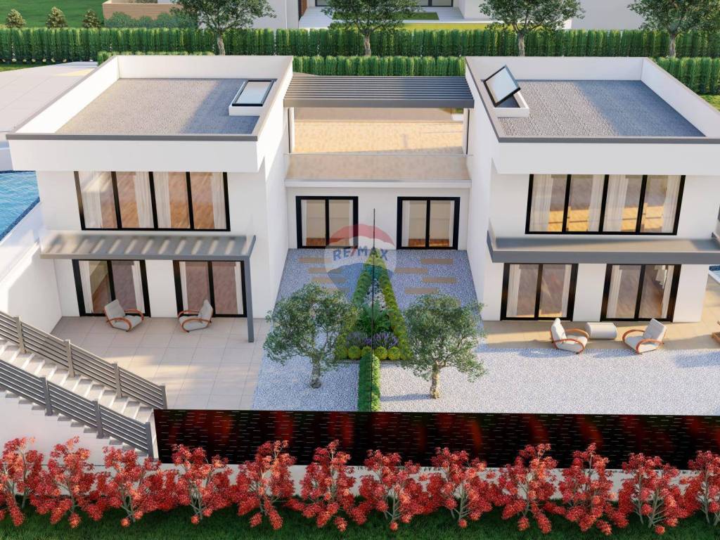 In the peaceful village of Brzac on the island of Krk, in an exceptional location offering open views of the sea and the island of Cres, a modern semi-detached house is being built, combining contemporary architecture, comfort and the Mediterranean atmosphere. Spread across 120 m² of living space, the property features an elegant layout over the ground floor, first floor and rooftop terrace, designed to provide complete privacy and a sense of luxury at every moment.