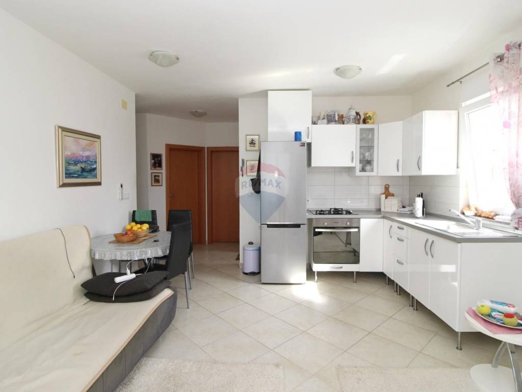 RE/MAX Centar Nekretnina presents a beautifully arranged two-bedroom apartment with a terrace in an excellent location in Fažana, just 200 meters from the beach. The apartment has a surface area of 55.71 m² and is located on the ground floor of a newer residential building. It consists of two bedrooms, a living room with a dining area and kitchen, a bathroom, and a lovely terrace. The property includes a private parking space and a storage room. The beach is only 200 meters away. All amenities are within a few minutes' walking distance. The apartment is situated in a quiet street. A perfect home for comfortable living or a great investment for tourist rental.