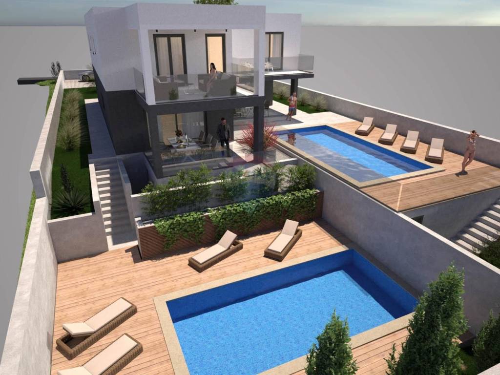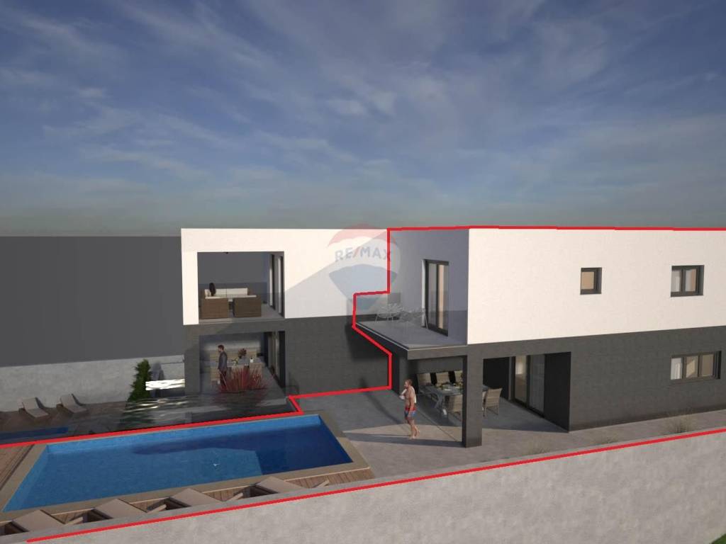 Modern Semi-Detached House near Rovinj – 130 m² + Terraces, Heated Pool, and Garden Located in a quiet and green area just a 15-minute drive from the center of Rovinj, this beautifully designed semi-detached house offers a perfect blend of modern style, comfort, and functionality.