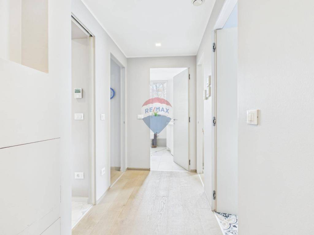 Heating and cooling are provided via underfloor heating, a heat pump, and a fan-coil system, ensuring high energy efficiency and year-round comfort.