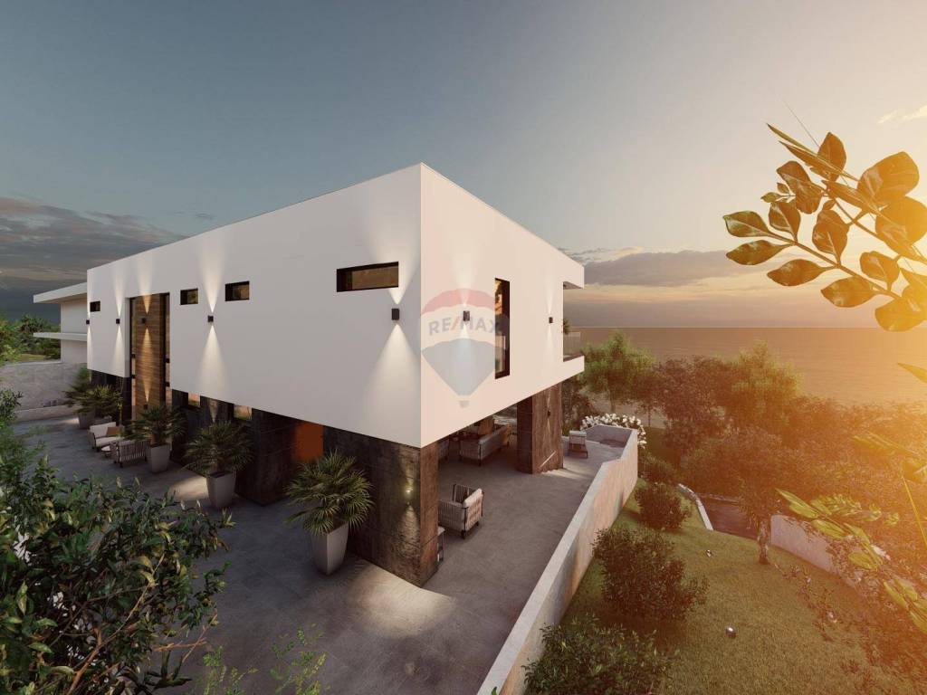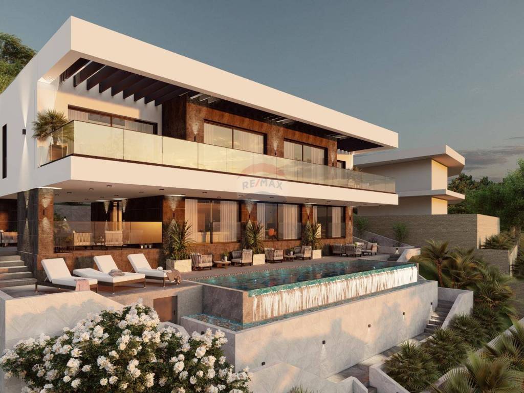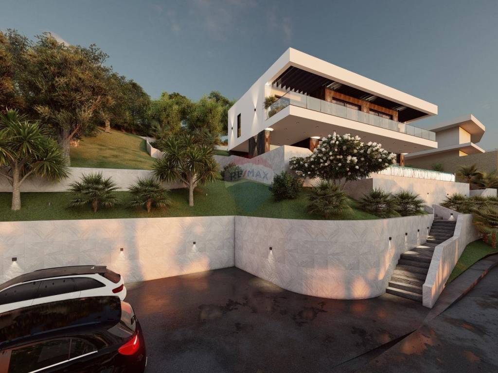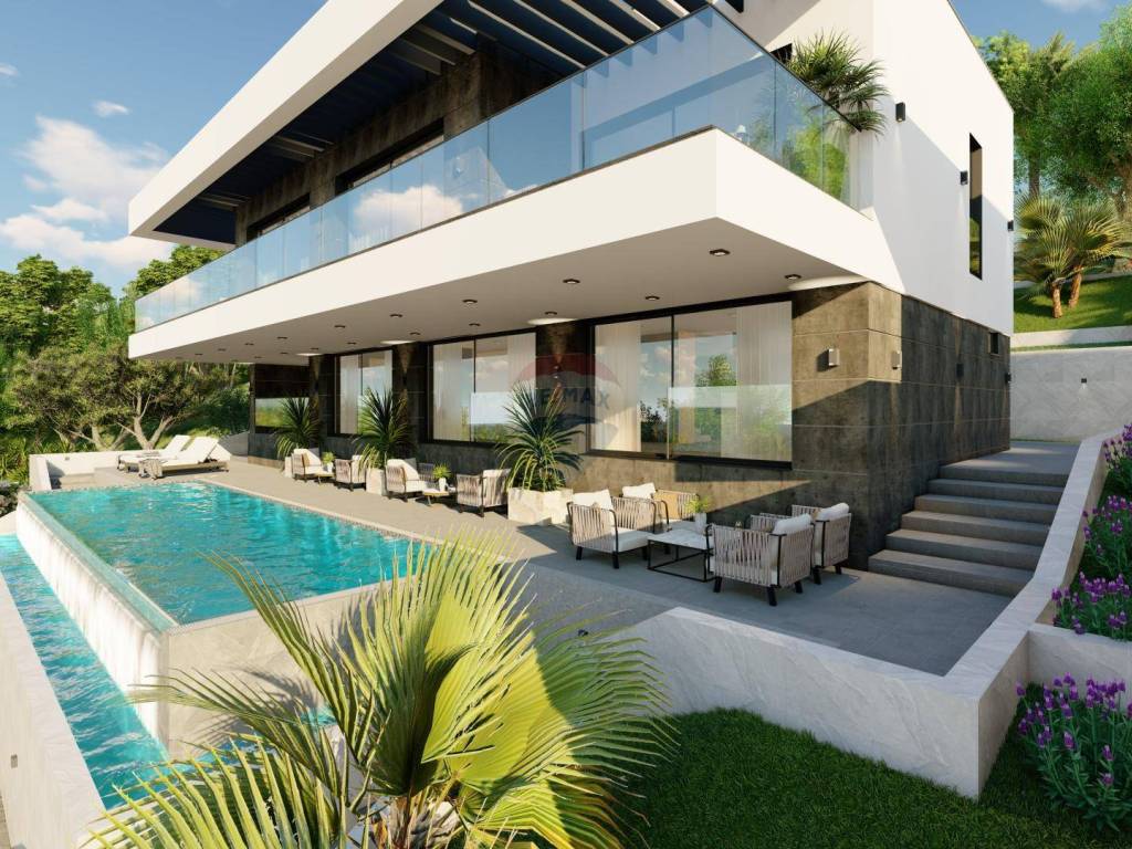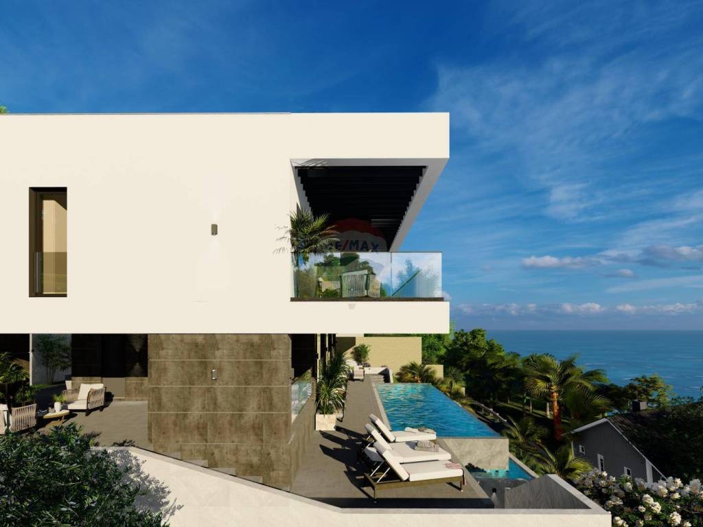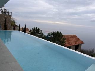 In the immediate vicinity of the center of Mošćenica, yet far enough to have its own privacy, is located the beautiful Villa Sunrise with an exceptional view of the entire Kvarner bay. When you look to the right, you can see the view towards Veliki Vrati all the way to the island of Unija and then over Mali Lošinj and the northern part of the island of Cre, complete with. Below we see the island of Krk with the towns of Malinsko, Njivice and Omišlje, all the way to Rijeka on the left side of Kvarner. Really impressive and unique view. Villa Sunrise is a free-standing new building, which is in nature a large two-story apartment fully furnished and equipped with top quality materials. The villa is located on a plot of 962 m2, and has a gross living area of 395 m2. This villa is also decorated with a large infinity pool of 43 m2 with a terrace - a sun deck facing the sea. The Villa can be reached via a spacious parking lot on the eastern side, which can accommodate five cars. In the future, that parking lot can be covered. The wide stairs next to the pool lead to the entrance to the Villa, which is on the west side. On the ground floor there is a spacious kitchen, equipped with top-quality appliances, a spacious dining area and a large living room. There is another room that is open to the exit to the pool, and has a multifunctional role. There is also one bathroom and a guest toilet on the ground floor. A pleasant staircase leads to the first floor, where there are four bedrooms, each with its own bathroom, and a large terrace that stretches across the entire front of the house. The facade is 15 cm Styrofoam. The swimming pool is heated with built-in additional equipment. Materials used in construction and furnishing the houses are of high quality, as is the method of their installation. Heating and cooling is via a heat pump, and the spaces are heated and cooled via the ceilings. Top quality aluminum locks guarantee excellent sound and heat insulation throughout the house. If you wake up early enough in this villa, you can experience unforgettable moments watching the sunrise. We are only 2.5 km from Mošćenička Draga, Opatija is 15 km away. It is located 1 hour drive to Rijeka airport, and only 45 minutes to Pula airport. In the immediate vicinity of all the necessary facilities. Just a few minutes drive to the most beautiful beaches of the northern Adriatic, Sipar and Sv. Ivan in Mošćenička Draga, and Klančac in Brseč. Price is a turnkey system with the fact that the Villa is fully furnished and allows the potential buyer immediate entry into the space.