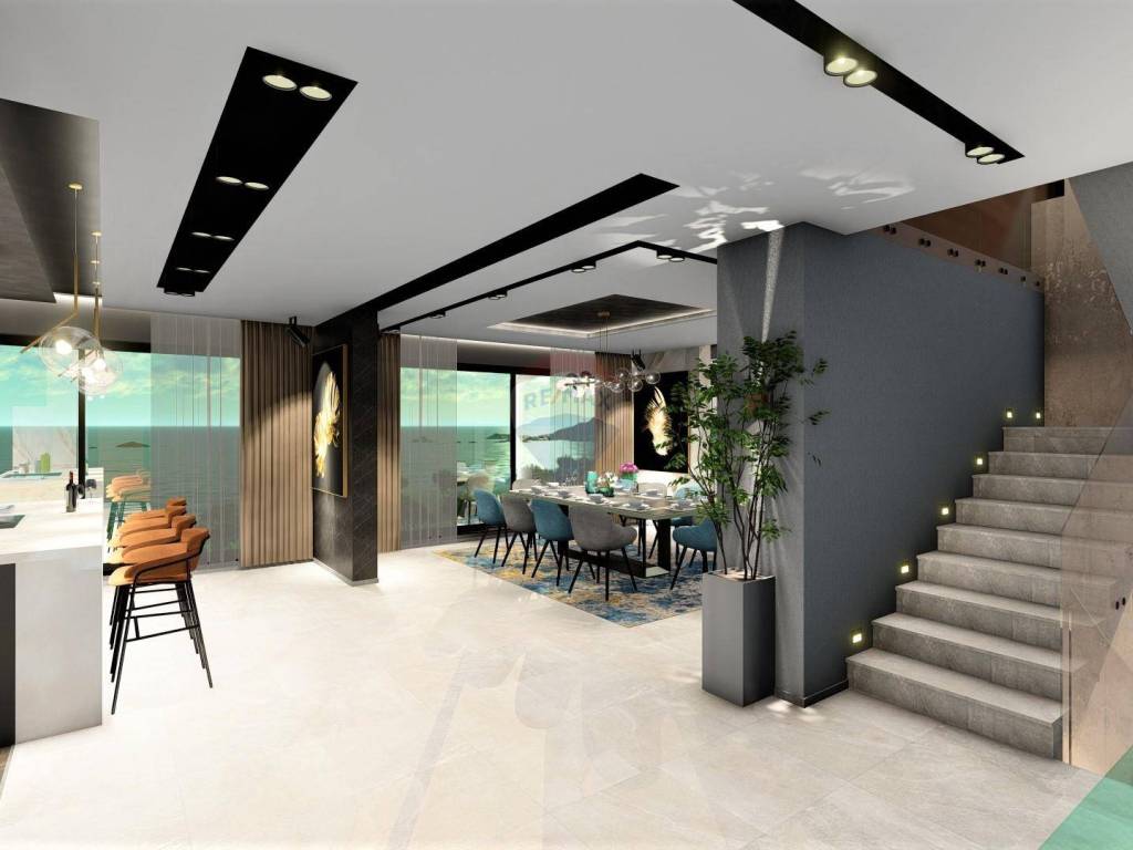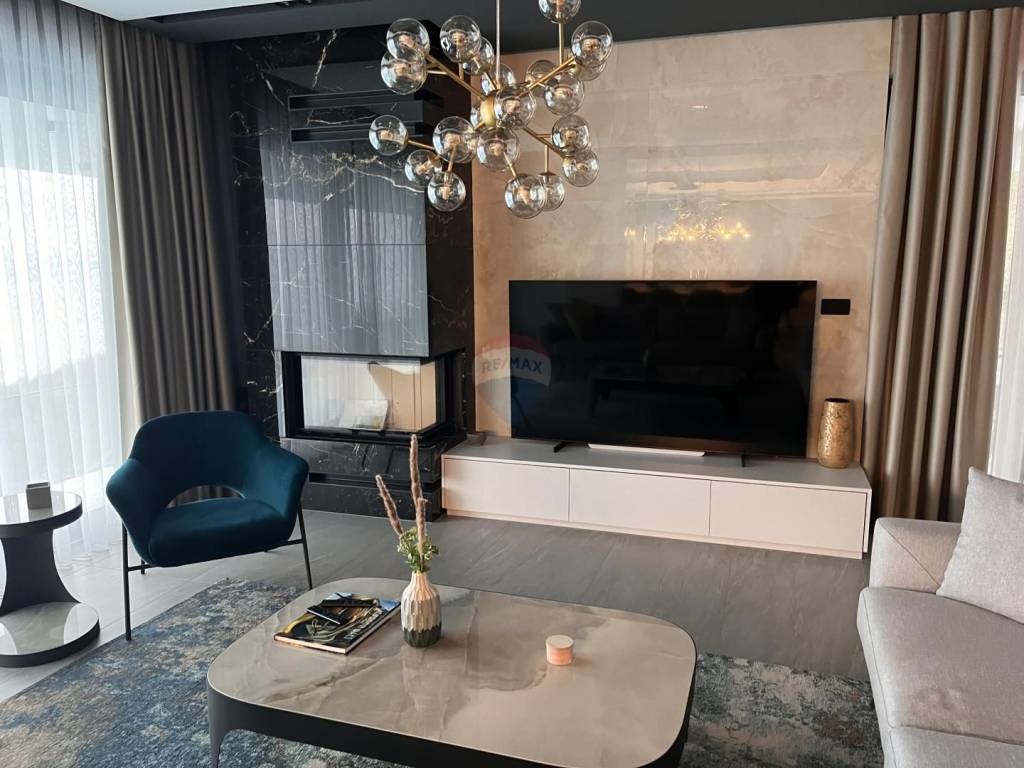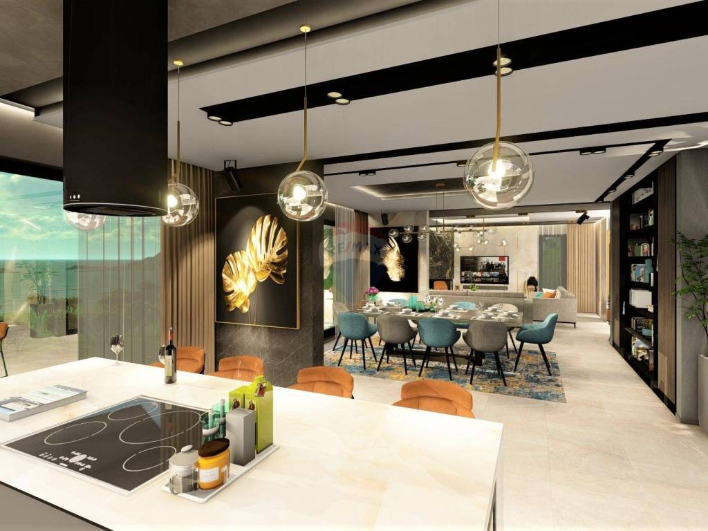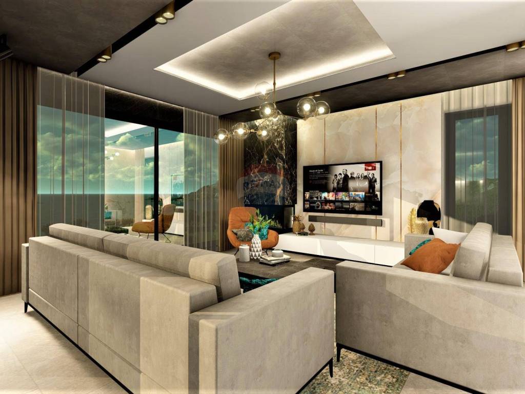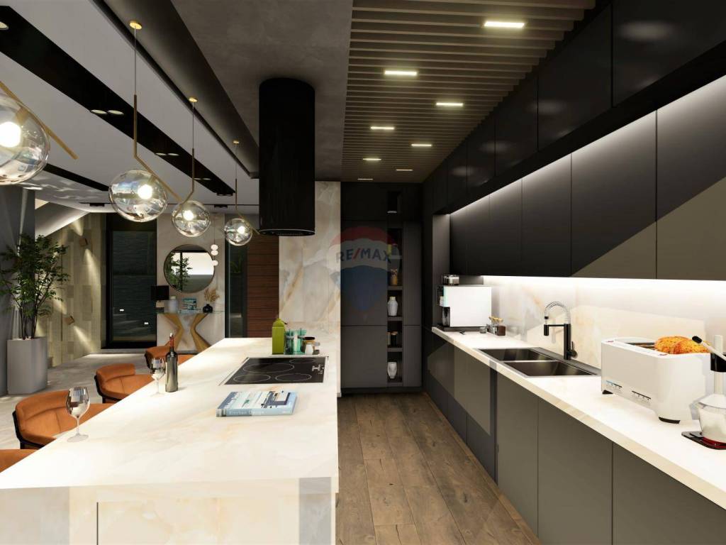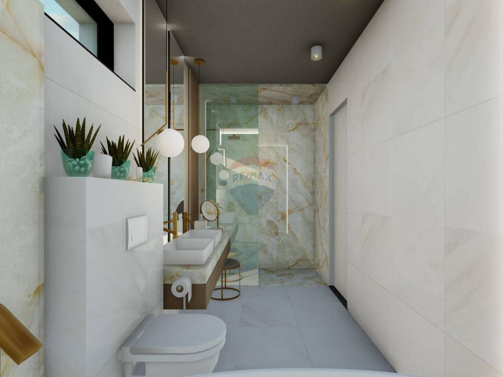 In the immediate vicinity of the center of Mošćenica, yet far enough to have its own privacy, is located the beautiful Villa Sunrise with an exceptional view of the entire Kvarner bay. When you look to the right, you can see the view towards Veliki Vrati all the way to the island of Unija and then over Mali Lošinj and the northern part of the island of Cre, complete with. Below we see the island of Krk with the towns of Malinsko, Njivice and Omišlje, all the way to Rijeka on the left side of Kvarner. Really impressive and unique view. Villa Sunrise is a free-standing new building, which is in nature a large two-story apartment fully furnished and equipped with top quality materials. The villa is located on a plot of 962 m2, and has a gross living area of 395 m2. This villa is also decorated with a large infinity pool of 43 m2 with a terrace - a sun deck facing the sea. The Villa can be reached via a spacious parking lot on the eastern side, which can accommodate five cars. In the future, that parking lot can be covered. The wide stairs next to the pool lead to the entrance to the Villa, which is on the west side. On the ground floor there is a spacious kitchen, equipped with top-quality appliances, a spacious dining area and a large living room. There is another room that is open to the exit to the pool, and has a multifunctional role. There is also one bathroom and a guest toilet on the ground floor. A pleasant staircase leads to the first floor, where there are four bedrooms, each with its own bathroom, and a large terrace that stretches across the entire front of the house. The facade is 15 cm Styrofoam. The swimming pool is heated with built-in additional equipment. Materials used in construction and furnishing the houses are of high quality, as is the method of their installation. Heating and cooling is via a heat pump, and the spaces are heated and cooled via the ceilings. Top quality aluminum locks guarantee excellent sound and heat insulation throughout the house. If you wake up early enough in this villa, you can experience unforgettable moments watching the sunrise. We are only 2.5 km from Mošćenička Draga, Opatija is 15 km away. It is located 1 hour drive to Rijeka airport, and only 45 minutes to Pula airport. In the immediate vicinity of all the necessary facilities. Just a few minutes drive to the most beautiful beaches of the northern Adriatic, Sipar and Sv. Ivan in Mošćenička Draga, and Klančac in Brseč. Price is a turnkey system with the fact that the Villa is fully furnished and allows the potential buyer immediate entry into the space.