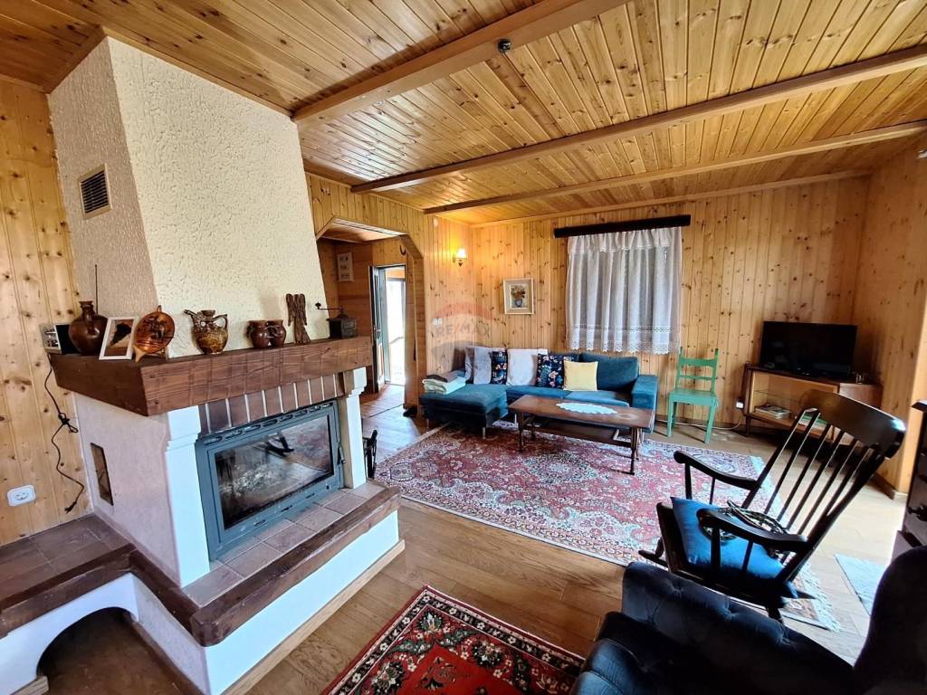 The house is decorated in an indigenous style, and consists of a ground floor, first floor and attic. On the ground floor there is an undecorated space with a fireplace, a sauna and a storage room with a water tank (the house does not have plumbing).