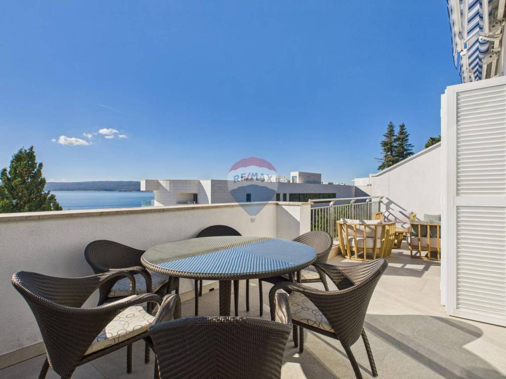 RE/MAX Real Estate Center presents a spacious duplex apartment for long-term rent, with a surface area of 144 m², located in the first row by the sea in the picturesque coastal town of Selce, part of the Crikvenica Riviera.