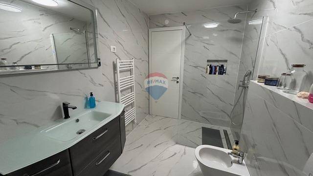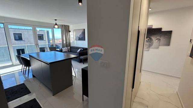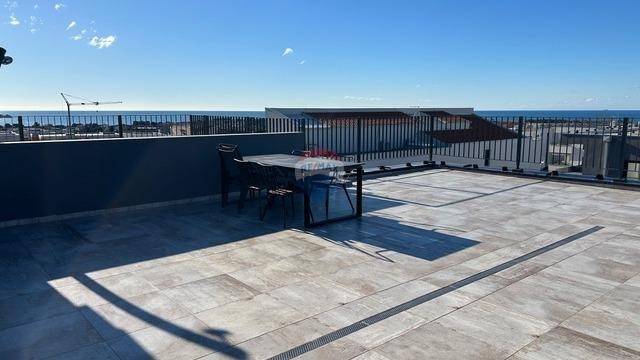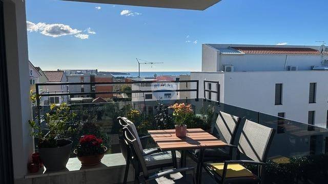 RE/MAX Centar nekretnina presents an exceptional opportunity to purchase an apartment in a high-quality new building with an elevator in Novigrad. What makes this property stand out is that the entire building is constructed of concrete and equipped with aluminum joinery and triple-glazed windows, ensuring a high level of quality, durability, and energy efficiency. The apartment is located on the second floor of the building and has a total living area of 78 m², along with an additional rooftop terrace of 60 m². It consists of an entrance hallway, a bathroom, two bedrooms, and a spacious open-plan area comprising a kitchen with dining area and a living room, with access to a covered terrace offering a beautiful sea view. Each room in the apartment is equipped with air conditioning and underfloor heating. Additional value is provided by a chimney, allowing for the installation of a fireplace or pellet stove. The apartment also includes a large rooftop terrace with a panoramic sea view, featuring a summer kitchen and prepared connections for a shower and jacuzzi, making this property ideal for relaxation and enjoyment throughout the year. The apartment comes with one covered parking space and a shared bicycle storage area located in front of the building. It is furnished with high-quality furniture and is sold partially furnished.