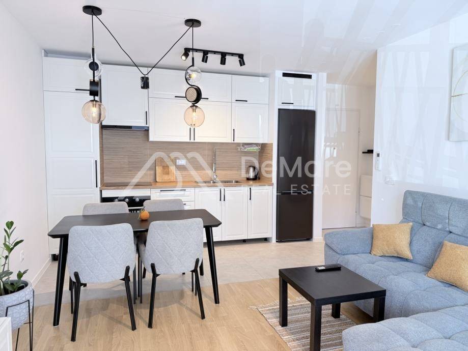 For sale is a beautiful and fully furnished two-bedroom apartment in a new residential building with an elevator, in the most sought-after location in the city of Zadar, in the Višnjik area.
