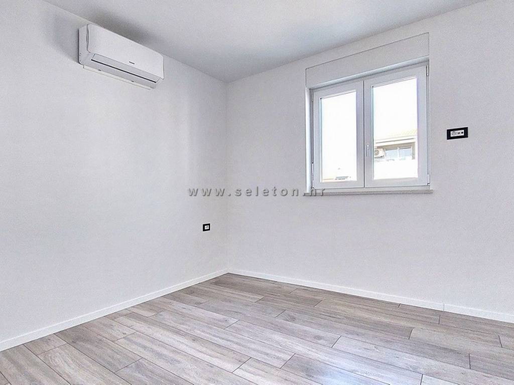 A new apartment of 65 m² is for sale near Poreč, consisting of an entrance hall, living room, covered terrace, kitchen, two bedrooms and a bathroom. The apartment has PVC windows with 3 insulated glass units and mosquito nets, air conditioning in all rooms, underfloor heating in the bathroom and 2 parking spaces in front of the building. The apartment is located on the second floor of the building, approximately 8 km from the sea and approximately 7 km from the city center, in the village there is supermarket and restaurants.