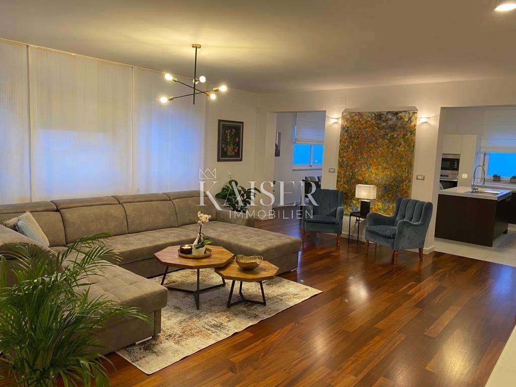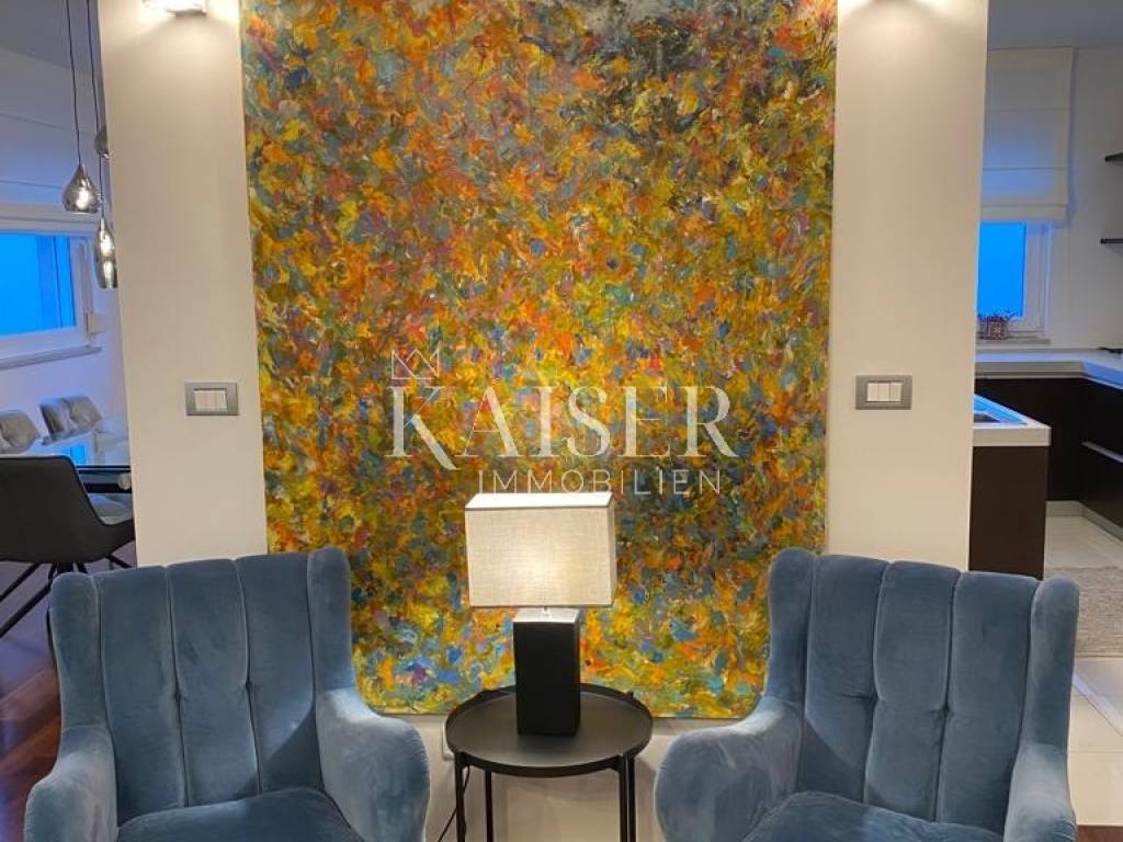 Kaiser Immobilien presents a luxury apartment for rent, 142m2, with a sea view. The apartment is located in an attractive location in Marčeljeva draga, close to all important amenities. The apartment consists of 4 bedrooms, living room, 2 bathrooms, 1 parking space, garage, storage room. The apartment is well decorated and every detail was taken care of. An exceptional opportunity for rent in a luxuriously furnished apartment in a top location.