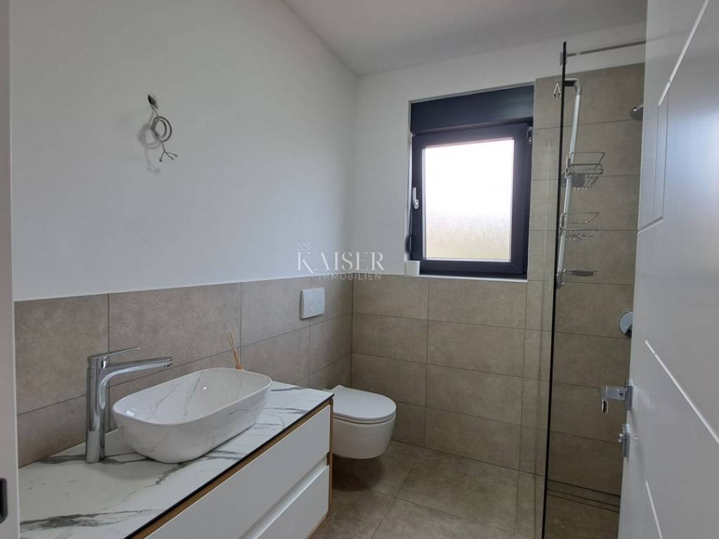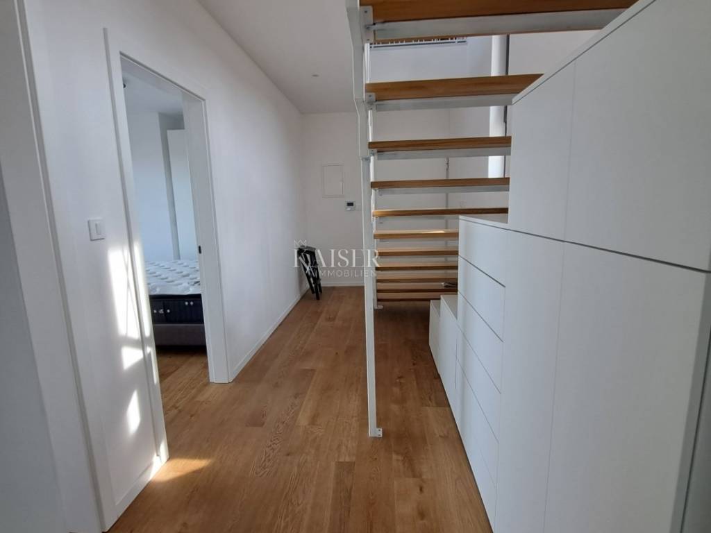 In the vicinity of Opatija, we offer a two-story apartment in a new building with a view of the sea, Rijeka and the surrounding area. A few minutes from the sea and the Lungo Mare promenade, this location near the shopping center, in a quiet street and in a landscaped garden, offers a pleasant living experience. The building has a total of 4 apartments. The offered apartment extends over 1 and 2 floors. On the first floor, there are two bedrooms that open onto a large terrace with an open view of the sea. Each has a walk-in bathroom. An internal staircase connects us to the second floor, where there is a living room, a kitchen with a dining room, a terrace and a toilet, all of which extends to 108 m2. The apartment is equipped with designer BABALOO furniture. The apartment has underfloor heating, if necessary it is possible to heat and cool with a heat pump, so there are two types of heating. Each room can be heated and cooled independently of the other space by means of a heat pump. The house has satellite and cable TV, a built-in alarm system, fire and burglary doors, and optical gigabit internet is used, currently the fastest version of the internet. The apartment has two parking spaces in the garden. Modern design, thoughtful interior decoration, pleasant and high-quality materials, as well as the location make this property special. The location is a 5-hour drive from destinations such as Vienna, Berlin 10 hours, Trieste 1 hour, Zagreb 1 hour 30 minutes, Krk airport 40 minutes, Pula 1 hour 20 minutes, Ljubljana 1 hour 30 minutes. For additional information and a tour, contact your agent: Eli Lovko, mob: 0916133776; eli@kaiser-immobilien.hr Agency commission is 3% + VAT