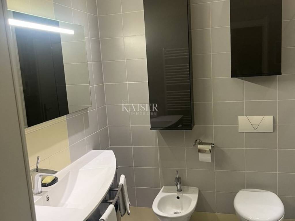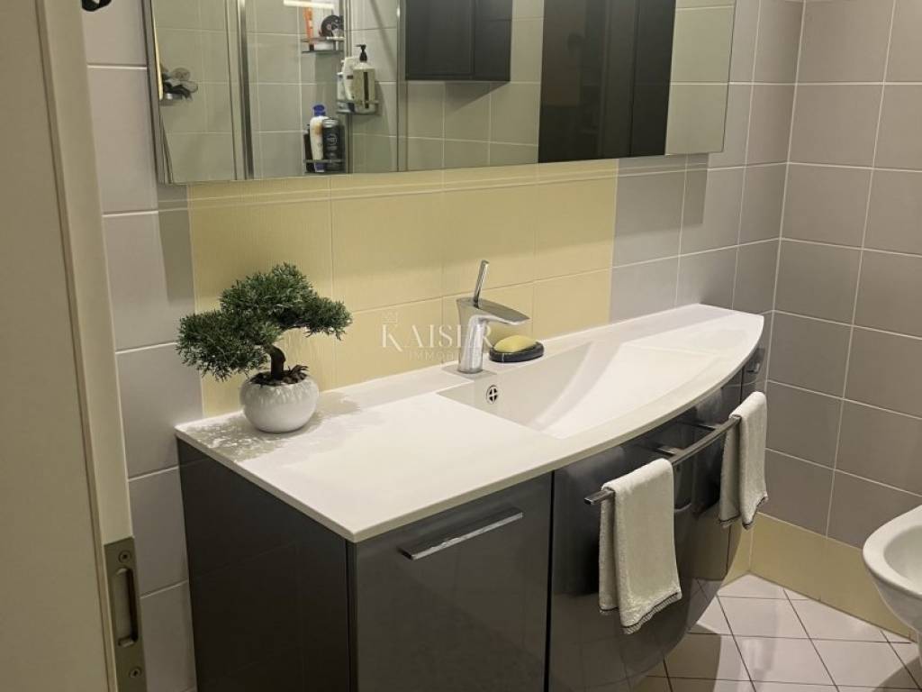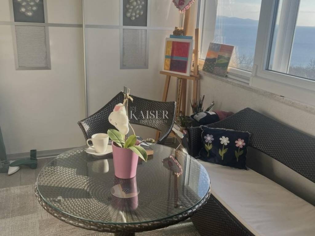 Kaiser Immobilien presents a two-room apartment in a modern building of recent construction in a rare and always sought-after location, with an open view of the entire Kvarner Bay. The apartment is 95 m2 in size, it is located on the ground floor, but due to the configuration of the ground, it is at the height of the second floor and consists of an entrance hall, two bedrooms, two bathrooms, an open space kitchen with a dining room and a living room from which there is access to the loggia from which offers a beautiful view of the Kvarner Bay. The rooms are west-facing, while the living room and kitchen are south-facing with an open view. Floor gas heating, cooling with air conditioners, while the bathroom has underfloor heating. The apartment has two outdoor parking spaces in the fenced yard. It is located near all important amenities. For additional information, contact us with confidence on the phone number +385 914100031, or on the e-mail address: romana@kaiser-immobilien.hr.