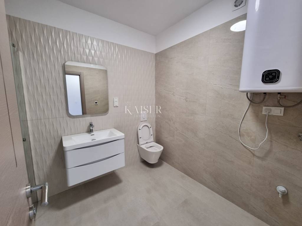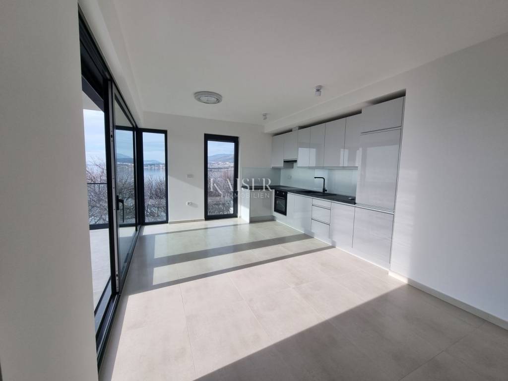 We offer an apartment under construction of 85 m2, first row to the sea in Klenovica. The apartment will have an entrance, kitchen and dining room, living room, toilet, two bedrooms with bathrooms and a terrace. A barbecue and a parking space are provided in the garden. The property is located in the first row to the sea and the beach. The planned completion of the works is spring 2023. Excellent location and price. The owner does not want any public announcement.