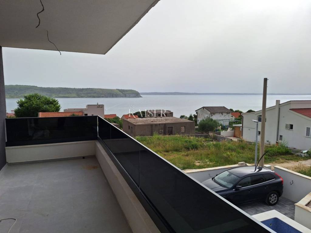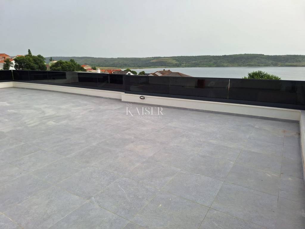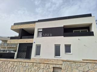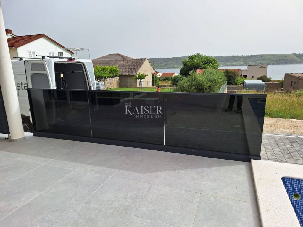 Kaiser Immobilien presents For sale: An attractive villa with a pool in Rtina near Zadar. A beautiful one-story villa with a roof terrace and a pool in the garden is for sale. The villa is located in a quiet part of the town of Rtina, facing south with an enchanting view of the sea, yet close to all the necessary facilities. Ideal for those looking for a perfect combination of luxury and nature. The villa consists of a ground floor, a first floor and a roof terrace, which are connected to each other by a staircase. The ground floor includes a spacious living room with a view of the sea, a kitchen with a dining room, a bathroom, a laundry room and a separate toilet. The ground floor has an exit to the garden where there is a swimming pool. Upstairs there are three bedrooms, of which the master bedroom has its own bathroom and a loggia with a view of the sea. The other rooms also have their own loggia with a sea view. There is also a shared bathroom on the first floor. The entire villa is connected by a staircase that leads to the roof terrace, where there is a pergola and a jacuzzi for relaxing moments with a wonderful view on all three sides. In the garden there is a 25m² swimming pool with a view of the sea! The villa has video surveillance, in addition to security, it offers comfort and privacy, located in a quiet part of Rtina surrounded by villas and houses. About Rtina: An idyllic place in Zadar County. Rtina is a village located in Zadar County, near the Pag bridge that connects the island of Pag to the mainland. Only 13 km from the highway, Rtina offers easy and quick access, which makes it easy to come and go. The proximity of two national parks, Paklenica (35 km away) and Plitvice (about 100 km), makes Rtina a perfect starting point for nature lovers. The city of Zadar is only a 20 km drive away, and it is the same distance to the city of Pag. Rtina is known for its beautiful sandy beaches, as well as secluded bays that offer complete peace and enjoyment. An ideal place for rest and escape from everyday hustle and bustle. Contact us for more information on 00385992510230 and plan your visit to Rtina!