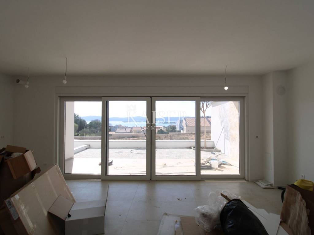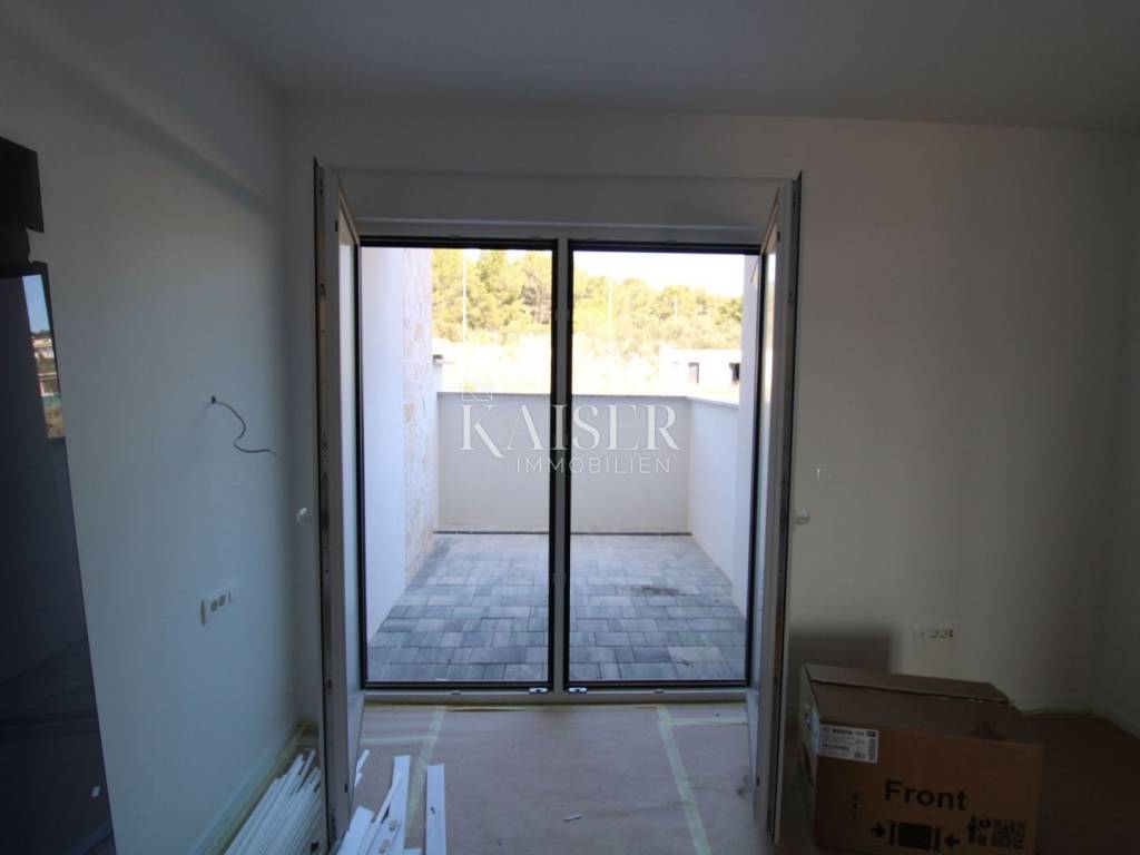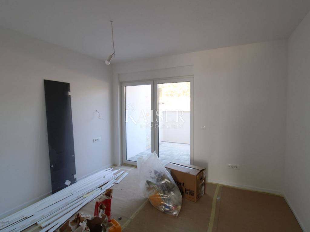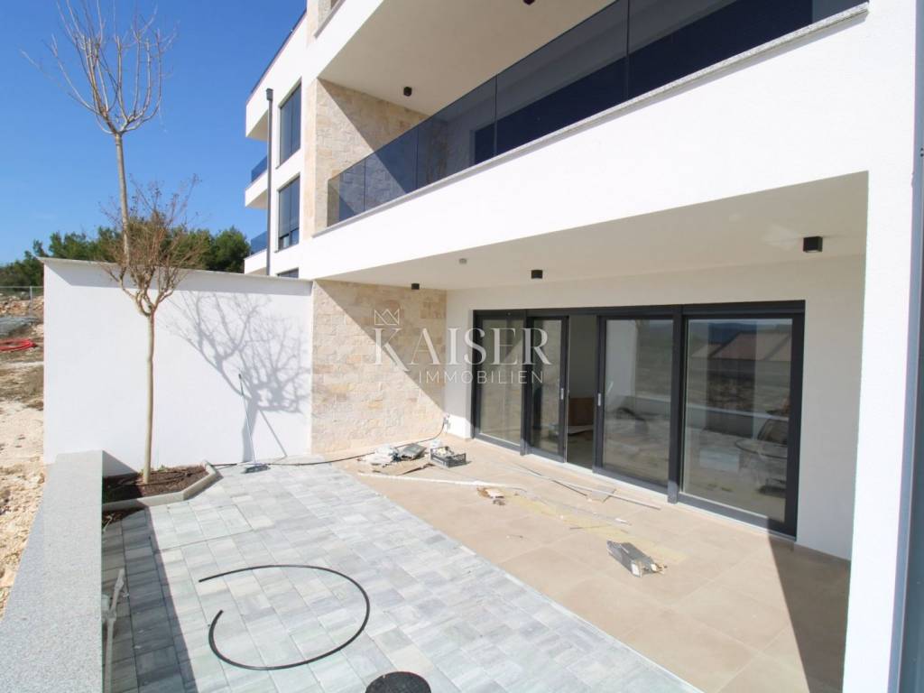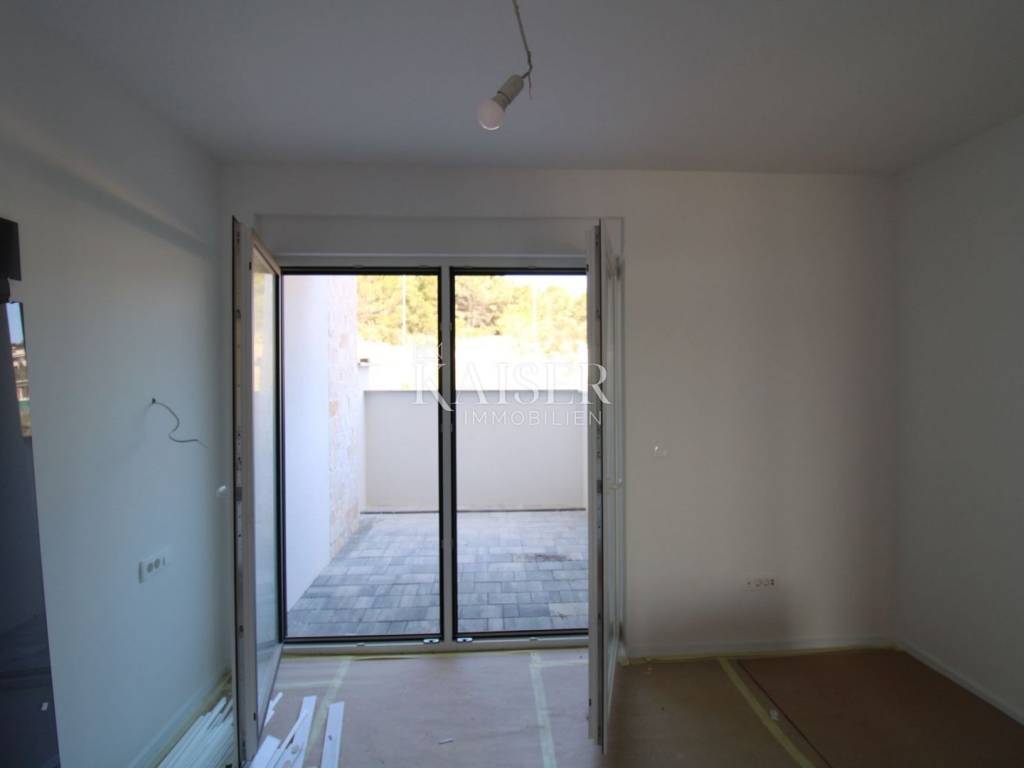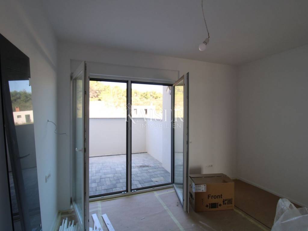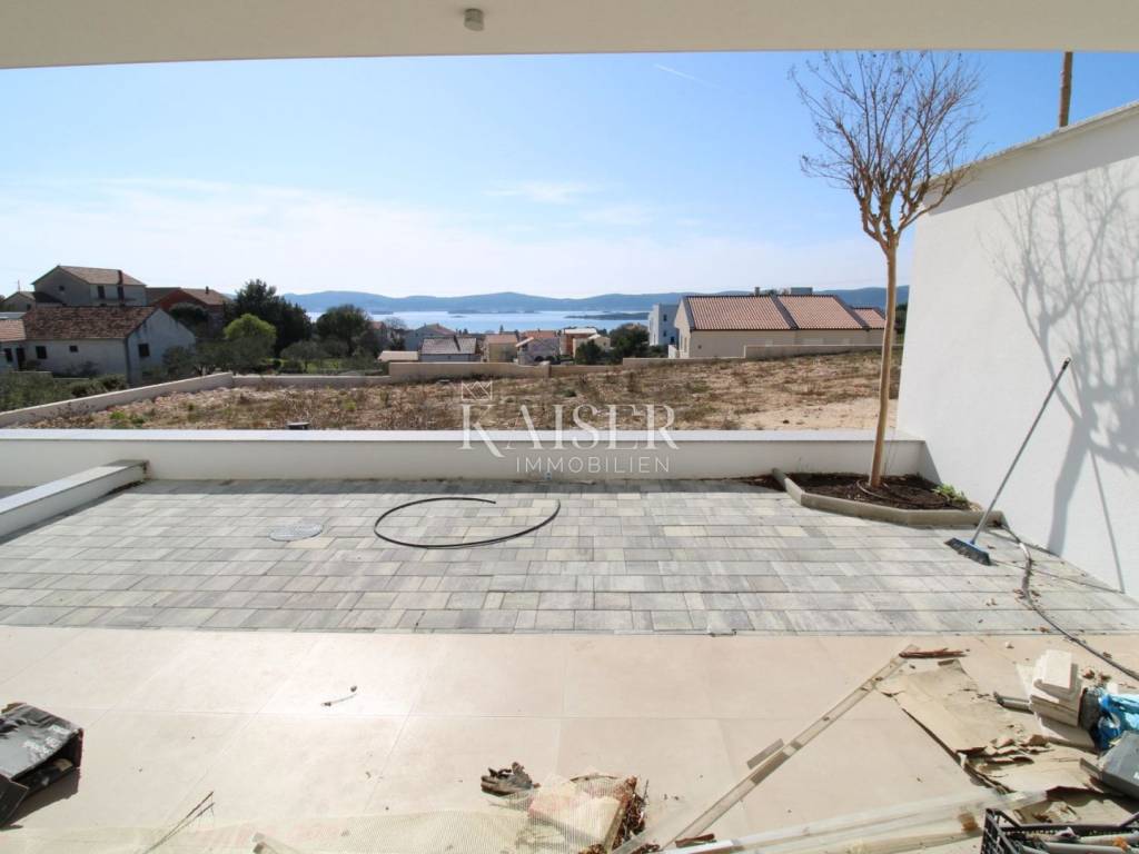 Kaiser Immobilien presents: Sv. Filip i Jakov - Apartment with a view of the sea and islands A spacious and bright apartment on the ground floor is for sale, located in a two-story building, on an elevated part of the tourist resort of Sv. Filip i Jakov, only 1000 m from the sea. This location offers a panoramic view of the sea and islands, untouched nature and perfect peace - without traffic jams and noise, in the immediate vicinity of the sea and beaches and other necessary facilities for undisturbed enjoyment. The apartment is equipped with high-quality real wood parquet, top-quality shiny ceramics, as well as underfloor heating, and a ventilation and air conditioning system in each room, the exterior joinery consists of spacious glass walls for an unobstructed view as well as protection from external influences. The seller offers the possibility of ordering and making custom-made furniture. Construction is expected to be completed and ready for occupancy in May 2025. Apartment area: 66.19 m² + associated content - total 70.80 m² Room layout: Hallway – 7.01 m² Bedroom – 12.19 m² Bathroom – 5.38 m² Living room + kitchen + dining room – 27.88 m² Loggia – 13.73 m² (enjoy the view!) Associated content: Parking space – 2.50 m² Garden – 2.20 m² Outdoor storage Location: Quiet and attractive area of Sv. Filip i Jakov with panoramic views of the sea and islands Close to untouched nature and forests Distance from the sea: only 1000 m Close to the town center, beaches and all necessary amenities The apartment is ideal for a vacation, but also as an investment for tourist rental. Sveti Filip i Jakov is a charming, small seaside town located along the Adriatic coast, known for its beautiful beaches, crystal clear sea and Mediterranean ambiance. It is located near Biograd na Moru and is an ideal place for a quiet life or vacation. Distances: A1 motorway (Benkovac exit) – 20 km Zadar Airport – 25 km National parks: - Kornati (boat trips from the town) - Krka – 50 km - Paklenica – 60 km - Vrana Lake (nature park) – 10 km Excellent connectivity and proximity to natural beauty make Sveti Filip i Jakov an ideal combination of vacation and adventure! For all information and sightseeing, contact us today. Tel.: 00385992510230 Email: marijana.papic@kaiser-immobilien.hr