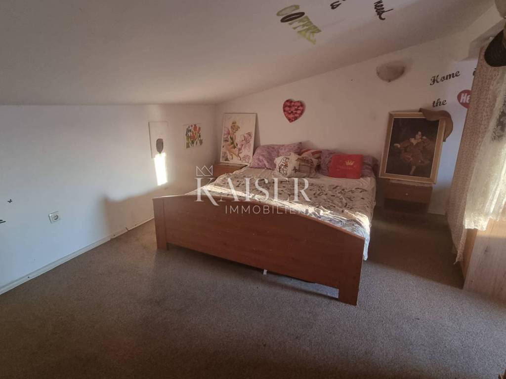 Kaiser Immobilien presents a house in Selce, not far from Crikvenica, in a quiet street. The house has a total living area of 126 m². South-facing and surrounded by a fenced garden, the house offers a rare advantage for this area - its own private parking space within the fenced garden. The parking space is for a smaller car. The house is spread over three floors. On the ground floor there is a hallway, bathroom, kitchen with dining room and living room. On the first floor there are two spacious bedrooms, each with access to its own balcony, and an additional bathroom. In the high attic there is another bedroom, a small office and a terrace with a view of the sea and the old town center. The property is being sold partially furnished. The house is equipped with air conditioning and central heating, and was last renovated in 2012. The house requires partial renovation. In addition to the private parking space, an additional advantage is the possibility of purchasing the neighboring property, which is in poor condition, but offers potential for expanding the existing house and garden. The property is ideal for tourism or living. Distance from the property: Novi Vinodolski - 8km Rijeka - 35km Zagreb - 160km For all questions, please contact the agents: Davor Piškulić davor@kaiser-immobilien.hr +00 385 95 583 8240 WhatsApp, Viber