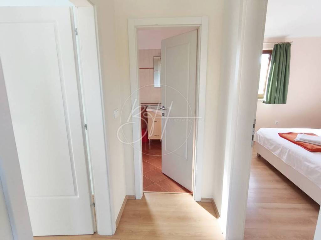 The house consists of a ground floor and an upper floor. On the ground floor there is a spacious open space area that combines the kitchen, dining room and living room with access to the terrace and yard. On the same floor there is also one bedroom and a bathroom. On the upper floor there are two bedrooms and an additional bathroom, and one of the rooms has access to a balcony with a view of the peaceful nature and greenery.