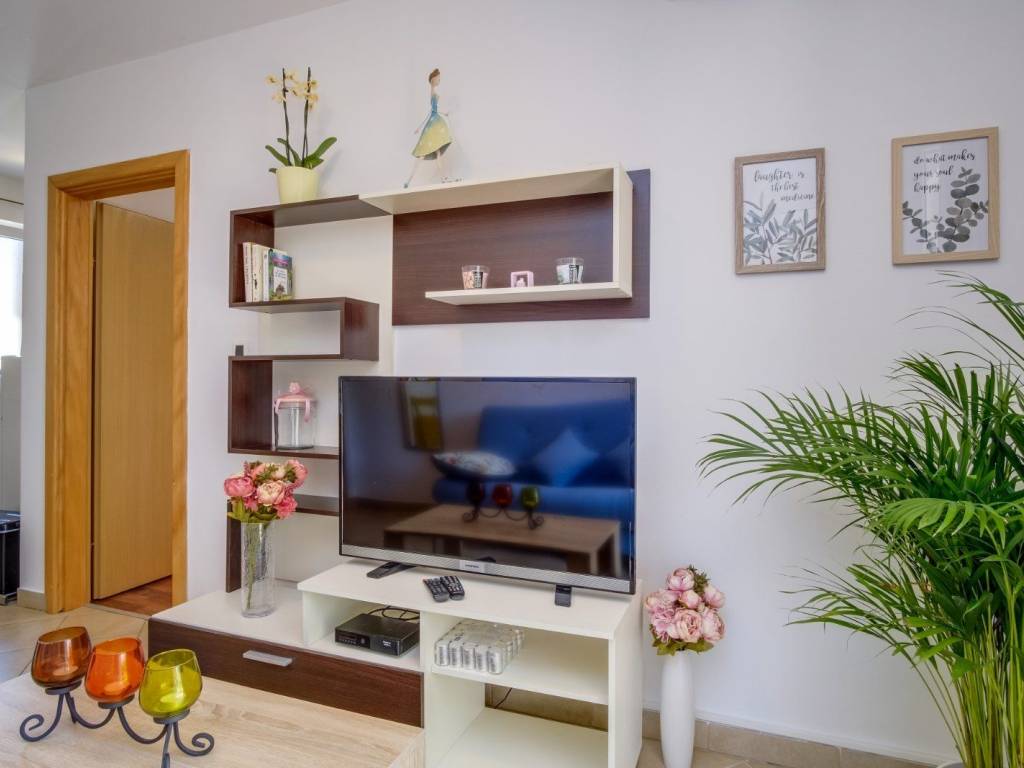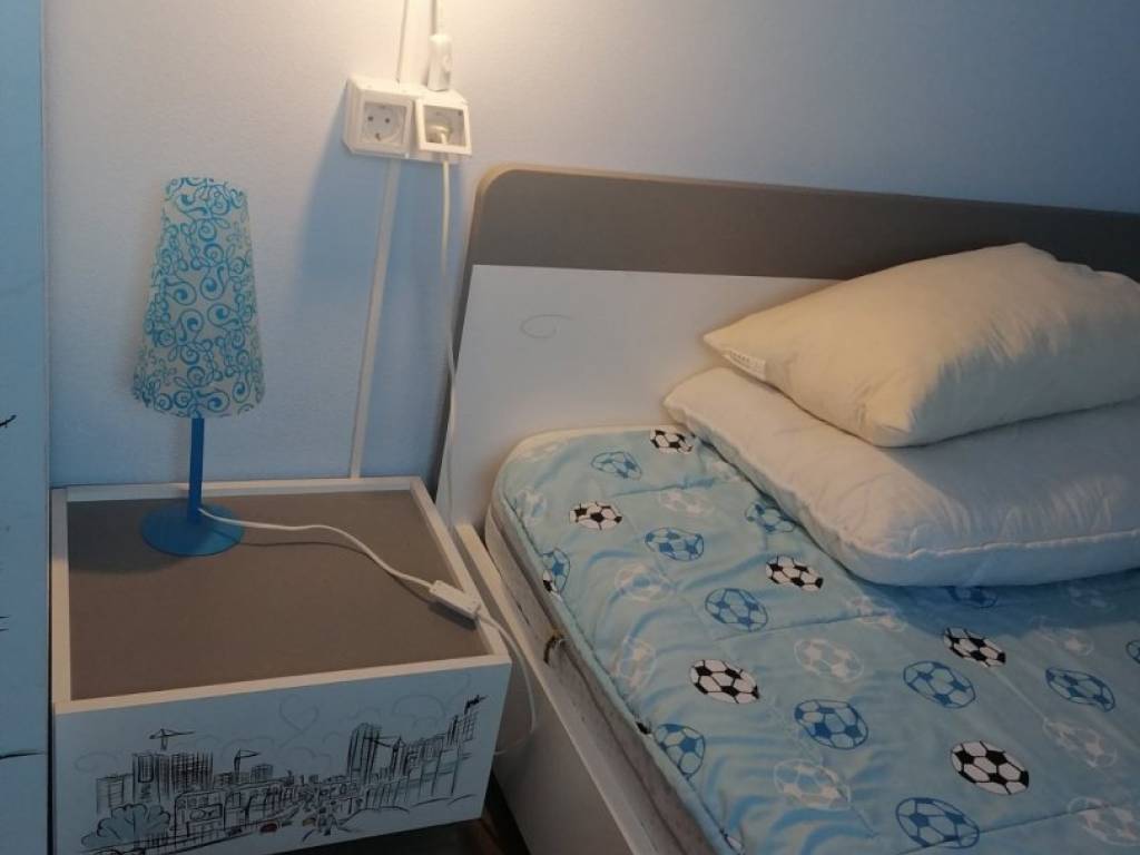 A separate entrance leads to a two-story apartment, ideal for a family of four, in the basement there is a storage room, stairs lead to the apartment, and on the first floor there is a living room with a kitchen, a bathroom and a view of the sea, and on the upper floor there are 2 bedrooms, a hallway with a built-in wardrobe, and another bathroom.