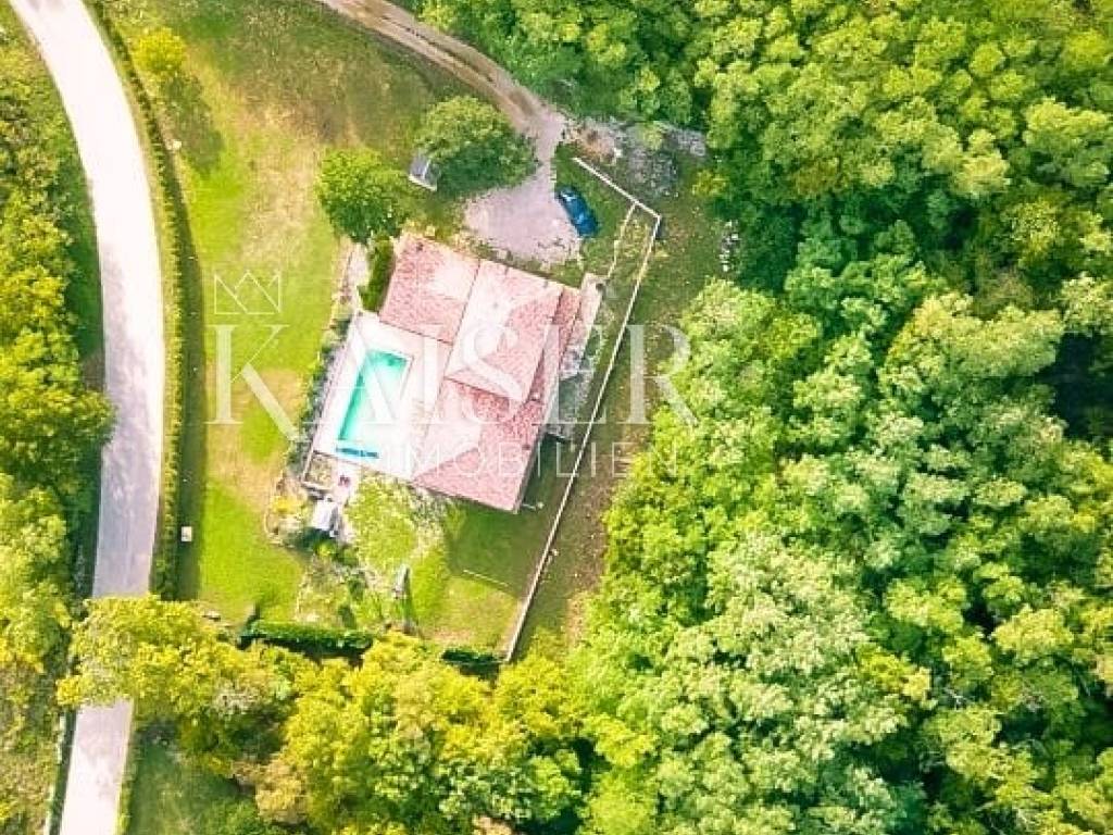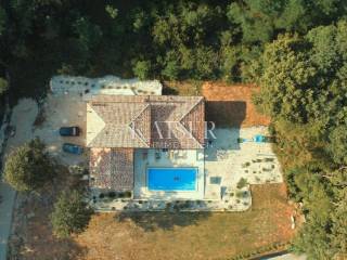 Kaiser Immobilien offers a villa with a pool near Labin and Kršan. The villa is located in a quiet village, but close to all necessary facilities, such as shops, restaurants, bank, post office, pharmacy and the like. It is equipped with modern furniture and provides complete comfort. The interior is connected to the exterior and the pool via a beautiful covered terrace. It has a net area of 278 m2. In the basement there is a wellness room with a sauna, fitness equipment, hydromassage bath, shower and toilet. On the ground floor there is a spacious living room connected to the kitchen and a room for billiards and darts. In addition, there are two bedrooms with bathrooms and a separate toilet on the ground floor. On the first floor of the house there are two more bedrooms with bathrooms and a common terrace. In the yard there is a heated and saltwater pool, as well as a barbecue, a swing, a slide, a sandbox and a terrace with garden furniture. The yard has automatic irrigation. The villa was built according to European Union standards.