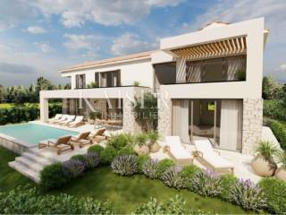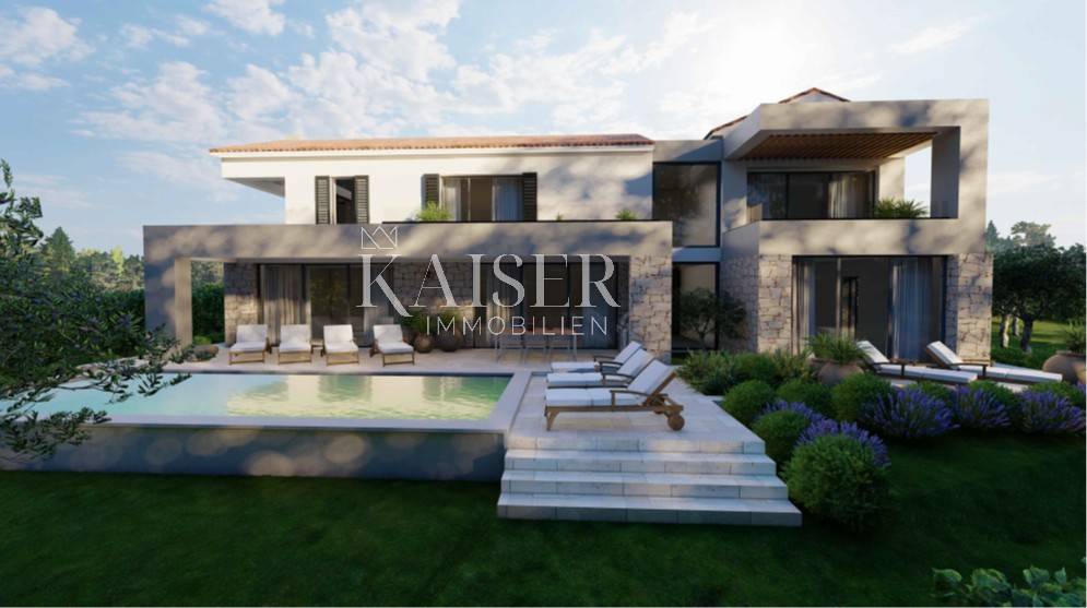 Kaiser Immobilien puts another beautiful new luxury villa with sea view on the market. The villa is located on the northwestern coast of Istria, more precisely near the town of Poreč. This beautiful villa is a part of untouched nature in a popular village where you can feel a touch of Istria and tradition. The villa was built with a ground floor and one floor, in a very modern style of construction and high-quality materials. The ground floor of the villa will have a hallway, toilet, laundry room, boiler room, living room with kitchen and dining room, bedroom, bathroom and covered terrace. On the first floor there will be a hallway, a study, three bedrooms and three bathrooms, one covered and one uncovered terrace. The heating will be electric underfloor and the house will be equipped with air conditioners. There will be a 49 m2 swimming pool on the plot. If you want this beautiful new villa to become your new home, contact your agent.