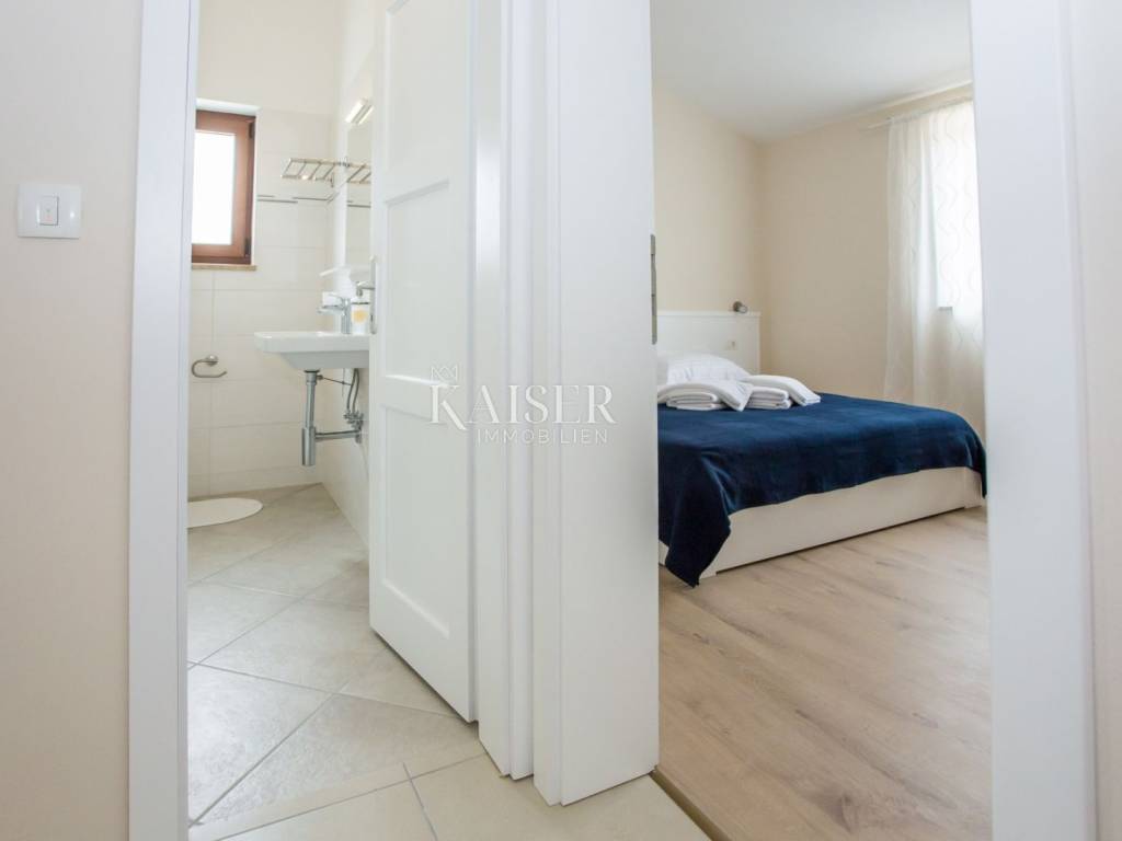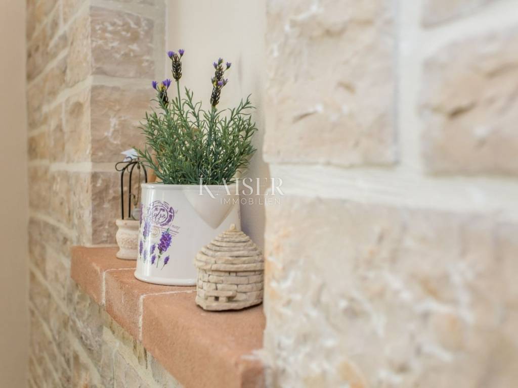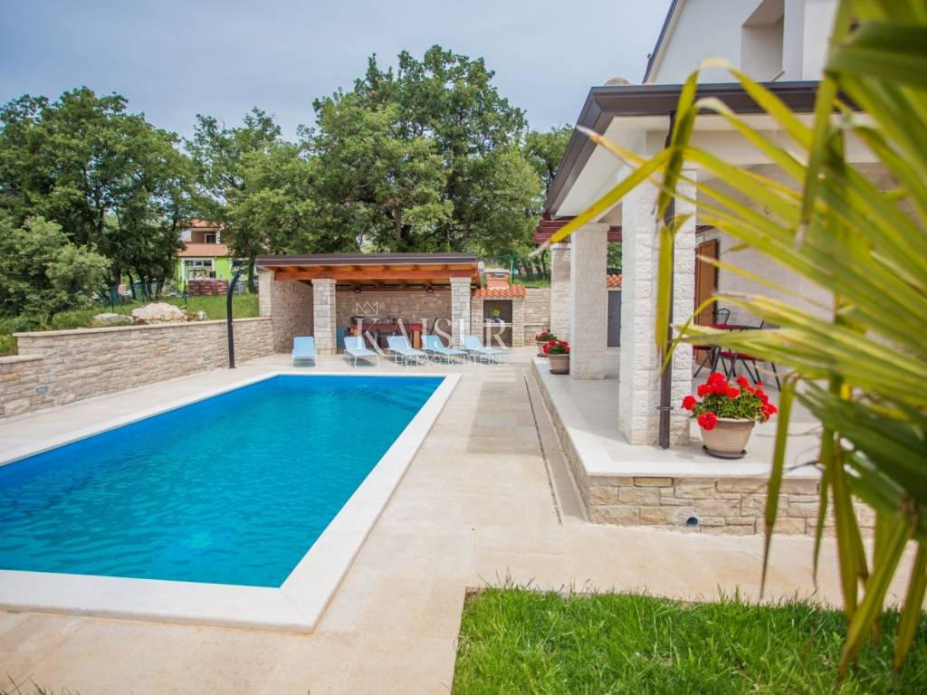 Kaiser Imobilien presents you a beautiful villa with a sea view. The villa is a combination of modern and indigenous domestic design. The villa is located not far from the very popular small autochthonous Istrian town of Kaštelir. The villa consists of a ground floor and a first floor, it has four bedrooms, three large bathrooms, and the specificity of the villa is that it is built of stone and contains a spacious covered terrace of approx. 40 m2, where you will enjoy a beautiful view of the sea, olive groves and vineyards . All that the Istrian region is known for. Outside the villa, right next to the pool, there is an outdoor grill and another terrace covered with a pergola. There are 2 parking spaces within the villa, however there is a possibility to park 3 vehicles. In addition to the swimming pool, the yard of this villa is decorated with a beautiful green lawn with palm and olive trees, with plants specific to the Mediterranean. The place where the villa is located is very well known, both to our residents and tourists, for its excellent gastronomic offer, for the best wines and even better olive groves, and it is only about 10 km from the beaches in the city of Poreč. If you want to become part of this beautiful story, contact your agent.