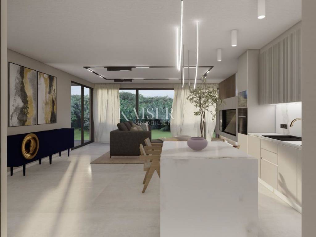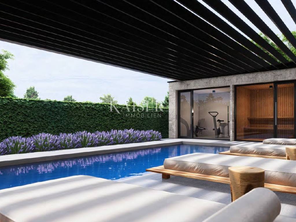 Kaiser Immobilien presents a wonderful, luxurious new two-story apartment, with an equipped roof terrace and a view of the sea. The apartment is located not far from the city of Poreč, only one kilometer from the sea and the first beaches. The position of the apartment guarantees a combination of luxury and tradition on the edge of a small settlement in untouched nature. This magnificent apartment provides everything you need for your new luxurious life in Istria. The apartment is located on the first floor of a house that consists of a total of four apartments. The apartments are built to the highest quality level, and attention is paid to every detail and customer's needs, so that your new life in Istria will be as carefree and pleasant as possible. All construction is massive, the walls will be plastered fine and rough and the color of the walls will be white. Ceramics will be first class in larger formats. The carpentry is PVC, high-quality, three-layer with electric blinds with mosquito nets. Woodwork color anthracite matt. The contents of the apartment are perfectly distributed on two floors with a sensational view of the sea, the upper part is closed with a glass wall that gives warmth and perfect light to the apartment. On the first floor of the apartment there are two bedrooms, each with its own bathroom, and an additional guest toilet and anteroom. The kitchen, living room and dining room have an open space look, soft beige color with a wonderful view of the sea. The outdoor terrace is covered, which will additionally protect you from the sun or rain. On the first floor there is a sauna, a gym, a sunbathing area, a room for socializing and another bathroom. This modern and spacious apartment measuring 236 square meters offers the real luxury of living in beautiful Istria, where you can experience the charms of our best wines, olive oils and the top quality of our award-winning traditional restaurants. Contact us and afford this luxury. Distance of the property to the city: Poreč - Pula Airport, 45 km Poreč - Ljubljana, 162 km Poreč - Vienna, 544 km Poreč - Prague, 868 km Poreč - Munich, 565 km If you want this wonderful luxury apartment with an irresistible look to become your new dom., contact the agent at phone number 00385 923782803, or at the email address: ivana@kaiser-immobilien.hr. Agency commission is 3% + VAT.