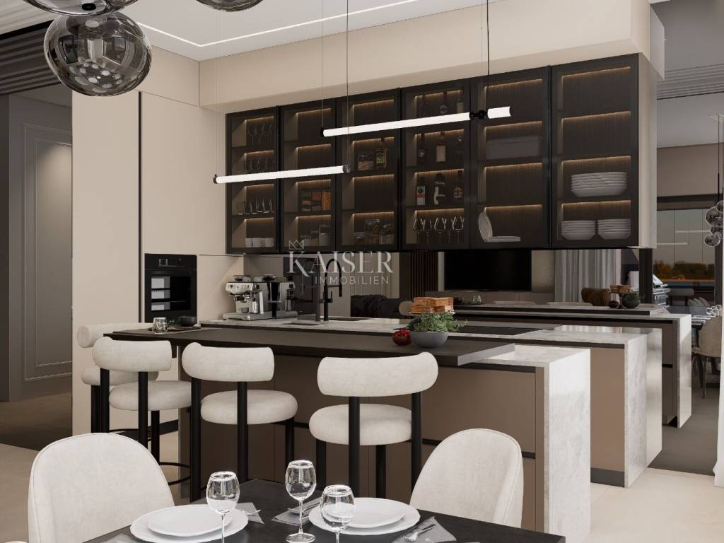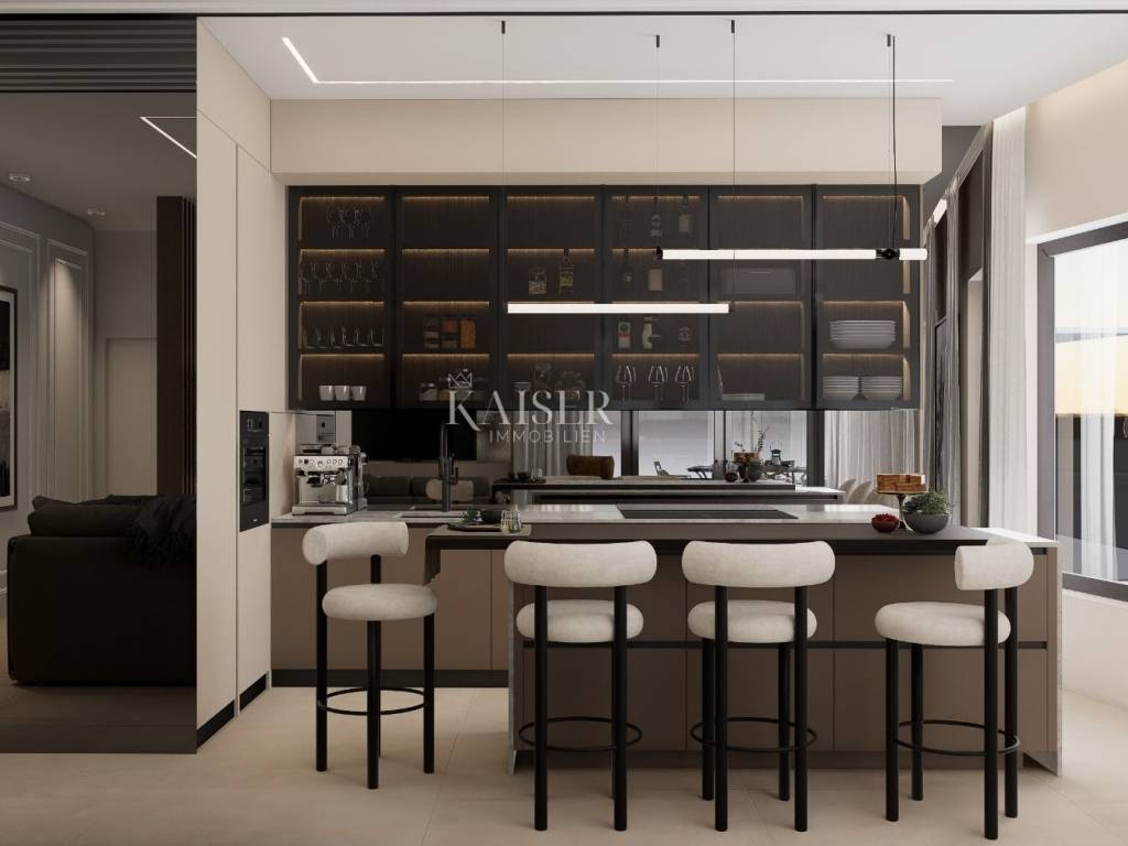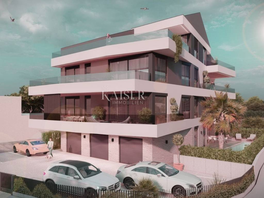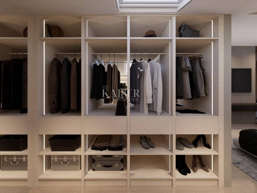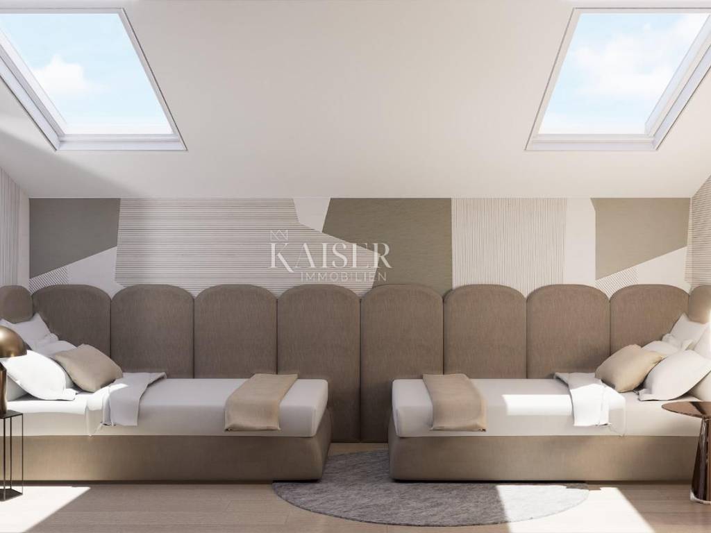 Kaiser Immobilien offers for sale a luxurious penthouse only 500 m from the sea. The apartment is located on the West Coast of Istria in the most popular and favorite Mediterranean town of Istria, Rovinj. The location of the apartment as well as the city are equally attractive for the local population as well as for foreign tourists and new investments. This modern and meticulously designed project consists of a residential building with a total of six apartments of different sizes, designed with the aim of ensuring a high level of quality of living, which was achieved through a smart arrangement of rooms, the number of balcony openings, terraces, an elevator, a high level of built-in materials and equipment, etc... The building is located on a plot of land of 709 m2 at a distance of approx. 500 m from the sea. It consists of four floors consisting of the ground floor, 1st floor, 2nd floor and penthouse, connected by a staircase and an elevator. The apartment has three bedrooms, two bathrooms, kitchen, living room and dining room, hallway, wardrobe, storage room, covered and uncovered terrace, elevator, Jacuzzi, one garage parking space and one parking space outside. Heating with heat pumps. Orientation Southwest. TECHNICAL DESCRIPTION OF THE PROJECT - base plate, walls, mezzanine and roof structure, load-bearing columns are reinforced concrete - partition walls in the apartments are made according to the Knauf W112 system, thickness 10 and 12.5 cm - two Knauf panels on both sides with mineral wool filling - additional thermal insulation towards all unheated areas - suspended ceilings in apartments made of KNAUF gypsum boards - by installing the highest quality materials and equipment, we ensured very low energy consumption and achieved a high energy standard A + - SCHINDLER elevator or similar - garage spaces and storage rooms inside the building, outdoor parking spaces - sensor lighting on the staircase and corridors - apartment on the ground floor with a yard - in the desire to ensure enjoyment in excellently lit living spaces, all glazed surfaces are of particularly large dimensions, while in the living rooms they are installed - - panoramic walls - aluminum exterior joinery, glass with LOW coating, height 250 cm, lifting-sliding walls, aluminum blinds for protection from the sun with electric motors, same floor level - - in the interior and on the terraces - a spacious terrace that is pleasant to stay in all year round thanks to the southwest orientation - SMART control system - top floor and wall coverings (three-layer oak parquet and large-sized tiles, stone-clad staircase) - thermal insulation from 10 to 15 cm with a final layer of noble finishing decorative plaster RÖFIX in natural tones - terraces hydro-insulated with the SIKA system or similar - as a source of heat and cooling energy inverter hybrid air/water heat pumps, underfloor heating and fan convectors are provided (apartments S2, S4, S6) - as a source of heat and cooling energy, inverter air conditioning units are provided, with additional floor heating in the bathroom (apartments S1, S3, S5) - built-in sensors for smoke and carbon monoxide detection in all housing units for additional safety of the entire facility - bathroom equipment from renowned manufacturers with high-quality faucets, walk-in shower, console-type toilet bowls with soft close lowering of the board, low-noise drain and supply pipes - HORMANN entrance apartment doors are non-combustible T-30, height 225 cm (fire-resistant and anti-burglary) - interior carpentry HORMANN - waste disposal and recycling provided in a separate place outside the building Distance of the property to the place: Rovinj - Pula Airport, 39 km Rovinj - Ljubljana, 187 km Rovinj - Vienna, 574 km Rovinj - Prague, 897 km Rovinj - Munich If you are planning to start your new life in Istria in this luxury apartment, contact us with confidence at phone number 00385 923782803, or at the email address: ivana@kaiser- immobilien.hr. Agency commission is 3% + VAT.