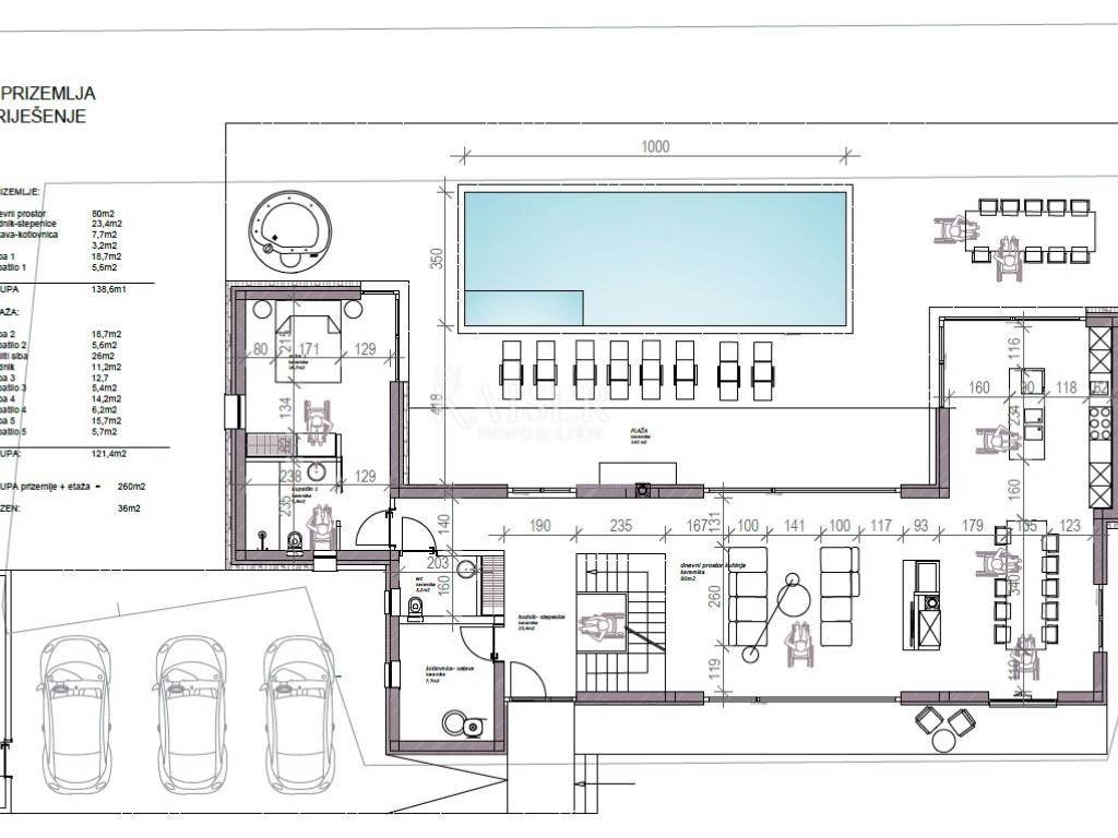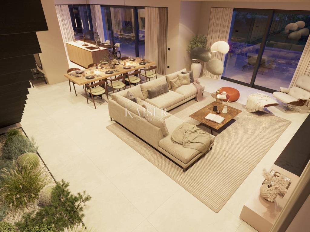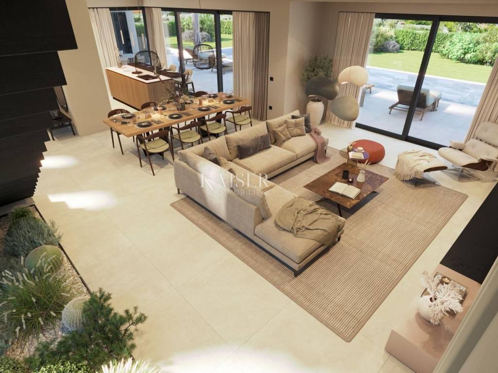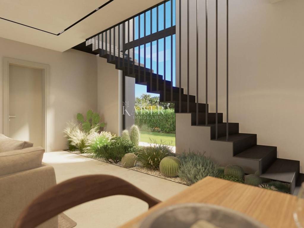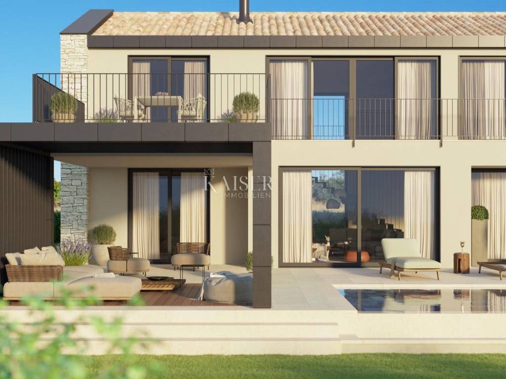 Kaiser Immobilien offers for sale a unique opportunity, a luxury villa adapted for people with disabilities. This unique and unique villa is a real rarity on the market, it is located only 4 km from the city of Poreč and the first beaches, and its design is adapted for people in need and yet in a modern, luxurious and unique way. The villa is completely detached, in the vicinity of which there are several smaller villas. It is located on the edge of nature, near which there will be no more construction. This fact alone is another great advantage because it is in the immediate vicinity of the green belt. The villa is distributed on the ground floor and first floor, with a very open, bright and luxurious appearance. On the ground floor of the villa there will be one bedroom, kitchen, dining room and living room, hallway, boiler room and guest toilet. On the first floor of the villa there will be 4 more bedrooms, 4 bathrooms and an entrance hall. There is a possibility to build another bedroom if necessary. The living space is organized in such a way that it is possible to move around the space in a "circle", which means that every element of equipment in the space can be reached from at least two sides. All passageways between equipment are dimensioned for unhindered passage with wheelchairs, so the minimum free space between equipment elements is 120 cm to 160 cm (passage dimensions and equipment dimensions are quoted). The ground floor and first floor are connected by stairs and a lifting platform measuring 150 x 130 cm. Sanitary facilities - bathrooms are organized so that there is enough space for wheelchairs to use the toilet, shower and sink. The rooms are large enough for unhindered movement of wheelchairs and access to the bed. Room number 2 has a 140 cm bed and a 100 cm wide bed. Room number 4 and number 5 can be family rooms that are separated from other rooms by a corridor (additional door in the corridor). On the upper floor, in the area in front of the stairs, it is also possible to place a smaller room 6, which in this example would have a shared bathroom with room 2 or possibly additional service areas. All vertical height differences and access to the pool will be equipped with ramps and the necessary handrails. All internal doors are 90 cm wide. The beach around the pool is more than big enough. There are 3 parking spaces under the parking lot canopy, and an outside storage room is provided next to the canopy. The building is designed so that it is in harmony with the buildings that are or will be in the immediate vicinity. The size of the plot is 978 m2, the floor plan gross floor area is 170 m2 and the pool 35 m2 (dimensions 10 x 3.5 m). Distance of the property to the city: Poreč - Pula Airport, 45 km Poreč - Ljubljana, 162 km Poreč - Vienna, 544 km Poreč - Prague, 868 km Poreč - Munich, 565 km If you are looking for this kind of property, contact us with confidence at phone number 00385 923782803, or to the email address: ivana@kaiser-immobilien.hr. Agency commission is 3% + VAT.