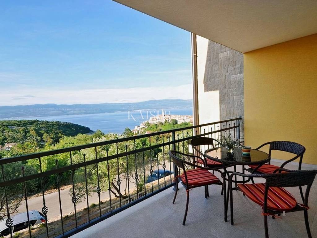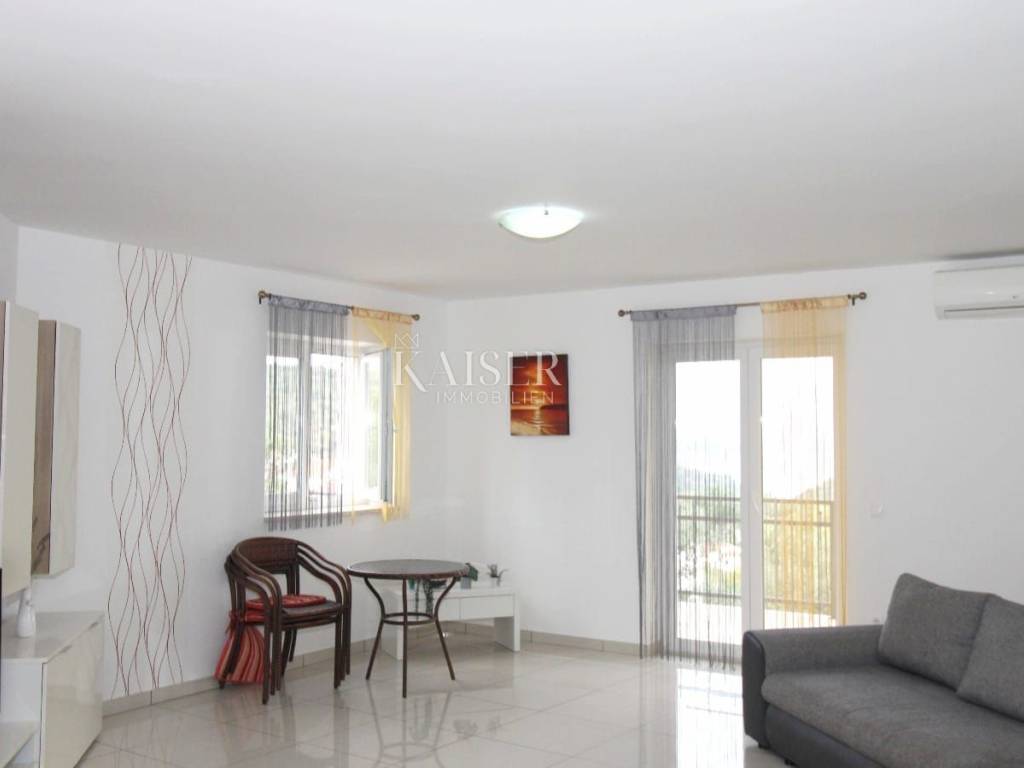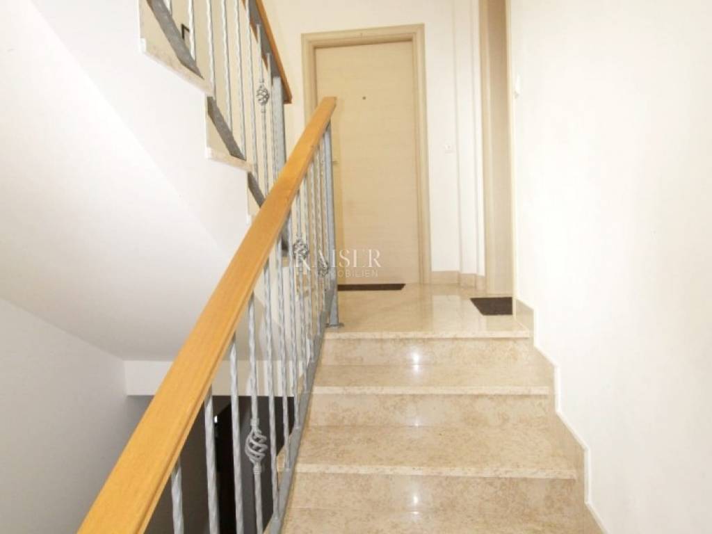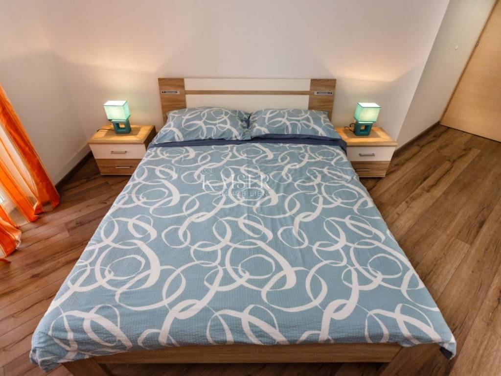 Vrbnik is one of the oldest places on the island of Krk. It is located on the eastern side of the island of Krk on a steep cliff at an altitude of about 50 meters. Vrbnik is a typical coastal town with small houses in narrow stone-paved streets. The most important economic branch in Vrbnik is agriculture, more precisely viticulture. Vrbnik has about 900 inhabitants in winter and about 2000 in summer, making it the right choice for those who do not want mass tourism but are looking for original Mediterranean charm. Kaiser Immobilien presents you a modern apartment of 93 m² located in a residential building with an enchanting view of the sea and the old center of Vrbnik. The apartment is located on the first floor and offers everything you need for a comfortable life. The apartment opens its doors to an entrance hall of 2.50 m², and then you enter a spacious living room that combines a kitchen, dining room and living room, with a total area of 45.94 m². From the living room you can go out to the loggia of 8.18 m², where you can enjoy a wonderful view of the sea and the historic Vrbnik, an ideal place to enjoy morning coffee or evening hours. The apartment has two bedrooms, one of which has its own exit to an additional loggia of 5.85 m², providing you with privacy and a quiet place to relax with a view of the sea. The modern bathroom, measuring 3.97 m², is equipped with a shower, toilet and washing machine. The special advantage of this apartment is its common garden, which is available to all tenants. There is an outdoor grill in the yard, ideal for outdoor gatherings, and at the owner's request, you can also use the tavern for larger gatherings. The apartment is equipped with air conditioning for heating and cooling, but there is also a chimney if you want to install a fireplace or central heating, since the connections are already prepared. One parking space is provided. The apartment is located in a quiet location, in a good neighborhood, and is only 650 m from the beach and 750 m from the center of Vrbnik. This apartment is ideal for those who want to enjoy a peaceful environment, beautiful views and proximity to all facilities. Also, this apartment represents an excellent investment opportunity for those who want to generate rental income during the summer season. The ideal location, proximity to the beach and attractive tourist destination Vrbnik make it extremely desirable for rent, providing the potential for a good return on investment. Proximity to amenities: center- 750 m Restaurant- 400 m Shop- 750 m Beach- 650 m Sights- 700 m Winery- 500 m Krk- 13 km Punat- 10 km Malinska- 17 km Baška- 18 km Airport- 25 km Distance to larger cities: Vrbnik- Ljubljana: 160 km Vrbnik- Vienna: 530 km Vrbnik- Budapest: 520 km Vrbnik- Prague: 860 km Vrbnik- Munich: 560 km Vrbnik- Zagreb: 180 km Agency commission for the buyer is 3% + VAT and is payable in the case of real estate purchase, at the conclusion of the first legal act. ID-CODE: 127-025 If you want to visit the property in person, please contact: Jennifer Hofmann E-mail: jennifer@kaiser-immobilien.hr Phone: +385-91-515-0887 http://kaiser-immobilien.hr/