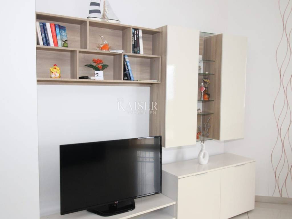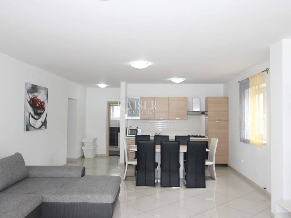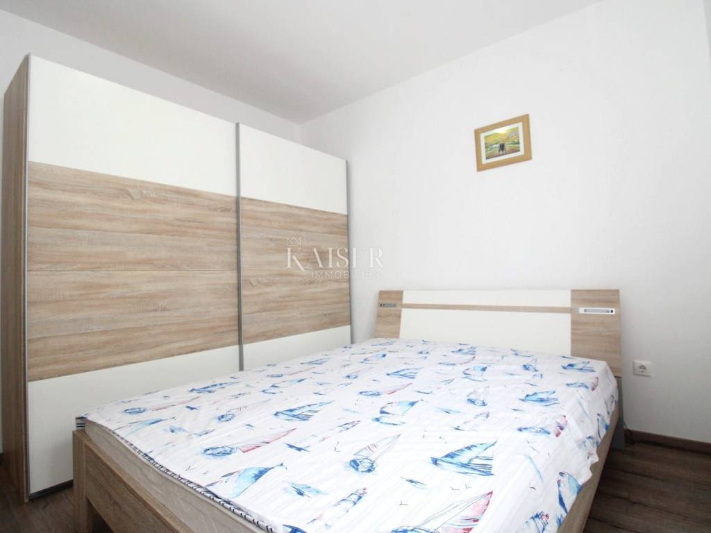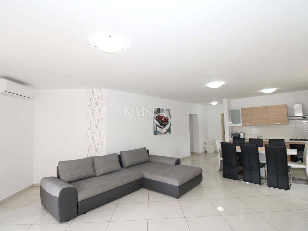 Vrbnik is one of the oldest places on the island of Krk. It is located on the eastern side of the island of Krk on a steep cliff at an altitude of about 50 meters. Vrbnik is a typical coastal town with small houses in narrow stone-paved streets. The most important economic branch in Vrbnik is agriculture, more precisely viticulture. Vrbnik has about 900 inhabitants in winter and about 2000 in summer, making it the right choice for those who do not want mass tourism but are looking for original Mediterranean charm. Kaiser Immobilien presents you a modern apartment of 93 m² located in a residential building with an enchanting view of the sea and the old center of Vrbnik. The apartment is located on the first floor and offers everything you need for a comfortable life. The apartment opens its doors to an entrance hall of 2.50 m², and then you enter a spacious living room that combines a kitchen, dining room and living room, with a total area of 45.94 m². From the living room you can go out to the loggia of 8.18 m², where you can enjoy a wonderful view of the sea and the historic Vrbnik, an ideal place to enjoy morning coffee or evening hours. The apartment has two bedrooms, one of which has its own exit to an additional loggia of 5.85 m², providing you with privacy and a quiet place to relax with a view of the sea. The modern bathroom, measuring 3.97 m², is equipped with a shower, toilet and washing machine. The special advantage of this apartment is its common garden, which is available to all tenants. There is an outdoor grill in the yard, ideal for outdoor gatherings, and at the owner's request, you can also use the tavern for larger gatherings. The apartment is equipped with air conditioning for heating and cooling, but there is also a chimney if you want to install a fireplace or central heating, since the connections are already prepared. One parking space is provided. The apartment is located in a quiet location, in a good neighborhood, and is only 650 m from the beach and 750 m from the center of Vrbnik. This apartment is ideal for those who want to enjoy a peaceful environment, beautiful views and proximity to all facilities. Also, this apartment represents an excellent investment opportunity for those who want to generate rental income during the summer season. The ideal location, proximity to the beach and attractive tourist destination Vrbnik make it extremely desirable for rent, providing the potential for a good return on investment. Proximity to amenities: center- 750 m Restaurant- 400 m Shop- 750 m Beach- 650 m Sights- 700 m Winery- 500 m Krk- 13 km Punat- 10 km Malinska- 17 km Baška- 18 km Airport- 25 km Distance to larger cities: Vrbnik- Ljubljana: 160 km Vrbnik- Vienna: 530 km Vrbnik- Budapest: 520 km Vrbnik- Prague: 860 km Vrbnik- Munich: 560 km Vrbnik- Zagreb: 180 km Agency commission for the buyer is 3% + VAT and is payable in the case of real estate purchase, at the conclusion of the first legal act. ID-CODE: 127-025 If you want to visit the property in person, please contact: Jennifer Hofmann E-mail: jennifer@kaiser-immobilien.hr Phone: +385-91-515-0887 http://kaiser-immobilien.hr/