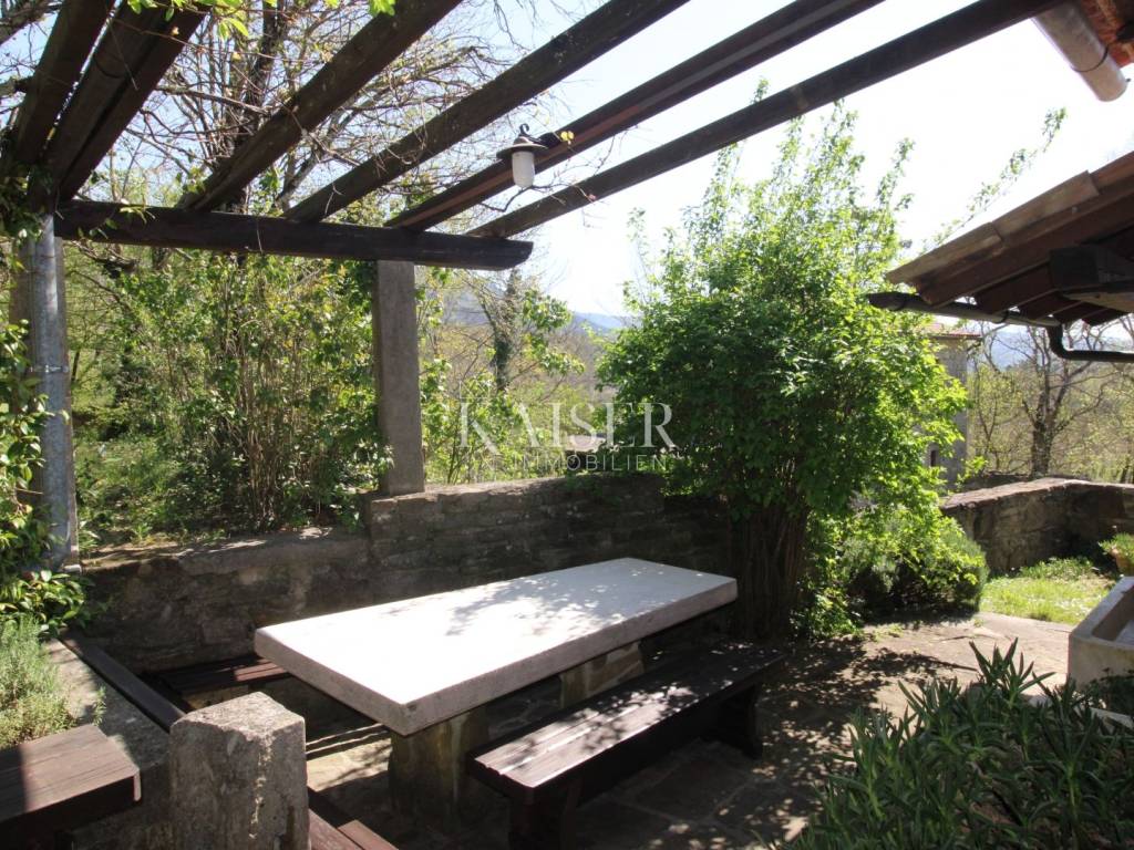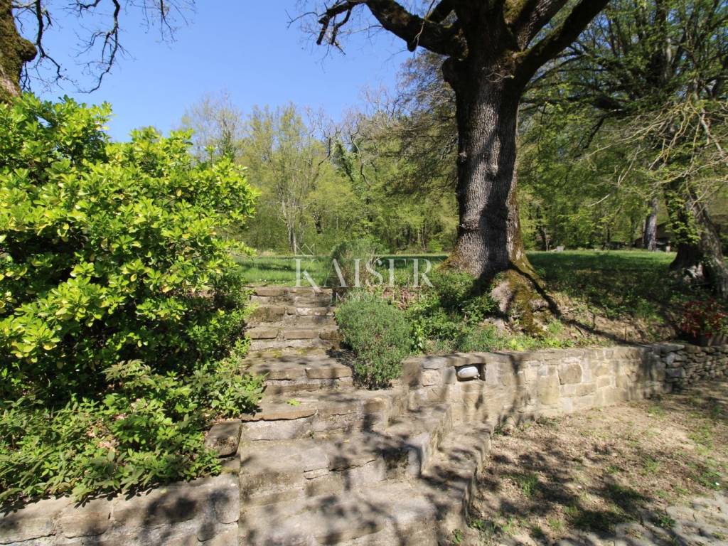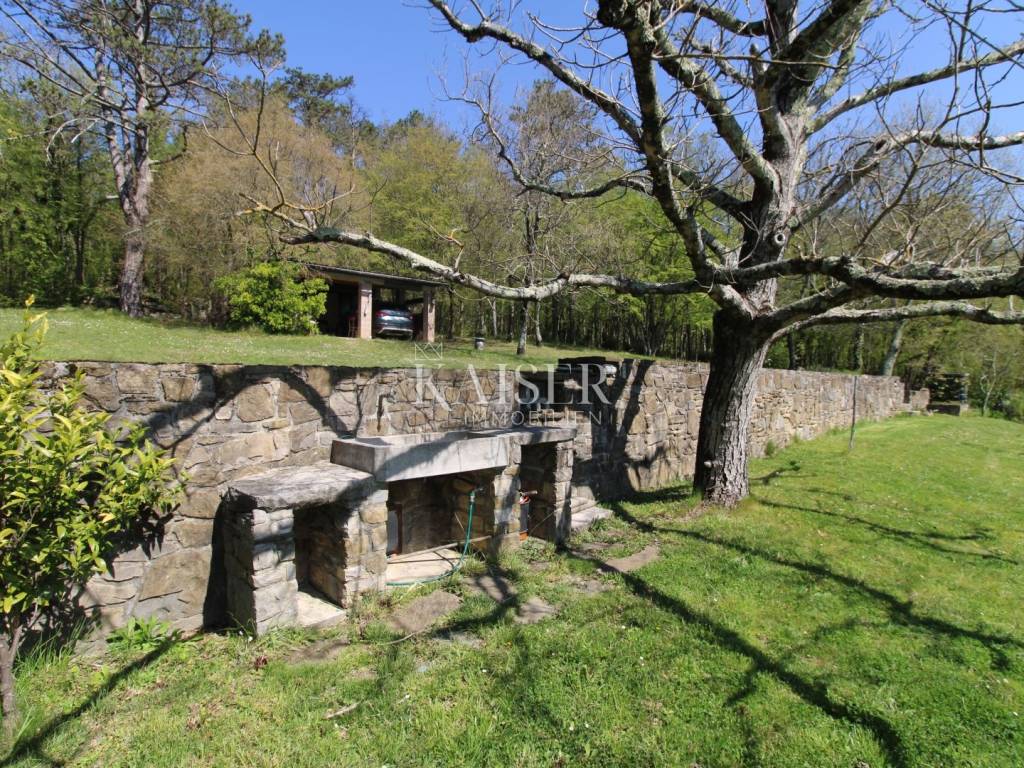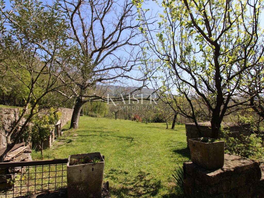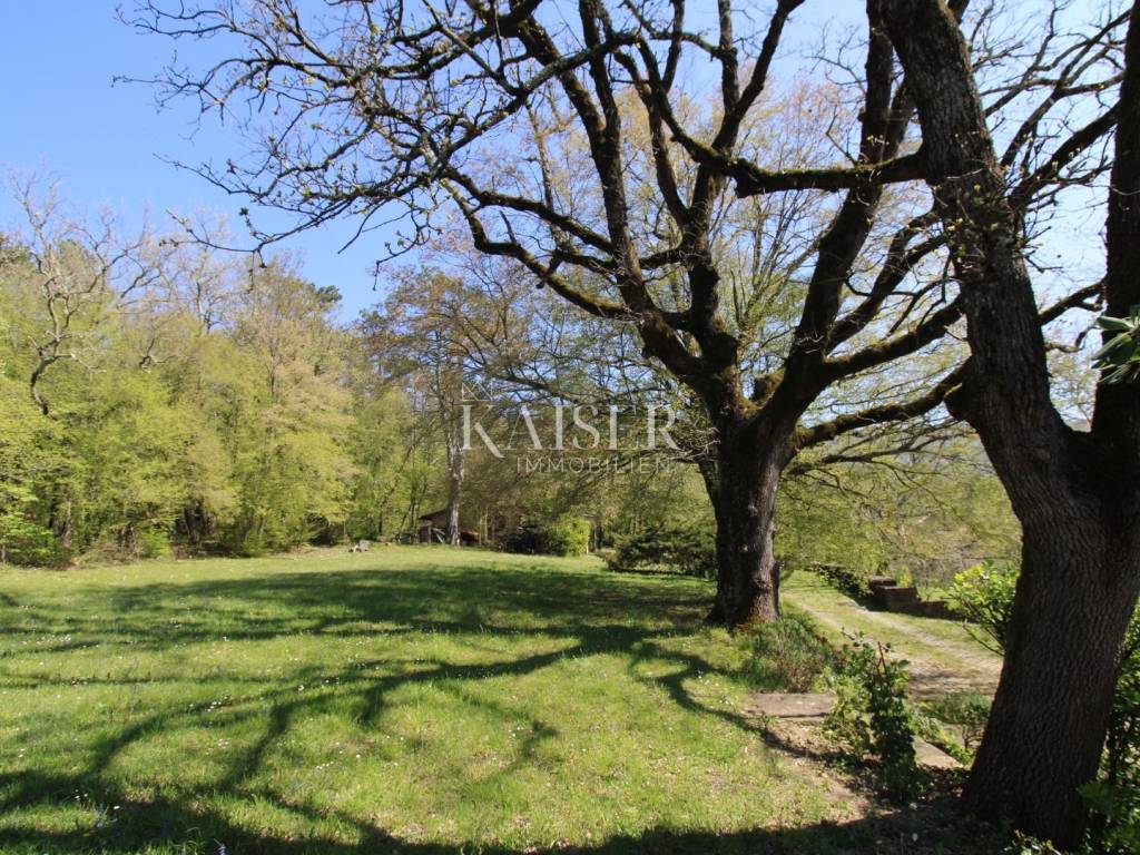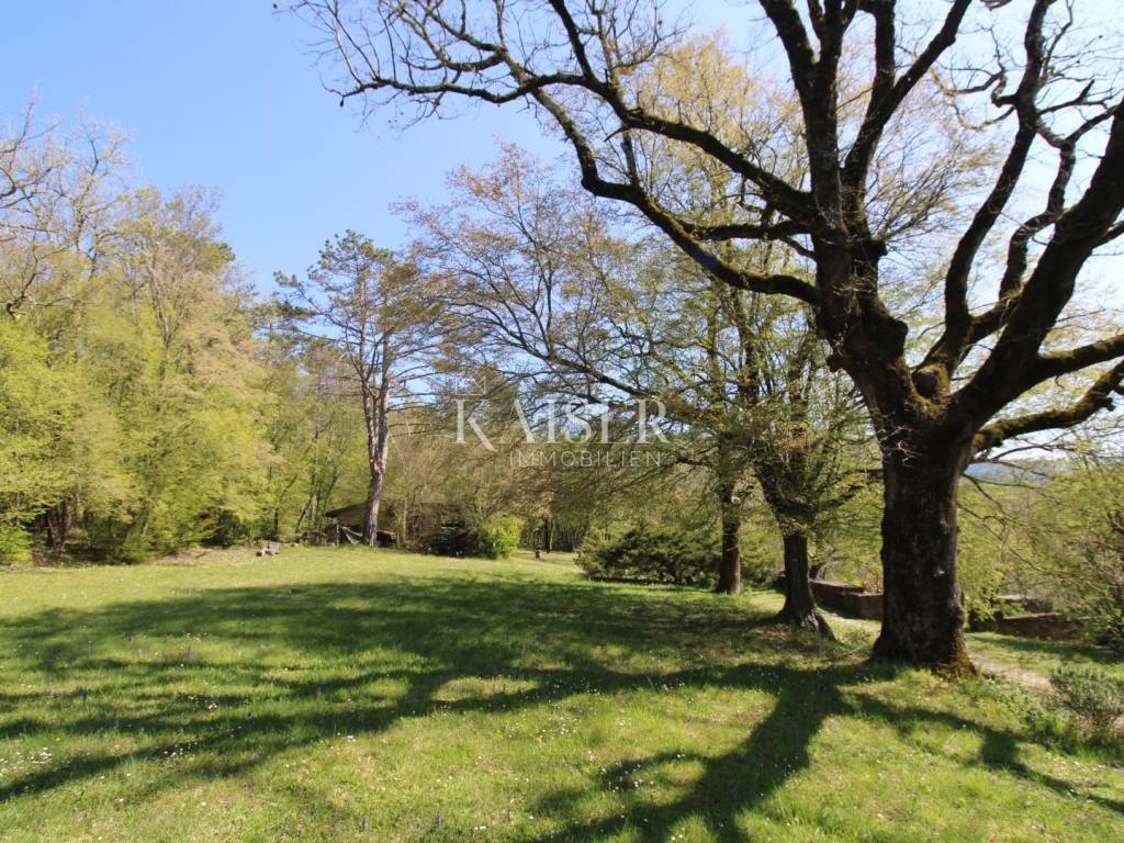 Kaiser Immobilien offers for sale a house with a beautiful large garden and an entire property measuring 20,000 m2. The house is located in the vicinity of Buzet, in a quiet and peaceful village, far from the city bustle and traffic. Oak forest, stone walls, green lawns, meadows and forest., are just some of the elements that adorn this beautiful property in a peaceful and quiet oasis. For nature lovers, this house is a true paradise on earth where only birdsong can be heard. The house has a total area of 86 m2, it was renovated in 2005. The house is heated with wood, has several parking spaces, and the access to the house is via an asphalt road. The house has two bedrooms, a bathroom, a kitchen, a living room and a space for groceries. Outside the house there is a beautiful terrace in the shade for real enjoyment and relaxation, with a sink and an outdoor kitchen. The concept of the house is a ground floor and a basement. The courtyard of the house is a special story, an oasis of peace and greenery. Beautiful century-old oak trees, beautifully landscaped surroundings, walkways and walls create an environment where peace and tranquility reign. The owners of this property take care of the garden and the entire property with care and love, and as they say, this house can always be used for family gatherings in a safe and spacious environment with lots of love and joy that it brings you. The property around the house extends over 20,000 m2, consisting of forests, arable land and meadows. The property is mostly agricultural but also contains a construction area of 600 m2. Everything is being sold as a set, together with the terraced house. Truffle lovers will find their place on this property, as white and black truffles can be harvested on the property. Distance from the property to the town: Buzet - Pula Airport, 85 km Buzet - Ljubljana, 120 km Buzet - Vienna, 561 km Buzet - Prague, 770 km Buzet - Munich, 521 km If you are looking for a property, please contact us with confidence at: phone: 00385923782803 email address: ivana@kaiser-immobilien.hr. Seller: Ivana Gašparini. The agency fee is 3% + VAT, and is charged with the first legal act.