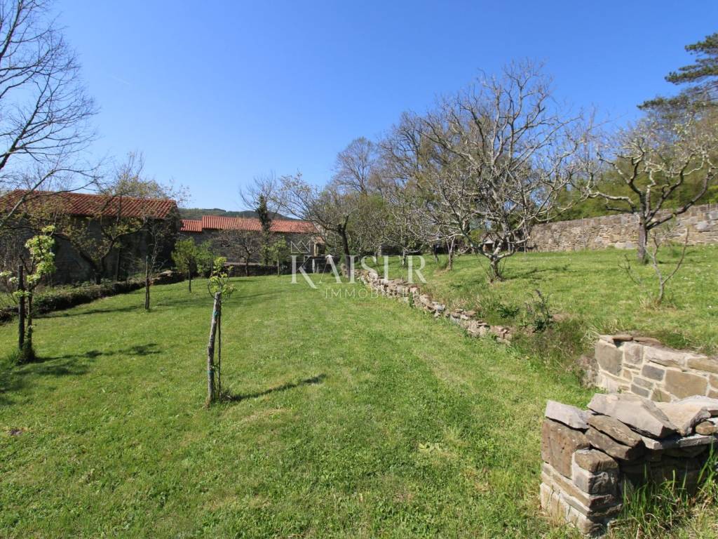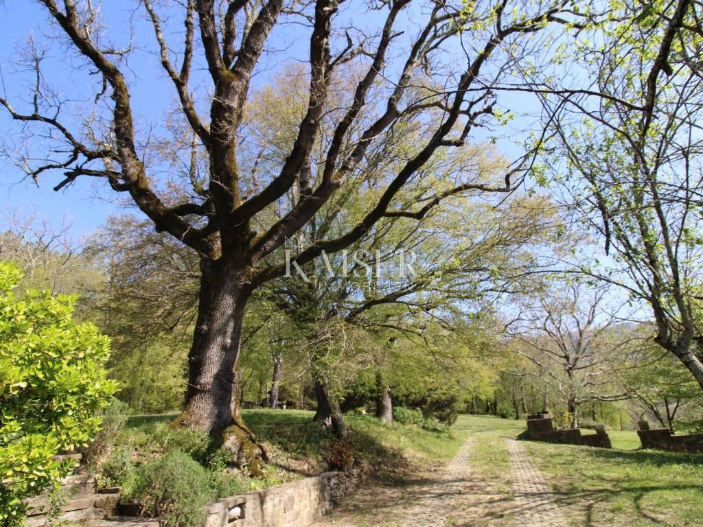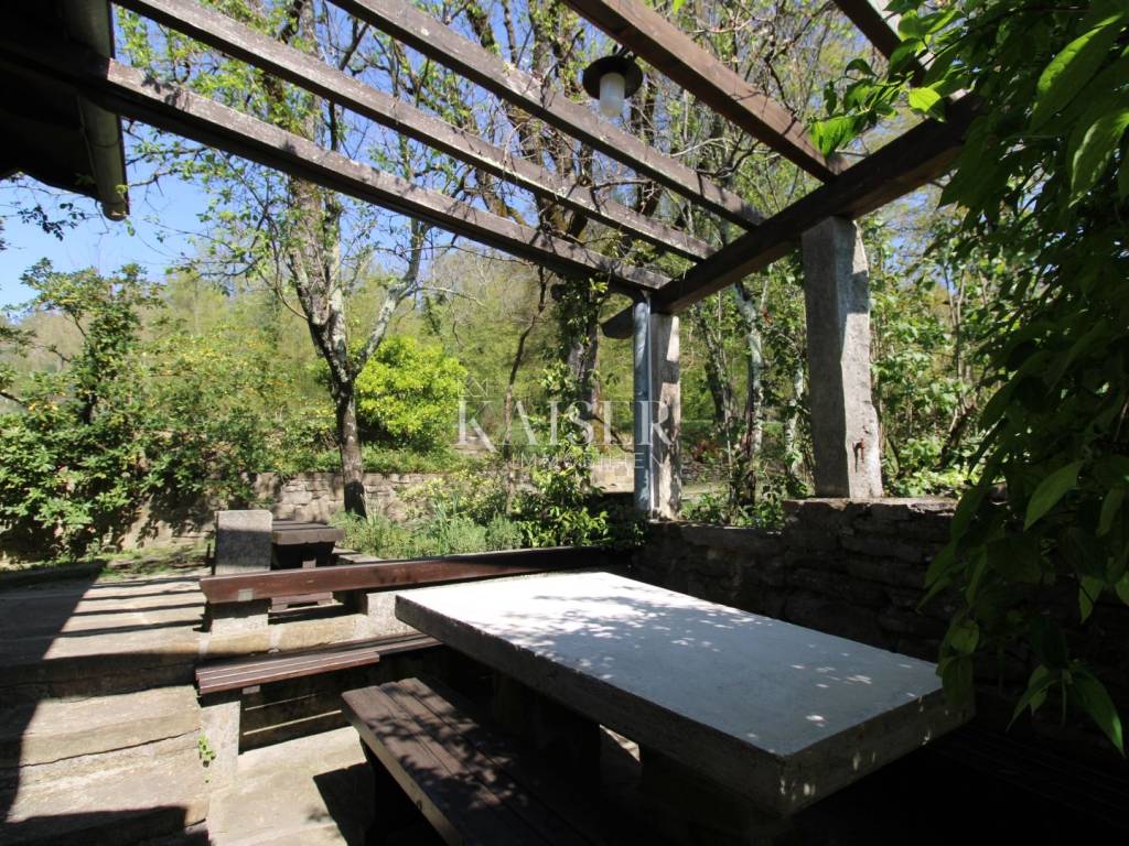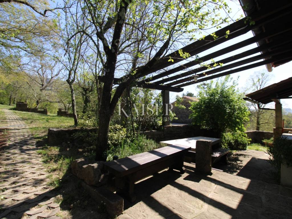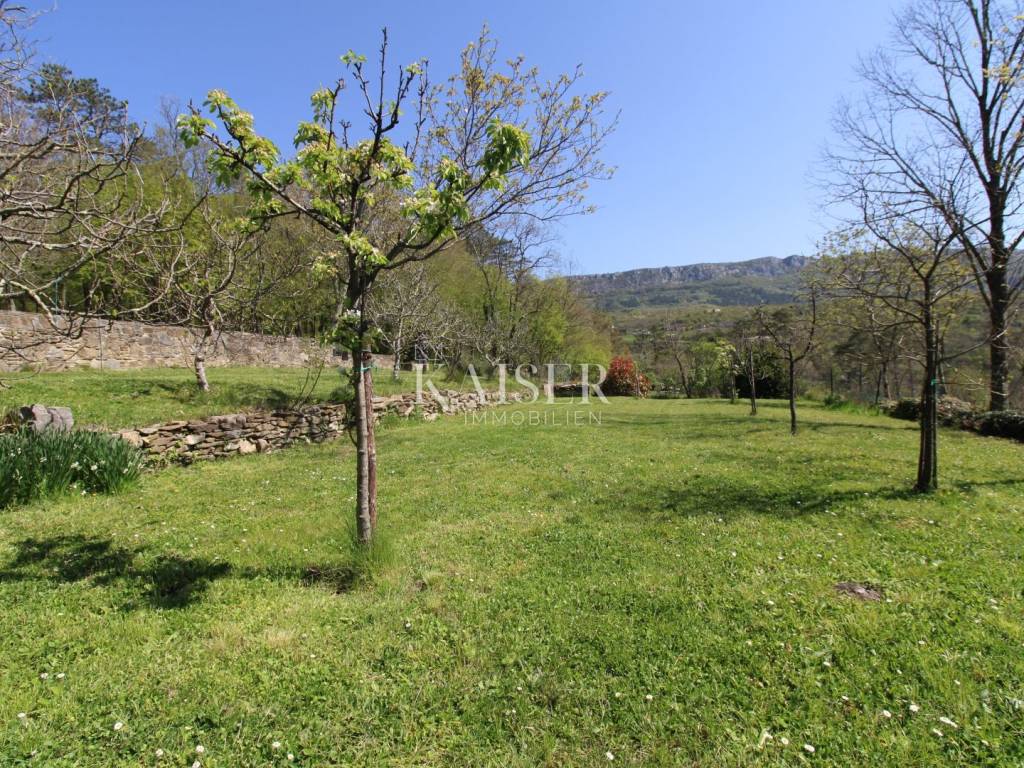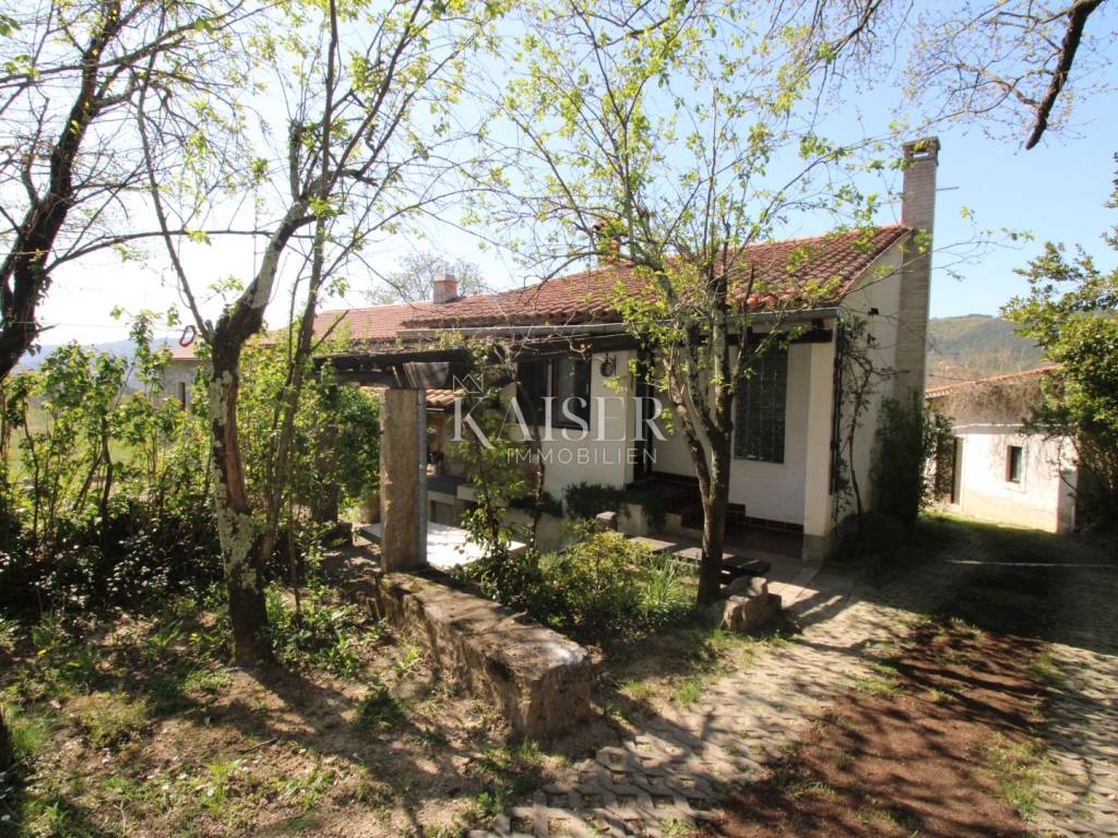 Kaiser Immobilien offers for sale a house with a beautiful large garden and an entire property measuring 20,000 m2. The house is located in the vicinity of Buzet, in a quiet and peaceful village, far from the city bustle and traffic. Oak forest, stone walls, green lawns, meadows and forest., are just some of the elements that adorn this beautiful property in a peaceful and quiet oasis. For nature lovers, this house is a true paradise on earth where only birdsong can be heard. The house has a total area of 86 m2, it was renovated in 2005. The house is heated with wood, has several parking spaces, and the access to the house is via an asphalt road. The house has two bedrooms, a bathroom, a kitchen, a living room and a space for groceries. Outside the house there is a beautiful terrace in the shade for real enjoyment and relaxation, with a sink and an outdoor kitchen. The concept of the house is a ground floor and a basement. The courtyard of the house is a special story, an oasis of peace and greenery. Beautiful century-old oak trees, beautifully landscaped surroundings, walkways and walls create an environment where peace and tranquility reign. The owners of this property take care of the garden and the entire property with care and love, and as they say, this house can always be used for family gatherings in a safe and spacious environment with lots of love and joy that it brings you. The property around the house extends over 20,000 m2, consisting of forests, arable land and meadows. The property is mostly agricultural but also contains a construction area of 600 m2. Everything is being sold as a set, together with the terraced house. Truffle lovers will find their place on this property, as white and black truffles can be harvested on the property. Distance from the property to the town: Buzet - Pula Airport, 85 km Buzet - Ljubljana, 120 km Buzet - Vienna, 561 km Buzet - Prague, 770 km Buzet - Munich, 521 km If you are looking for a property, please contact us with confidence at: phone: 00385923782803 email address: ivana@kaiser-immobilien.hr. Seller: Ivana Gašparini. The agency fee is 3% + VAT, and is charged with the first legal act.