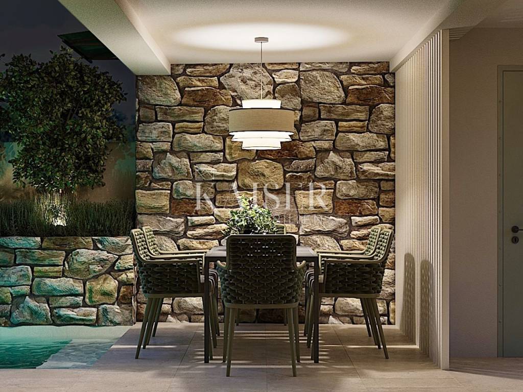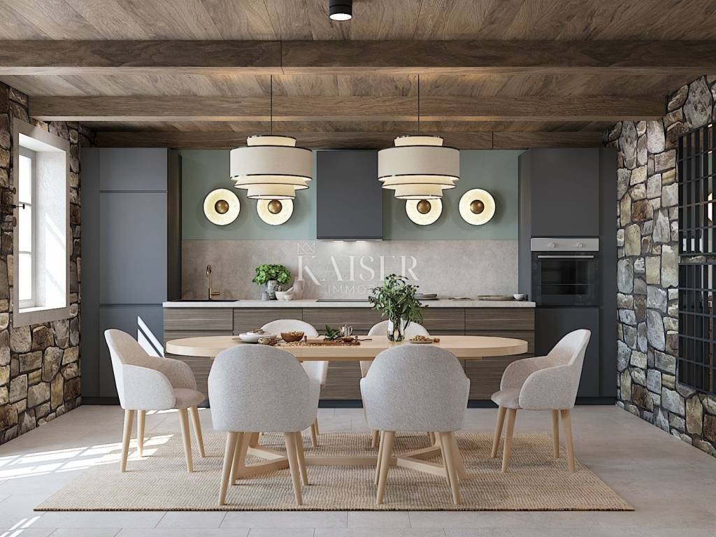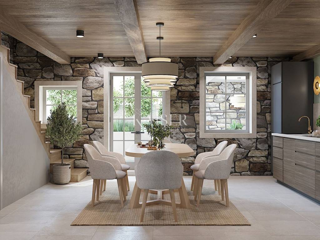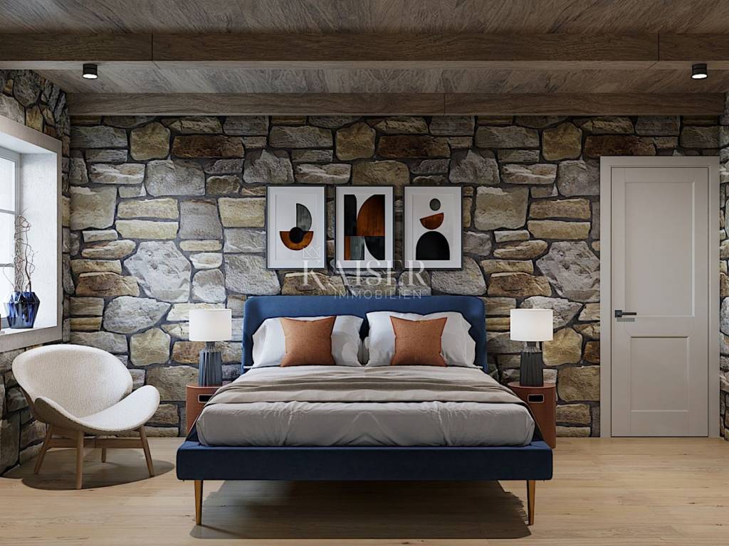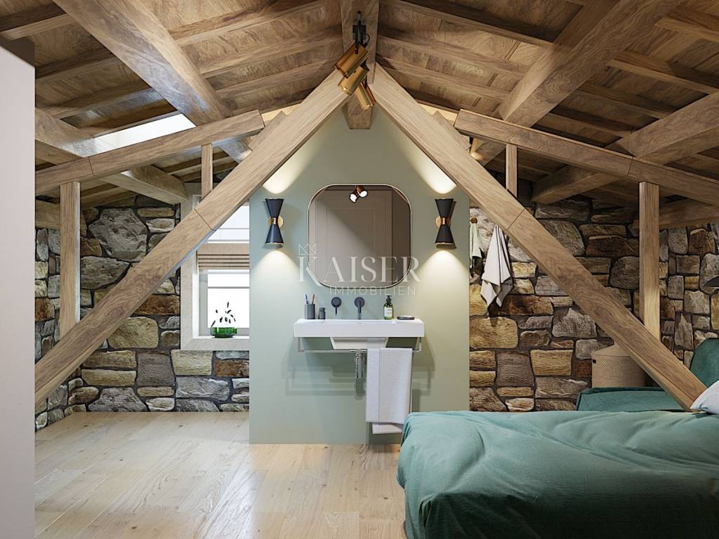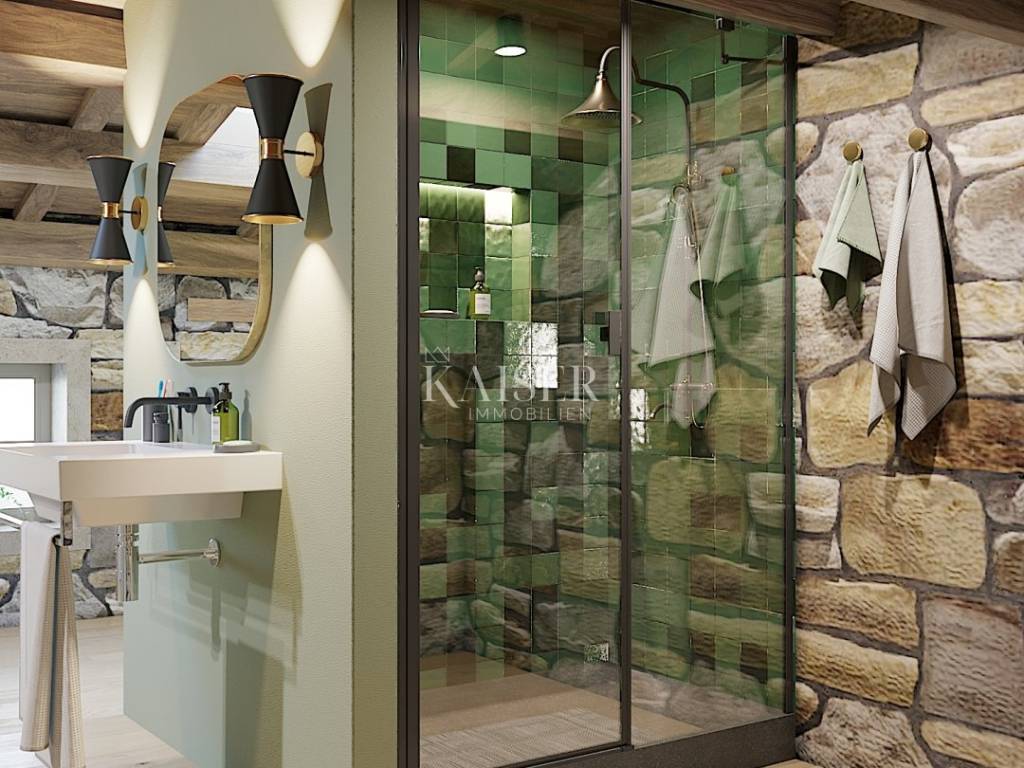 Located on the picturesque western coast of Istria, Poreč is one of the most famous and most visited Istrian towns. Its rich history, traces of which are visible in the impressive Euphrasian Basilica under UNESCO protection, intertwines with modern amenities, top-notch gastronomy, beautiful beaches and diverse cultural events. The city exudes Mediterranean charm, and thanks to its well-maintained infrastructure, natural beauty and safe community, Poreč is the perfect place to live, vacation or invest in real estate. Discover with Kaiser Immobilien a unique opportunity to become the owner of a superbly renovated stone villa that embodies the spirit of traditional architecture, while offering all the amenities of modern luxury. Situated on a plot of 153 m², this charming property with a total area of 183 m² has been carefully reconstructed with the aim of preserving the authenticity of the original stone house, while introducing the most modern amenities that meet the highest standards of living. The completion of the works is planned for 2025, and the future owner will have the opportunity to enjoy the ideal combination of rustic elegance and functional comfort. The property extends over several floors, and each floor has been thoughtfully designed to provide maximum comfort and privacy. On the lower floor, i.e. the basement of 9 m², the construction of a wine cellar is planned - the perfect place for collectors and wine lovers, which can be arranged according to personal wishes. The ground floor, which represents the main living space, includes a bright living room of 22.40 m² with an electric fireplace that gives the space additional warmth and atmosphere, a separate kitchen with a dining area of 27.20 m² and a guest toilet of 1.2 m². The space is covered with underfloor heating using a heat pump, and additional comfort throughout the year is provided by Haier air conditioners installed in all rooms. An internal staircase (6.2 m²) leads to the first floor, where there are two spacious bedrooms, each with its own bathroom. The first bedroom, measuring 14.50 m², has a private bathroom (3.3 m²) and its own dressing room (3.70 m²), while the second, slightly more spacious room, measuring 17.50 m², includes a 6.90 m² bathroom and access to a 15.80 m² covered terrace – an ideal place for morning coffee or evening relaxation in the fresh air. The top floor, the high attic, is reserved for two additional extremely spacious bedrooms, each measuring 22 m², which also have their own bathrooms. On the same floor, there is an additional storage room of 2.90 m², suitable for storing bedding or household items. A special value for this property is given by a private saltwater pool with a large 61.20 m² sun terrace, as well as a 2.6 m² sauna, which allows for a complete relaxation experience in your own home. There is also a practical laundry room of 2.80 m² and a technical room of 3.80 m². The exterior of the villa is just as impressive as the interior – the garden and terrace are paved with indigenous Istrian stone, while the exterior joinery is made of wood with double-layered glass, which further emphasizes the harmony between traditional design and modern quality. The courtyard is surrounded by a stone wall that guarantees privacy, and the rich vegetation serves as a natural hedge that contributes to the peace and intimacy of the stay. The property has one private parking space, and thanks to the quiet location, it is possible to find additional space for parking another vehicle in the immediate vicinity. The villa is being sold partially furnished, including a fully equipped kitchen, decorated bathrooms and a guest toilet, while future owners have the option, for an additional fee of €55,000, to choose the option of complete designer equipment according to the visualizations shown. For all those looking for a combination of luxury, comfort and authentic tradition, this villa in one of the most sought-after locations in Poreč represents a dream home – an elegant haven for hedonists and true lovers of the Istrian way of life. Proximity to amenities: Poreč, center - 13 km Restaurant - 350 m Cafe - 70 m Shop - 70 m Wine shop - 80 m Sea - 6 km Post office - 850 m Primary school - 750 m Bus station - 800 m Airport - 50 km Distance to larger cities: Poreč - Ljubljana: 154 km Poreč - Vienna: 531 km Poreč - Budapest: 605 km Poreč - Prague: 803 km Poreč - Munich: 494 km Poreč - Zagreb: 263 km The agency commission for the buyer is 3% + VAT and is paid in the case of purchasing a property, upon conclusion of the first legal act. Interested buyers can view only with the prior signing of a real estate brokerage contract. ID-CODE: 127-125 If you would like to visit the property in person, please contact: Jennifer Hofmann E-mail: jennifer@kaiser-immobilien.hr Tel: +385-91-515-0887 http://kaiser-immobilien.hr/