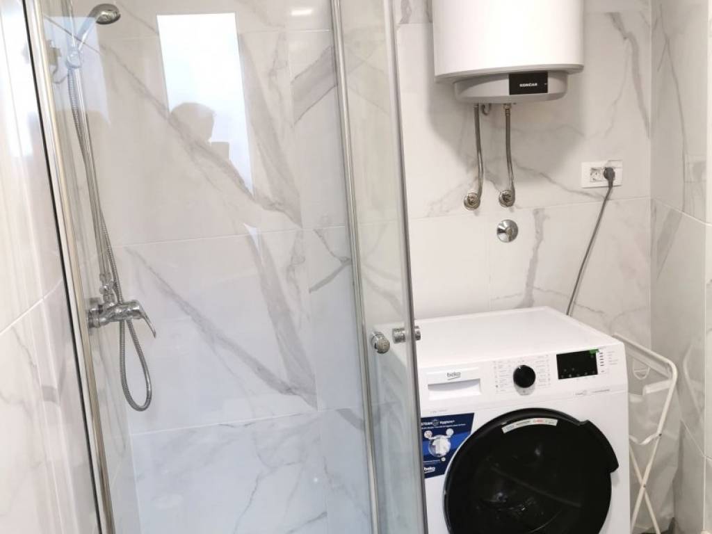 The layout includes a modernly equipped kitchen, living room, bathroom with shower, and two bedrooms. The property underwent a complete renovation in 2022, including new PVC windows, electrical and water installations, floors, walls, and all interior elements. It is sold fully furnished, allowing immediate occupancy or continued rental.