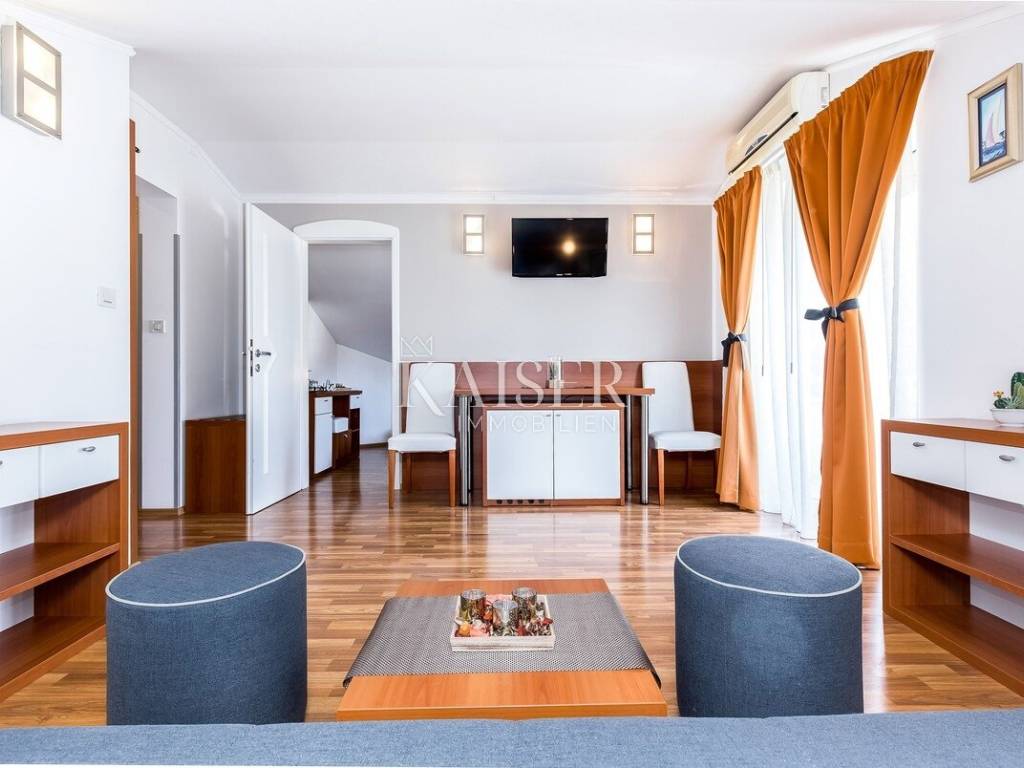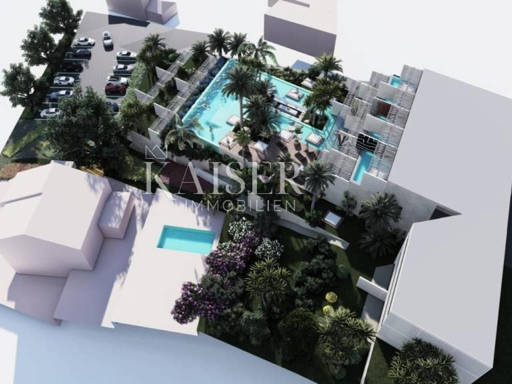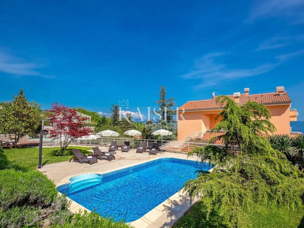 Opatija real estate agency Kaiser Immobilien selects from its offer an exclusive apartment villa with vast facilities and a huge building plot, for which a project is being developed for a unique modern boutique hotel with its own restaurant, swimming pool, parking lot, etc.