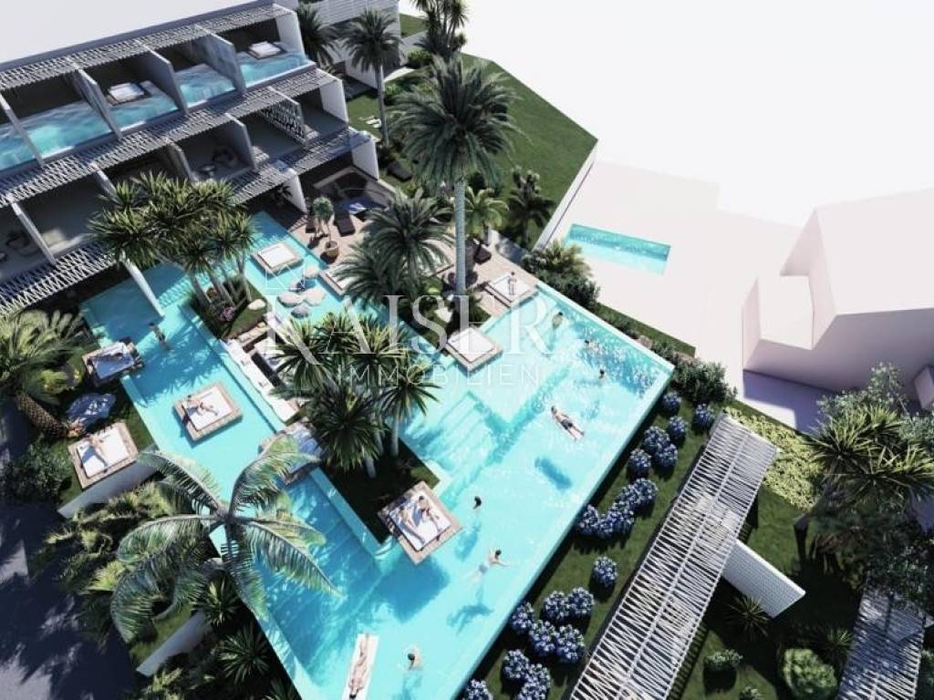 The second part of the property is a large building plot with a total area of over 4,500 m2 with a project for a modern boutique hotel, which will have its own driveway with a roundabout and parking lot, a beautiful large swimming pool, a restaurant and all facilities meeting the requirements and trends of 21st century tourism.