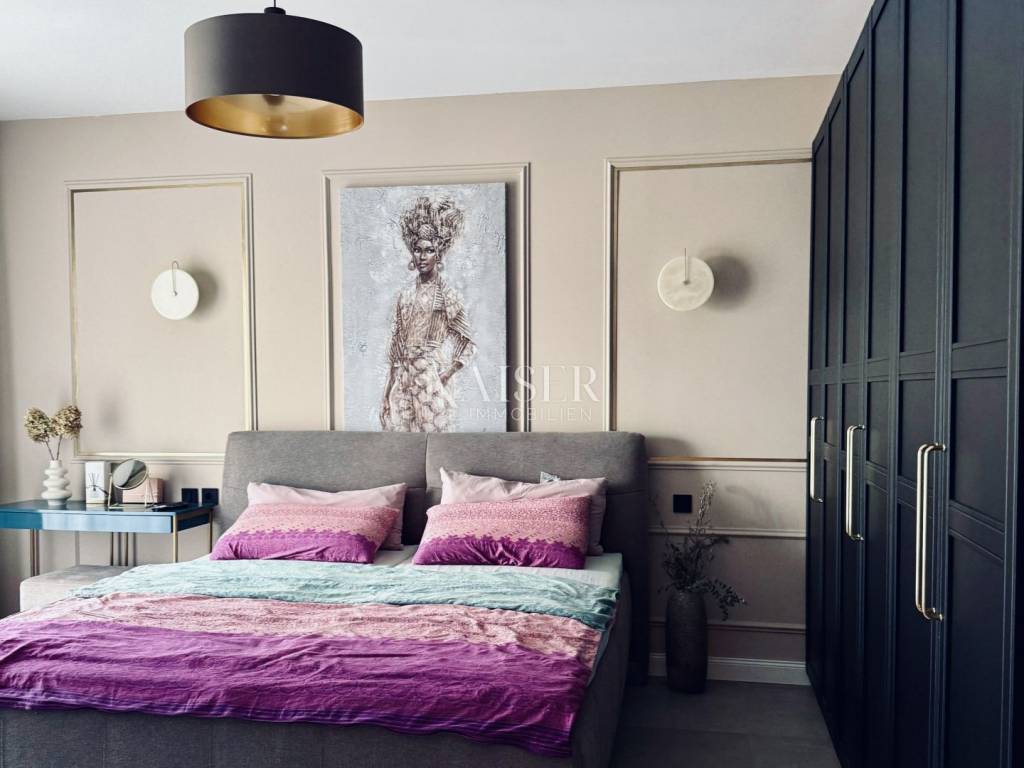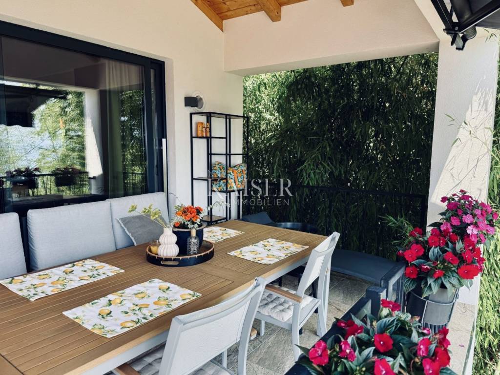 Both bedrooms have access to the aforementioned third terrace, which is again equipped with a pergola and lounge seating.