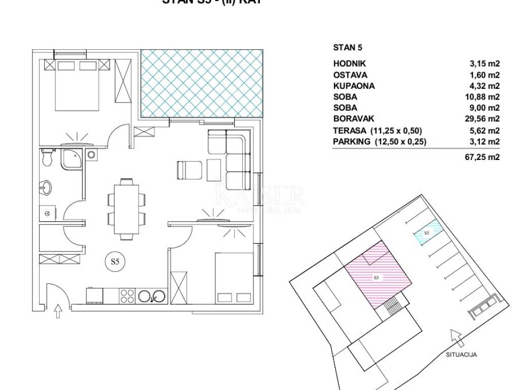 For sale is an attractive two-bedroom apartment on the second floor of a newer, well-built building with only 9 apartments, located in a prime location in the town of Pag - just 70 meters from the sea and 200 meters from the town center and sandy beaches. Located in a quiet part of town, the apartment offers the perfect balance between privacy and proximity to all amenities. Pag is known for its centuries-old lacemaking tradition, clear sea, rich gastronomic offer (the famous Pag cheese and lamb), but also its growing popularity as a destination for vacation and family life. The apartment is located on the second floor of a small residential building under construction with planned occupancy in the fall of 2025 and consists of a total of nine apartments consisting of an entrance hall, two bedrooms, a bathroom with underfloor heating, a utility room, a spacious living room connected to the kitchen and dining room, and a covered terrace with a beautiful panoramic view of the sea and the town of Pag. The building was built with an emphasis on quality, and the apartment is equipped with three-layer PVC joinery in anthracite color with built-in electric shutters, which ensures good thermal and sound insulation and an additional level of comfort and security. Each room has its own air conditioning unit, which allows for individual temperature control and high energy efficiency. The bathroom is equipped with underfloor heating, and a chimney is routed through the apartment, which allows for the installation of a stove or fireplace according to the future owner's wishes. The apartment comes with one designated parking space, with the possibility of installing a charging station for electric vehicles, which further increases the value and functionality of the property. The floor plan of the apartment with the areas is under the pictures. An apartment with an identical floor plan and price is also located on the first floor, and the same is also for sale. The town of Pag offers everything you need for a comfortable life and a relaxing holiday: restaurants, shops, cultural heritage, seaside promenades and the clear Adriatic Sea. The apartment is located in an attractive and sought-after location, which makes it an excellent investment. The agency commission for the buyer is 3% + VAT and is paid in the case of purchasing a property, upon conclusion of the first legal act. Contact us with confidence for more information and to arrange a viewing. Tel: +385915404646 Email: vedran@kaiser-immobilien.hr