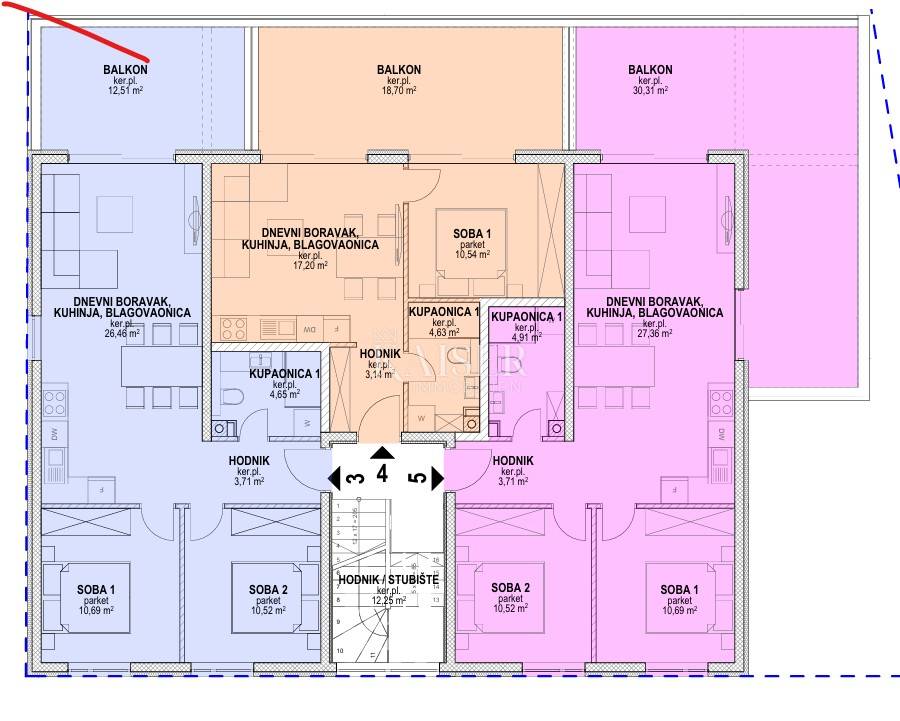 NEW BUILDING IN POVLJANA – MODERN APARTMENTS 180 m FROM THE SEA Building under construction | Planned move-in: summer 2026. We present you apartments in a quality new building located in an attractive location in Povljana on the island of Pag – only 180 meters from the sea and 300 meters from the town center! The building is located in a quiet street, surrounded by all the necessary amenities for a pleasant life or vacation. Povljana is a quiet coastal town located in the southern part of the island of Pag, known for its beautiful beaches, crystal clear sea and family atmosphere. Near the building there are shops, restaurants, cafes, promenades, a pharmacy, tennis courts and numerous other amenities. Excellent transport connections allow for quick arrival from Zadar and Zemunik airport. The project has been carefully designed so that all apartments have a sea view, while the duplex apartments on the top floor additionally offer an impressive panoramic view from the spacious terraces on the gallery – perfect for enjoying sunsets and the Mediterranean atmosphere. AVAILABLE APARTMENTS: GROUND FLOOR: S2 | 98.76 m² | €312,800 3 bedrooms, 2 bathrooms, terrace, private garden, parking space 1ST FLOOR: S3 | 68.81 m² | €224,400 2 bedrooms, bathroom, hallway, living room + kitchen + dining room, balcony, parking space S4 | 54.21 m² | €163,200 1 bedroom, balcony with sea view, parking space S5 | 87.77 m² | €255,000 2 bedrooms, balcony with sea view, parking space 2ND FLOOR – Duplex apartments with panoramic views: S6 | 127.61 m² | €414,800 3 bedrooms, 2 bathrooms + WC, balcony + large terrace on the gallery with panoramic sea view Free parking space S8 | 145.41 m² | €459,000 3 bedrooms, 2 bathrooms + toilet, balcony + spacious terrace on the gallery with panoramic sea views Free parking space FLOOR PLANS OF THE APARTMENTS ARE AVAILABLE AMONG THE PICTURES. EQUIPMENT AND CONSTRUCTION: Reinforced concrete structure 10 cm of thermal insulation - energy efficiency Top-quality ceramics and sanitary ware ALU and PVC joinery with electric shutters and built-in mosquito nets Burglar and fire-resistant doors Glass railings on the balconies Full air conditioning (cooling and heating) SAT/TV connections in all rooms Courtyard enclosed by stone walls From the offer we highlight apartment S3, which is located on the first floor and is marked in blue on the floor plan. It consists of two hallways, two bedrooms, two bathrooms and a spacious living room with kitchen and dining room, which together occupy 26.46 m². The living room opens onto a 12.51 m² balcony with a beautiful view of the sea. The first bedroom is 10.69 m², the second is 10.52 m², and one of the bathrooms is 4.85 m². The hallway is 3.71 m². The total usable area of the apartment is 68.81 m², and one parking space is included in the price.