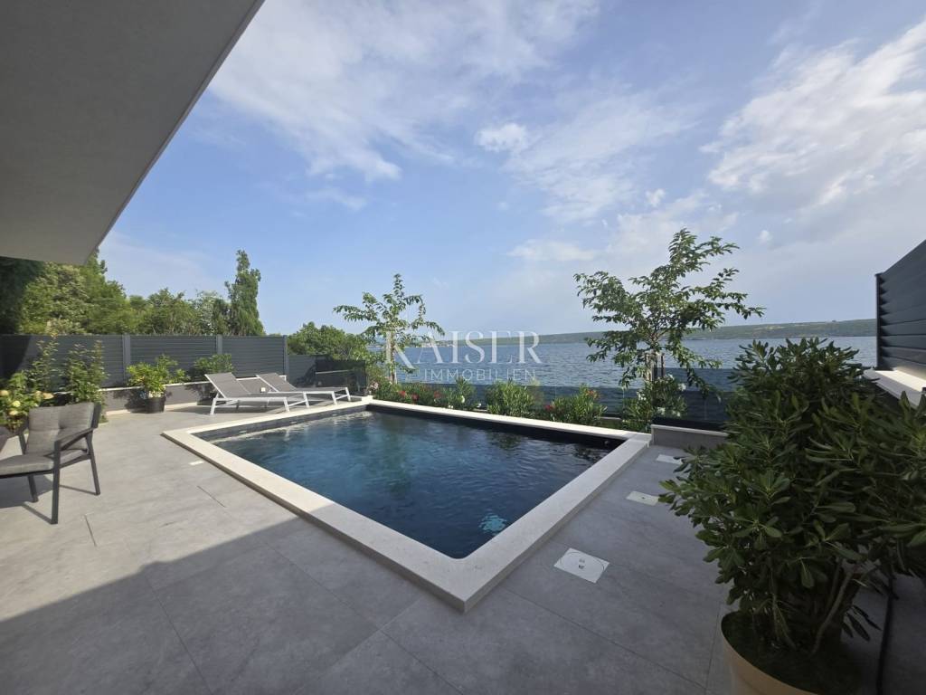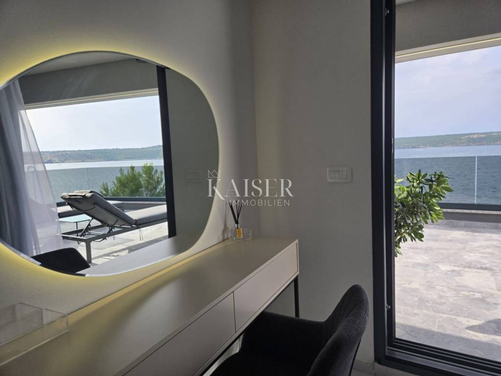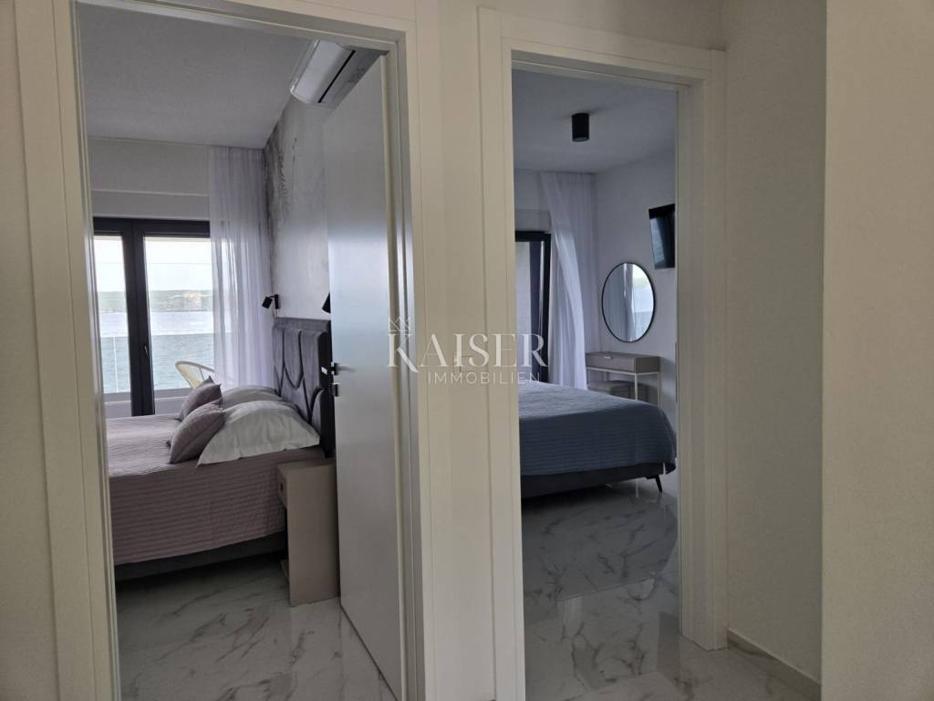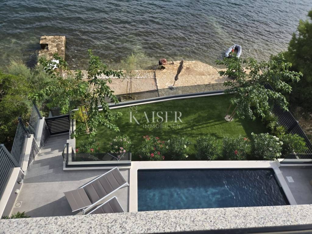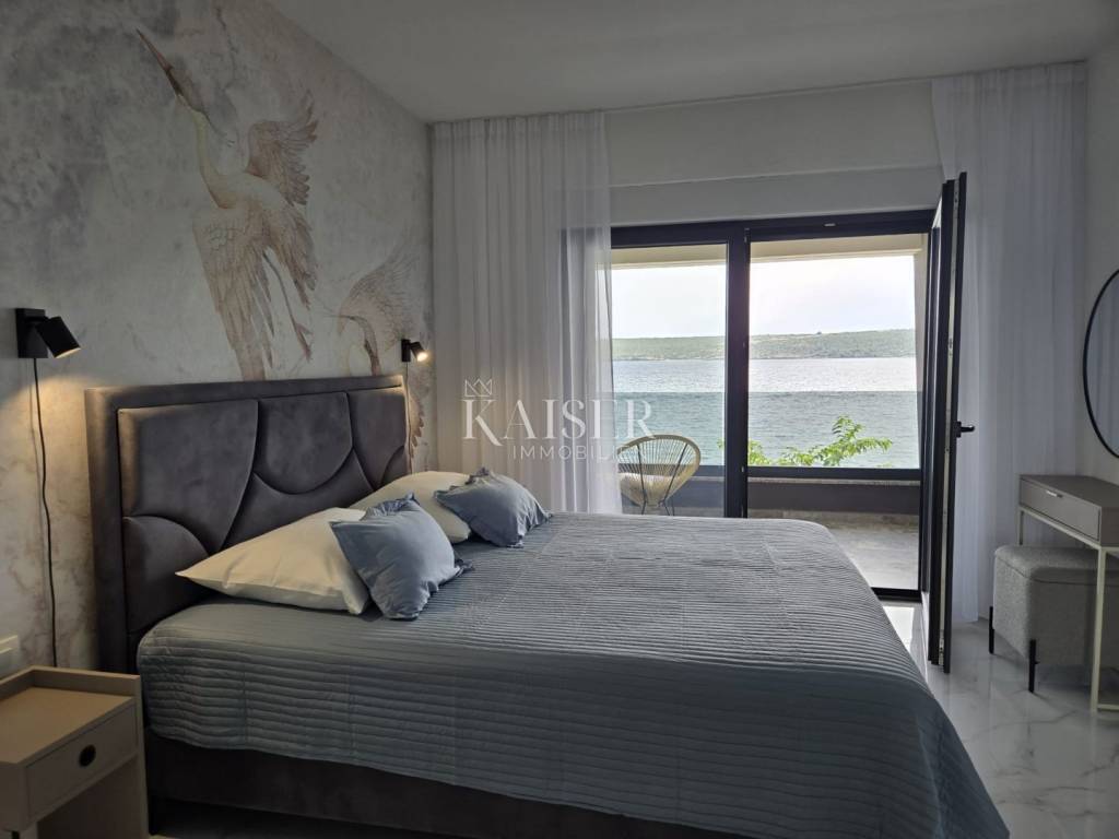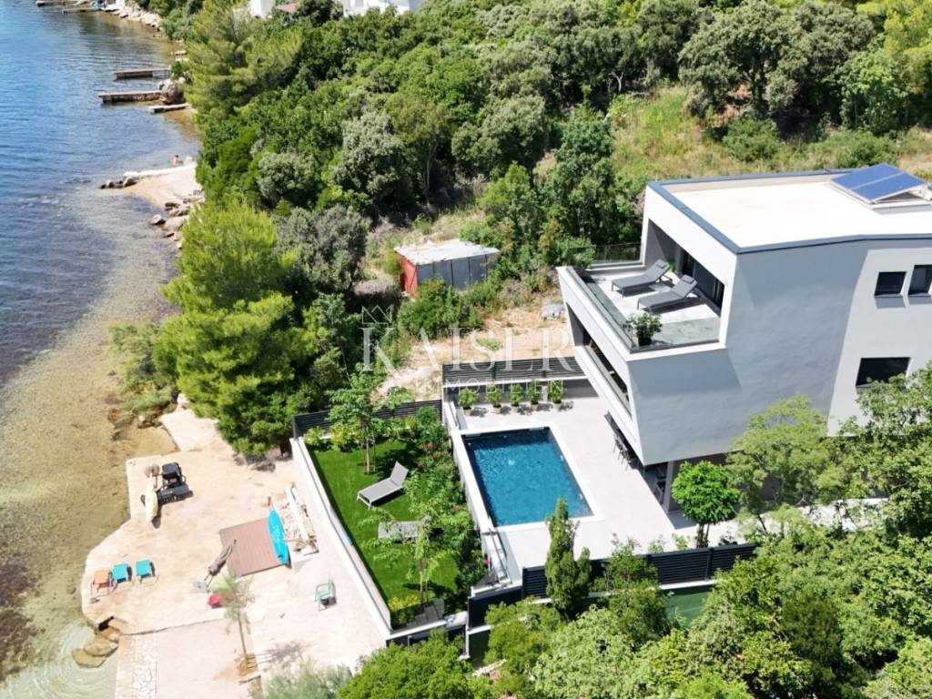 Kaiser Immobilien proudly presents this unique villa located on the shores of the Posedarje Sea, a place where comfort and luxury merge with the natural beauty of the Dalmatian coast. In the quiet bay of Posedarje, there is a modern villa that perfectly combines luxury, functionality and the natural beauty of the Dalmatian coast. This place exudes silence and tranquility, and the sea is literally part of your daily view - from the house to the sea you are only a few stone steps away, while the property is located right next to the sea line. The villa is located in an intimate micro-location, far from the city noise, but close enough to all amenities. Access to the house is provided by an asphalt road that leads to a private parking lot. From the parking lot, a staircase descends to the paved area around the house, which has been carefully arranged to provide complete peace and privacy. The entire environment of the villa is enriched with Mediterranean plants, oleanders and ornamental trees that not only create a fragrant oasis, but also further emphasize the natural harmony with the surroundings. From the main entrance towards the sea, there is an outdoor area for socializing and dining outdoors, with a large table, right next to the 6 x 4 meter swimming pool. The pool is surrounded by a sunbathing area, and below it there is a small lawn with a breathtaking view. A few steps down and you are already on the beach – a real rarity, even among the most exclusive seaside properties. On the ground floor of the villa there is a modernly equipped kitchen, dining room and living room with access to the outdoor area. There is also an additional small guest toilet. To the right of the main entrance is an additional room that the future owner can arrange according to their own wishes – as a private studio, home gym, office or guest apartment. An internal staircase leads to the first floor where there are two spacious bedrooms, each with its own bathroom and access to a large shared terrace overlooking the sea and Posedarje Bay. On the second floor there is a luxurious master suite – a large bedroom with its own bathroom and private terrace, perfect for relaxing and enjoying the panoramic view. The villa is equipped with five air conditioners (with one external unit), underfloor heating in the bathrooms and a small guest toilet, and solar panels on the roof that provide sanitary water heating. Every detail has been carefully designed to combine modern comfort with the natural ambiance that dominates the surroundings. It is located in a quiet part of Posedarje, in a location that offers privacy, but also quick access to all amenities - shops, restaurants, a local market and promenades are located approximately 2 kilometers away. Posedarje is known for its exceptionally clear sea, fishing and olive growing tradition, and excellent transport connections with the rest of Croatia and the region. The property is only a few minutes away from the A1 motorway exit, which makes it easily accessible in all seasons. This villa is not just a house by the sea - it is an opportunity for a completely new lifestyle. Whether you are looking for a luxurious family residence, a peaceful holiday retreat or an investment with high tourist potential, this is a place that will win you over at first sight. A villa that breathes space, light and sea, where the day begins with a breathtaking view. A real rarity on the market - a property for those who know how to recognize the value of location, peace and unforgettable views. Significant distances: A1 motorway (exit Posedarje): 5 minutes (approx. 3 km) Zadar Airport (Zemunik): 25 minutes City of Zadar: 25 km Paklenica National Park: 30 minutes Krka National Park: 1 hour Plitvice Lakes National Park: 1 h 30 min Kornati National Park (boat access from Zadar): 40 minutes Velebit Nature Park: 40 minutes Telašćica Nature Park: 1 hour by boat Zagreb: approx. 2 h 30 min Vienna (Vienna): approx. 6 h Budapest (Budapest): approx. 6 h Munich: approx. 7 h The agency commission for the buyer is 3% + VAT. The commission covers all services related to the purchase and is paid only in the case of purchasing a property, upon conclusion of the first legal act. For more detailed information, please contact: Ivana Skoblar Tel: +385 98 973 11 54 E-mail: ivana.skoblar@kaiser-immobilien.hr Property code: 136-25