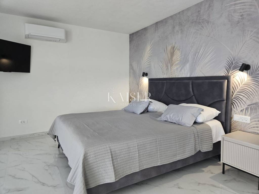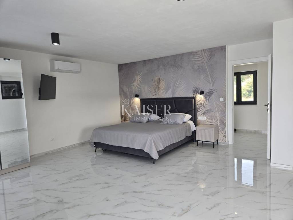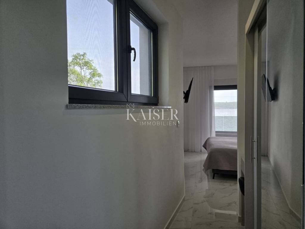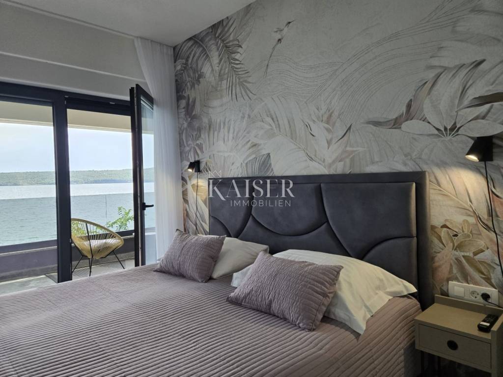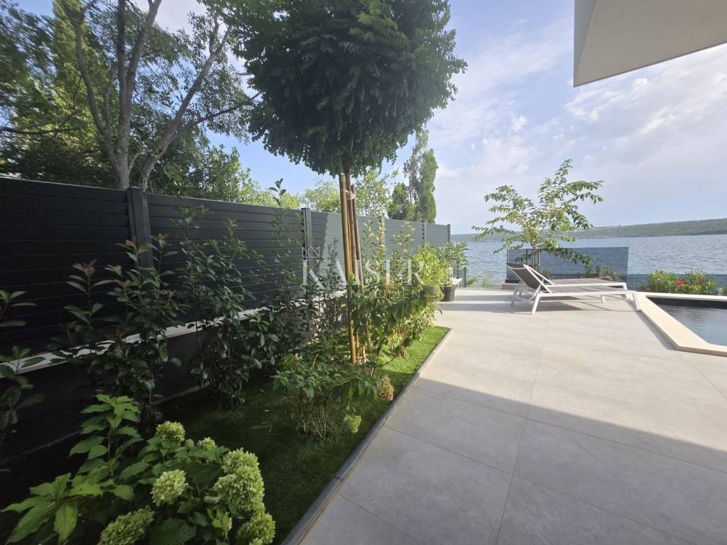 Kaiser Immobilien proudly presents this unique villa located on the shores of the Posedarje Sea, a place where comfort and luxury merge with the natural beauty of the Dalmatian coast. In the quiet bay of Posedarje, there is a modern villa that perfectly combines luxury, functionality and the natural beauty of the Dalmatian coast. This place exudes silence and tranquility, and the sea is literally part of your daily view - from the house to the sea you are only a few stone steps away, while the property is located right next to the sea line. The villa is located in an intimate micro-location, far from the city noise, but close enough to all amenities. Access to the house is provided by an asphalt road that leads to a private parking lot. From the parking lot, a staircase descends to the paved area around the house, which has been carefully arranged to provide complete peace and privacy. The entire environment of the villa is enriched with Mediterranean plants, oleanders and ornamental trees that not only create a fragrant oasis, but also further emphasize the natural harmony with the surroundings. From the main entrance towards the sea, there is an outdoor area for socializing and dining outdoors, with a large table, right next to the 6 x 4 meter swimming pool. The pool is surrounded by a sunbathing area, and below it there is a small lawn with a breathtaking view. A few steps down and you are already on the beach – a real rarity, even among the most exclusive seaside properties. On the ground floor of the villa there is a modernly equipped kitchen, dining room and living room with access to the outdoor area. There is also an additional small guest toilet. To the right of the main entrance is an additional room that the future owner can arrange according to their own wishes – as a private studio, home gym, office or guest apartment. An internal staircase leads to the first floor where there are two spacious bedrooms, each with its own bathroom and access to a large shared terrace overlooking the sea and Posedarje Bay. On the second floor there is a luxurious master suite – a large bedroom with its own bathroom and private terrace, perfect for relaxing and enjoying the panoramic view. The villa is equipped with five air conditioners (with one external unit), underfloor heating in the bathrooms and a small guest toilet, and solar panels on the roof that provide sanitary water heating. Every detail has been carefully designed to combine modern comfort with the natural ambiance that dominates the surroundings. It is located in a quiet part of Posedarje, in a location that offers privacy, but also quick access to all amenities - shops, restaurants, a local market and promenades are located approximately 2 kilometers away. Posedarje is known for its exceptionally clear sea, fishing and olive growing tradition, and excellent transport connections with the rest of Croatia and the region. The property is only a few minutes away from the A1 motorway exit, which makes it easily accessible in all seasons. This villa is not just a house by the sea - it is an opportunity for a completely new lifestyle. Whether you are looking for a luxurious family residence, a peaceful holiday retreat or an investment with high tourist potential, this is a place that will win you over at first sight. A villa that breathes space, light and sea, where the day begins with a breathtaking view. A real rarity on the market - a property for those who know how to recognize the value of location, peace and unforgettable views. Significant distances: A1 motorway (exit Posedarje): 5 minutes (approx. 3 km) Zadar Airport (Zemunik): 25 minutes City of Zadar: 25 km Paklenica National Park: 30 minutes Krka National Park: 1 hour Plitvice Lakes National Park: 1 h 30 min Kornati National Park (boat access from Zadar): 40 minutes Velebit Nature Park: 40 minutes Telašćica Nature Park: 1 hour by boat Zagreb: approx. 2 h 30 min Vienna (Vienna): approx. 6 h Budapest (Budapest): approx. 6 h Munich: approx. 7 h The agency commission for the buyer is 3% + VAT. The commission covers all services related to the purchase and is paid only in the case of purchasing a property, upon conclusion of the first legal act. For more detailed information, please contact: Ivana Skoblar Tel: +385 98 973 11 54 E-mail: ivana.skoblar@kaiser-immobilien.hr Property code: 136-25