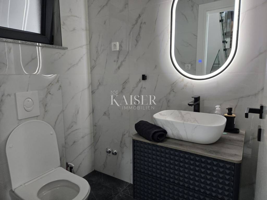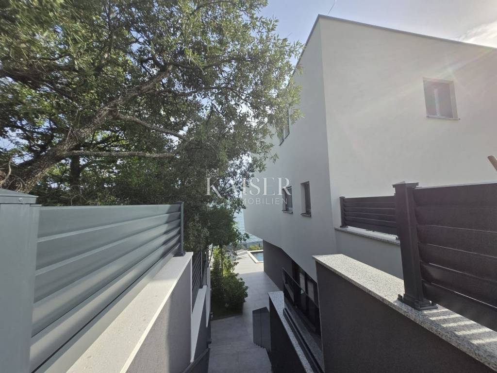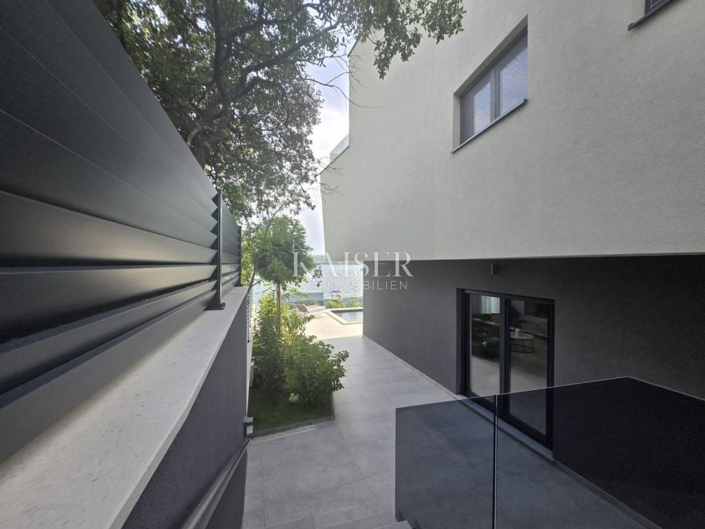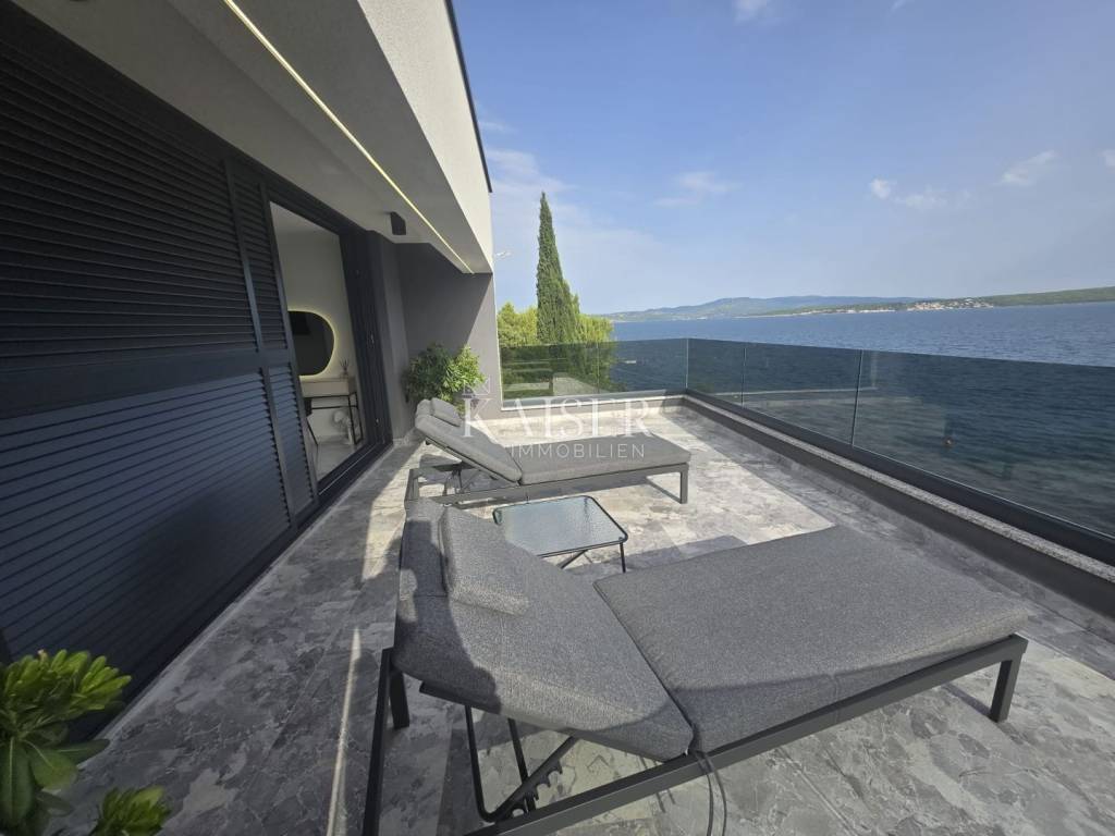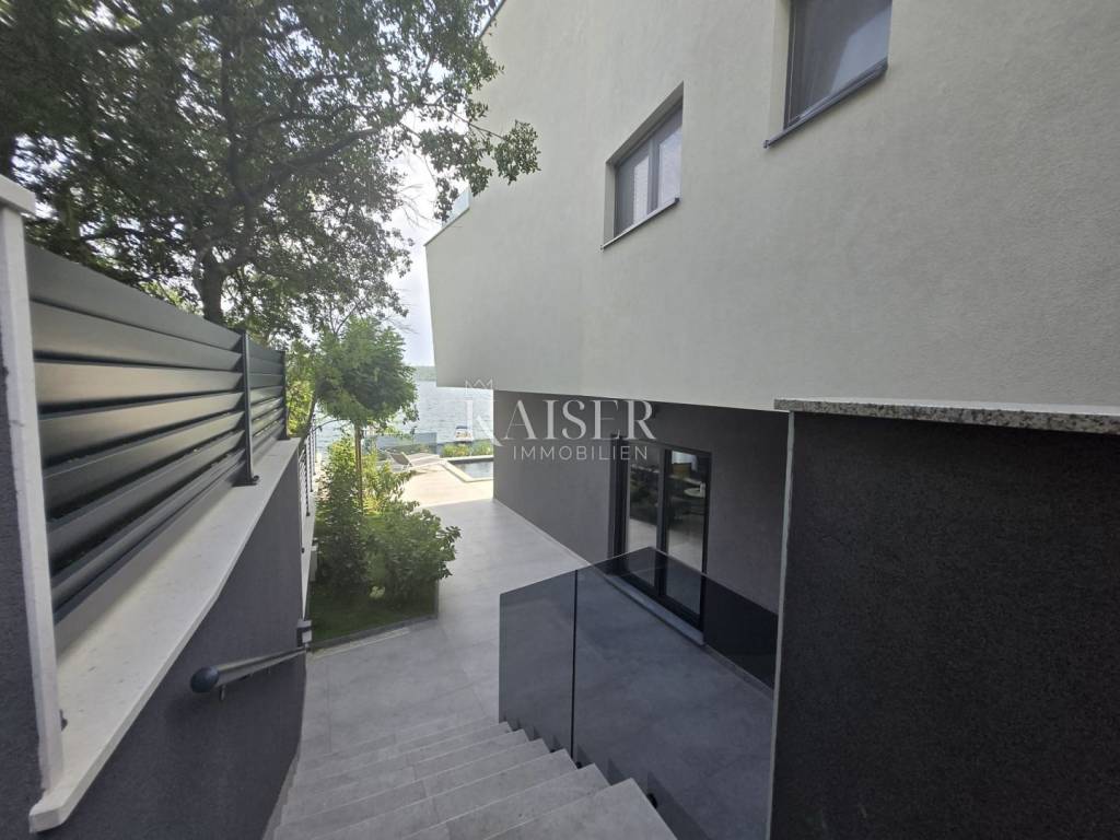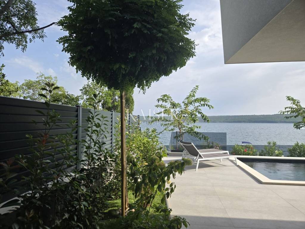 Kaiser Immobilien proudly presents this unique villa located on the shores of the Posedarje Sea, a place where comfort and luxury merge with the natural beauty of the Dalmatian coast. In the quiet bay of Posedarje, there is a modern villa that perfectly combines luxury, functionality and the natural beauty of the Dalmatian coast. This place exudes silence and tranquility, and the sea is literally part of your daily view - from the house to the sea you are only a few stone steps away, while the property is located right next to the sea line. The villa is located in an intimate micro-location, far from the city noise, but close enough to all amenities. Access to the house is provided by an asphalt road that leads to a private parking lot. From the parking lot, a staircase descends to the paved area around the house, which has been carefully arranged to provide complete peace and privacy. The entire environment of the villa is enriched with Mediterranean plants, oleanders and ornamental trees that not only create a fragrant oasis, but also further emphasize the natural harmony with the surroundings. From the main entrance towards the sea, there is an outdoor area for socializing and dining outdoors, with a large table, right next to the 6 x 4 meter swimming pool. The pool is surrounded by a sunbathing area, and below it there is a small lawn with a breathtaking view. A few steps down and you are already on the beach – a real rarity, even among the most exclusive seaside properties. On the ground floor of the villa there is a modernly equipped kitchen, dining room and living room with access to the outdoor area. There is also an additional small guest toilet. To the right of the main entrance is an additional room that the future owner can arrange according to their own wishes – as a private studio, home gym, office or guest apartment. An internal staircase leads to the first floor where there are two spacious bedrooms, each with its own bathroom and access to a large shared terrace overlooking the sea and Posedarje Bay. On the second floor there is a luxurious master suite – a large bedroom with its own bathroom and private terrace, perfect for relaxing and enjoying the panoramic view. The villa is equipped with five air conditioners (with one external unit), underfloor heating in the bathrooms and a small guest toilet, and solar panels on the roof that provide sanitary water heating. Every detail has been carefully designed to combine modern comfort with the natural ambiance that dominates the surroundings. It is located in a quiet part of Posedarje, in a location that offers privacy, but also quick access to all amenities - shops, restaurants, a local market and promenades are located approximately 2 kilometers away. Posedarje is known for its exceptionally clear sea, fishing and olive growing tradition, and excellent transport connections with the rest of Croatia and the region. The property is only a few minutes away from the A1 motorway exit, which makes it easily accessible in all seasons. This villa is not just a house by the sea - it is an opportunity for a completely new lifestyle. Whether you are looking for a luxurious family residence, a peaceful holiday retreat or an investment with high tourist potential, this is a place that will win you over at first sight. A villa that breathes space, light and sea, where the day begins with a breathtaking view. A real rarity on the market - a property for those who know how to recognize the value of location, peace and unforgettable views. Significant distances: A1 motorway (exit Posedarje): 5 minutes (approx. 3 km) Zadar Airport (Zemunik): 25 minutes City of Zadar: 25 km Paklenica National Park: 30 minutes Krka National Park: 1 hour Plitvice Lakes National Park: 1 h 30 min Kornati National Park (boat access from Zadar): 40 minutes Velebit Nature Park: 40 minutes Telašćica Nature Park: 1 hour by boat Zagreb: approx. 2 h 30 min Vienna (Vienna): approx. 6 h Budapest (Budapest): approx. 6 h Munich: approx. 7 h The agency commission for the buyer is 3% + VAT. The commission covers all services related to the purchase and is paid only in the case of purchasing a property, upon conclusion of the first legal act. For more detailed information, please contact: Ivana Skoblar Tel: +385 98 973 11 54 E-mail: ivana.skoblar@kaiser-immobilien.hr Property code: 136-25