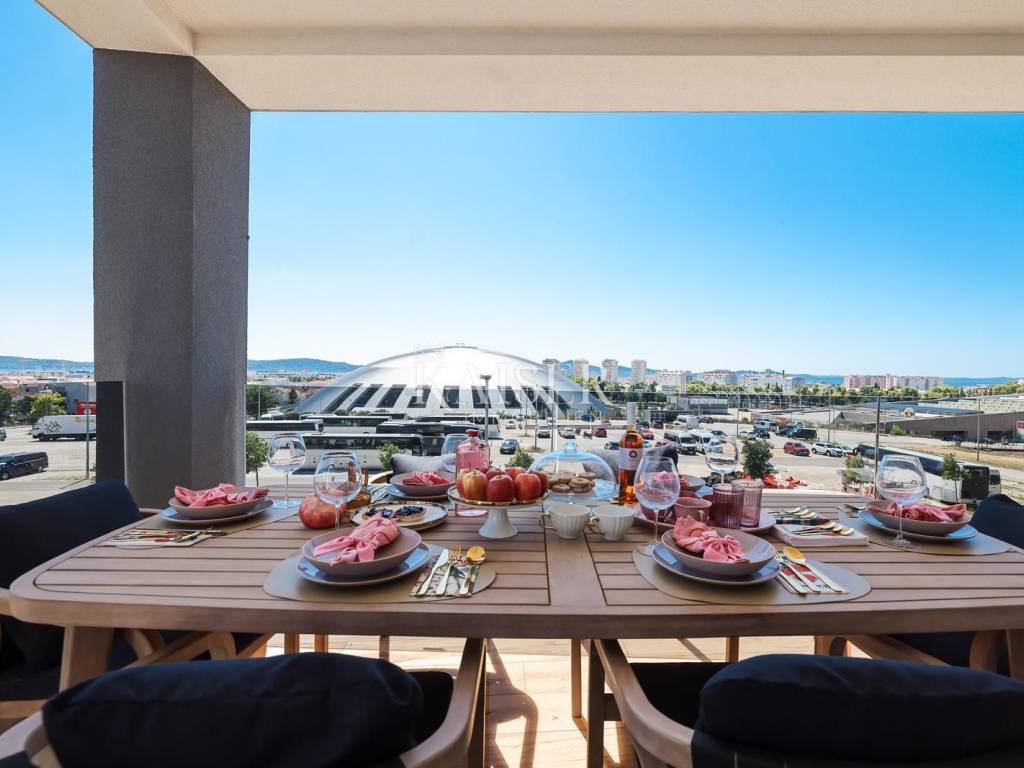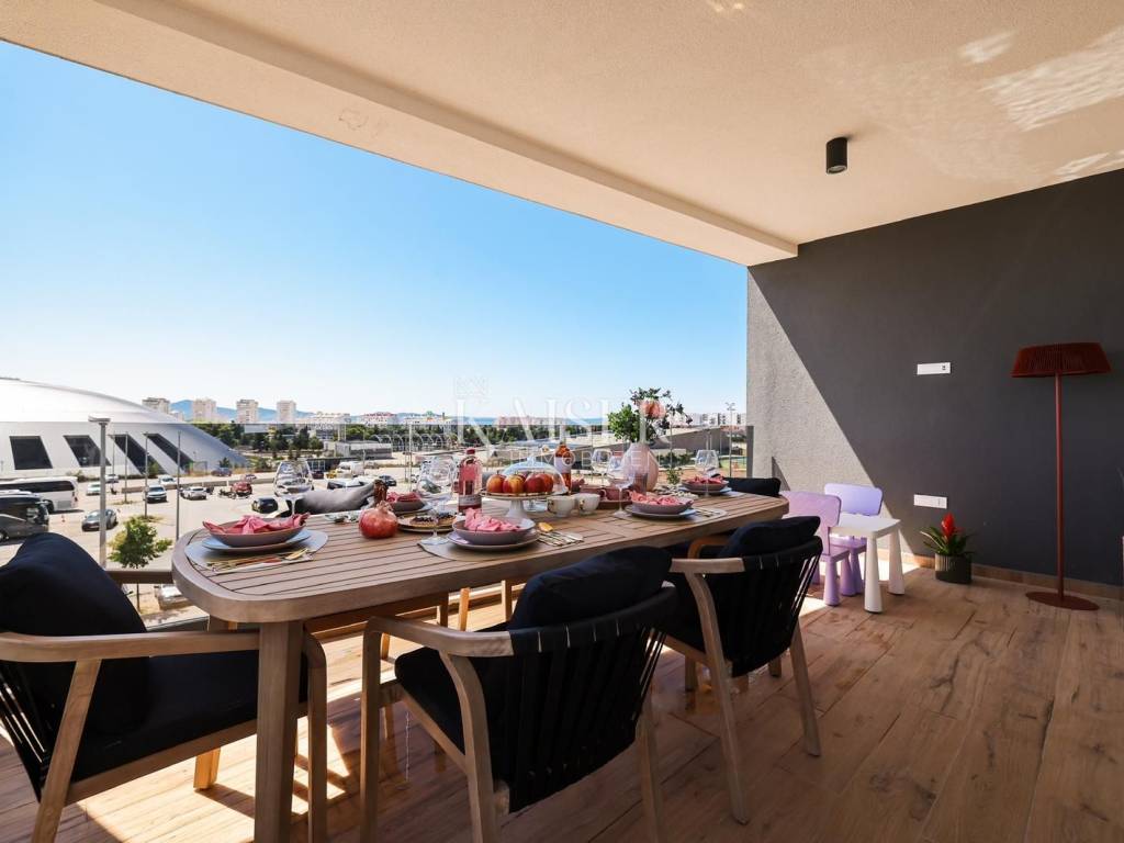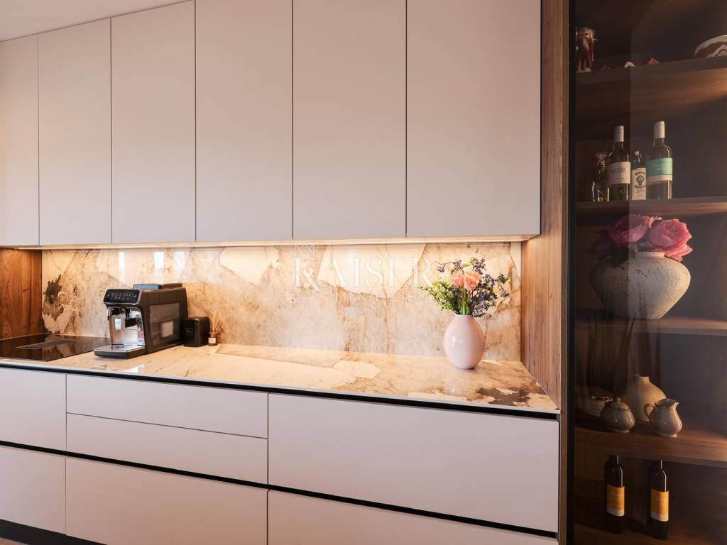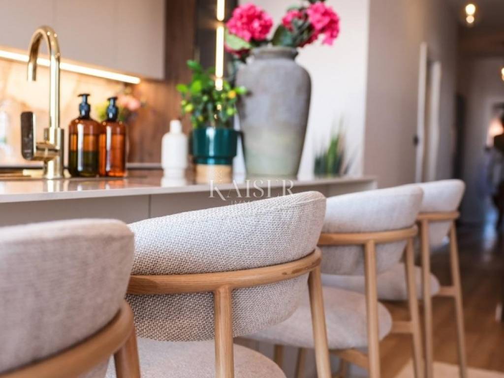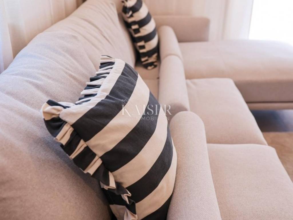 Kaiser Immobilien presents a luxurious penthouse in a prestigious location in Zadar, in Višnjik. This modern new building offers a unique opportunity for buyers looking for the perfect combination of comfort, functionality and a top-notch lifestyle. The apartment can be purchased as a one-story penthouse of 110 m², fully equipped and furnished, with the option to purchase an additional 108 m² of roof terrace, making it a two-story penthouse with a spacious roof terrace that offers a range of possibilities. Located on the top floor of a building with an elevator, the apartment has been designed with special attention to every detail, exuding an elegant, contemporary design style and top quality. The open living room with kitchen and dining area is filled with natural light thanks to large glass walls that lead to a terrace with a beautiful view. The kitchen is equipped with the latest appliances, and the worktops are made of high-quality materials that combine aesthetics and functionality. Three spacious bedrooms provide a pleasant and quiet corner for relaxation, and the bathrooms are equipped with top-quality ceramics, walk-in showers and modern sanitary ware. Underfloor heating and air conditioning ensure optimal temperature throughout the year, while electric shutters, security doors, video intercom and alarm system guarantee security and privacy. The apartment comes with two garage parking spaces in a closed garage, which is a great advantage in this part of the city. The apartment also has a storage room on the ground floor of the building, ideal for storing bicycles or other equipment. An elevator leads directly to the apartment, which further increases the practicality and comfort of living. A special option is to purchase the accompanying 108 m² roof terrace, which comes with complete installations for arranging the space according to your own wishes - whether you want a jacuzzi, summer kitchen, pergola or lounge area. The price of the apartment with the roof terrace included is €499,000. Višnjik is one of the most well-maintained and desirable neighborhoods in Zadar, known for its excellent infrastructure and proximity to all important amenities - schools, kindergartens, sports centers, shops and only a few minutes' drive to the city center and the waterfront. The transport connections are excellent. This property represents a rare opportunity to purchase a top-notch, luxurious penthouse with the possibility of extending to a roof terrace, in one of the most attractive locations in Zadar. Kaiser Immobilien brings you a home where comfort, functionality and prestige are combined in perfect harmony. Significant distances: A1 motorway is about 8 km away Zadar Airport 15 minutes drive Zagreb j 285 km (about 2 hours and 45 minutes drive) Budapest 590 km (about 6 hours drive) Vienna 600 km (about 6 hours drive) Munich 720 km (about 7 hours drive) The agency commission for the buyer is 3% + VAT. The commission covers all services related to the purchase and is paid only in the case of purchasing the property, upon conclusion of the first legal act. For more detailed information, please contact: Ivana Skoblar Tel: +385 98 973 11 54 E-mail: ivana.skoblar@kaiser-immobilien.hr Property code: 136-26