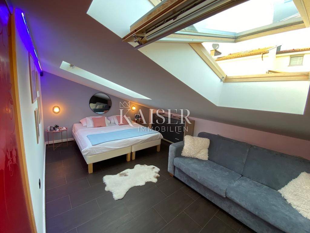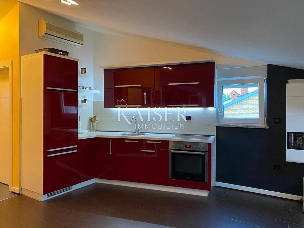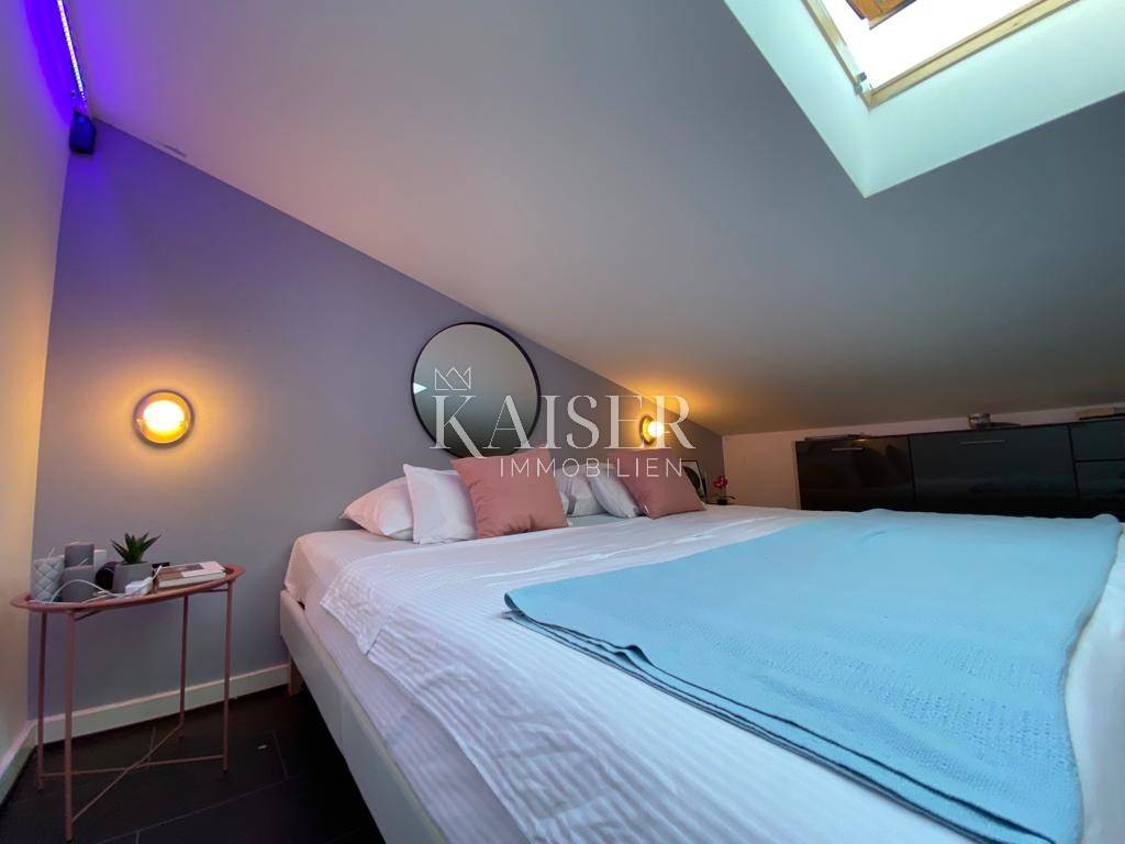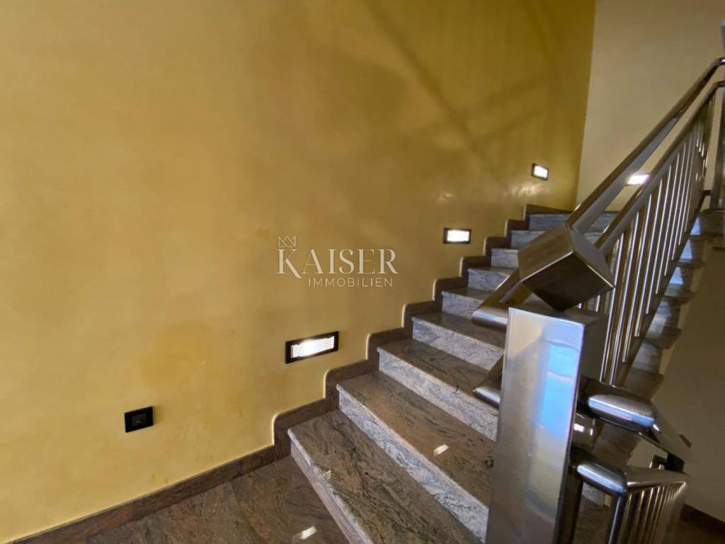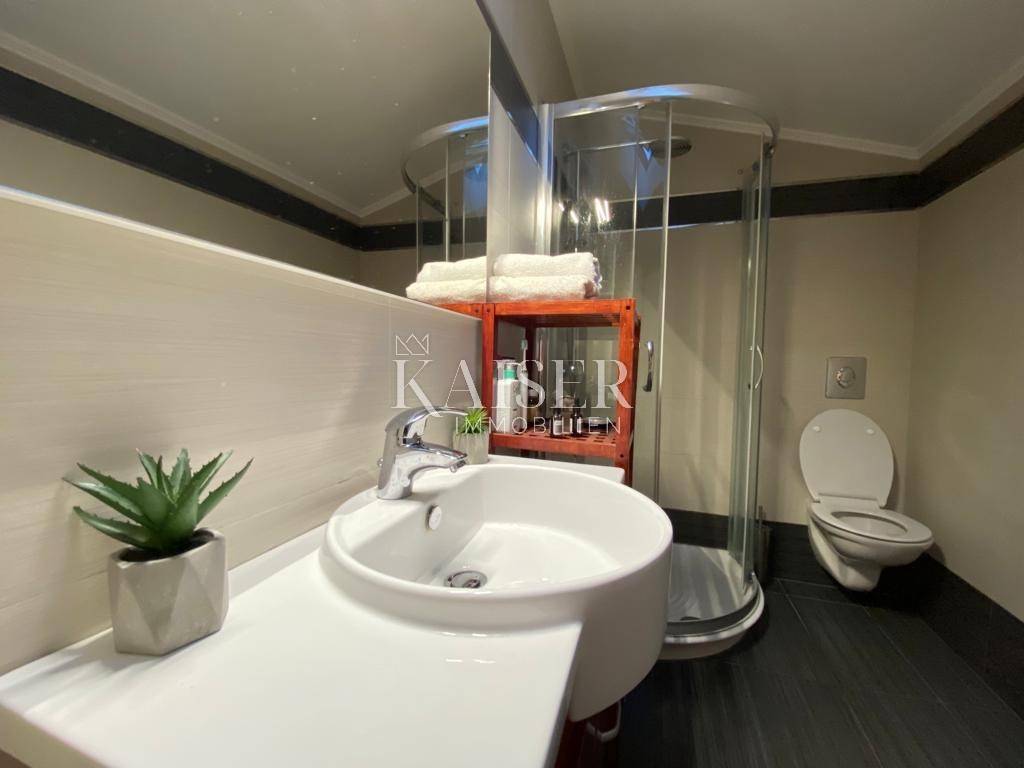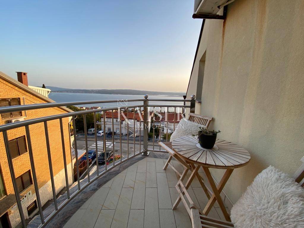Kaiser Immobilien offers an apartment in a high-quality building. The apartment is located on the third floor, and consists of a hallway, kitchen, dining room, bathroom, living room, two bedrooms, and two terraces of 25 m2. from which there is a beautiful panoramic view. The apartment and the internal staircase are equipped with high-quality Italian ceramics. The walls of the apartment and the staircase are plastered, and the apartment has velux skylights with anti-reflective mesh, granite treads, electric blinds, video surveillance... The apartment has an anti-allergic vacuum cleaner (air vacuum). The apartment has a parking space, a storage room, 1/7 of the garden. The apartment is in a great location, and the building is neat and beautiful. A few minutes' walk to the sea.